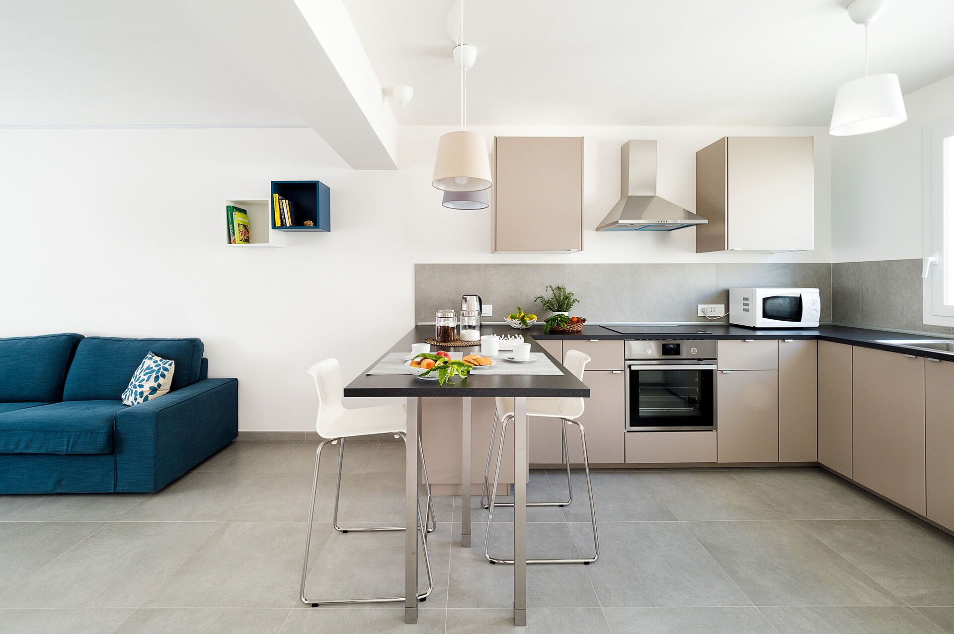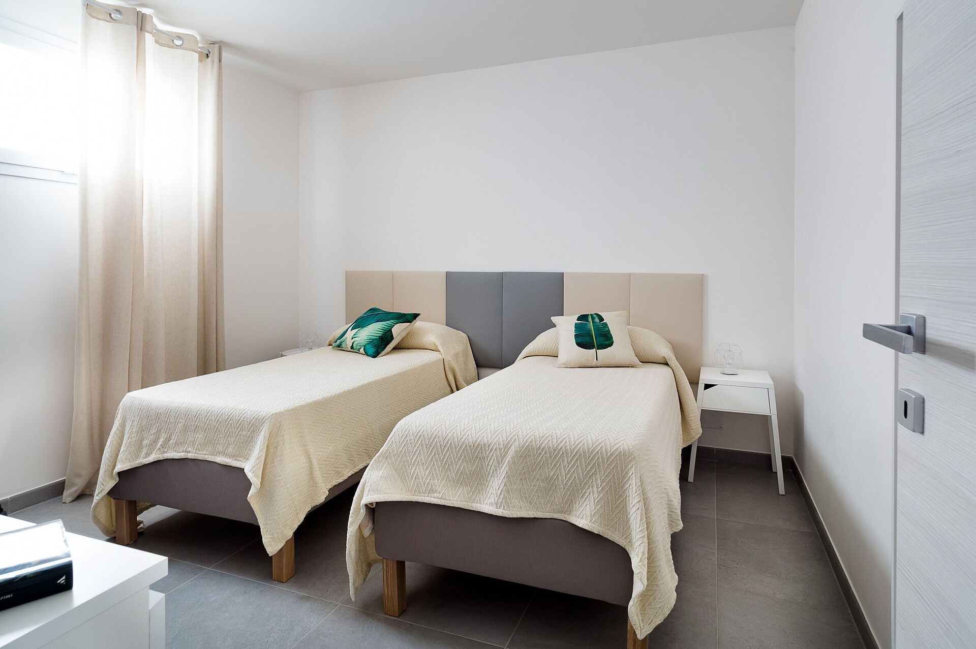 Kompakt gebaut und über zwei nicht miteinander verbundene Etagen verteilt – Erdgeschoss und Untergeschoss – bietet Diantha dank fünf Schlafzimmern komfortabel Platz für bis zu 10 Personen. Die Innenräume strahlen Helligkeit und Modernität aus und sind mit allem Komfort ausgestattet.