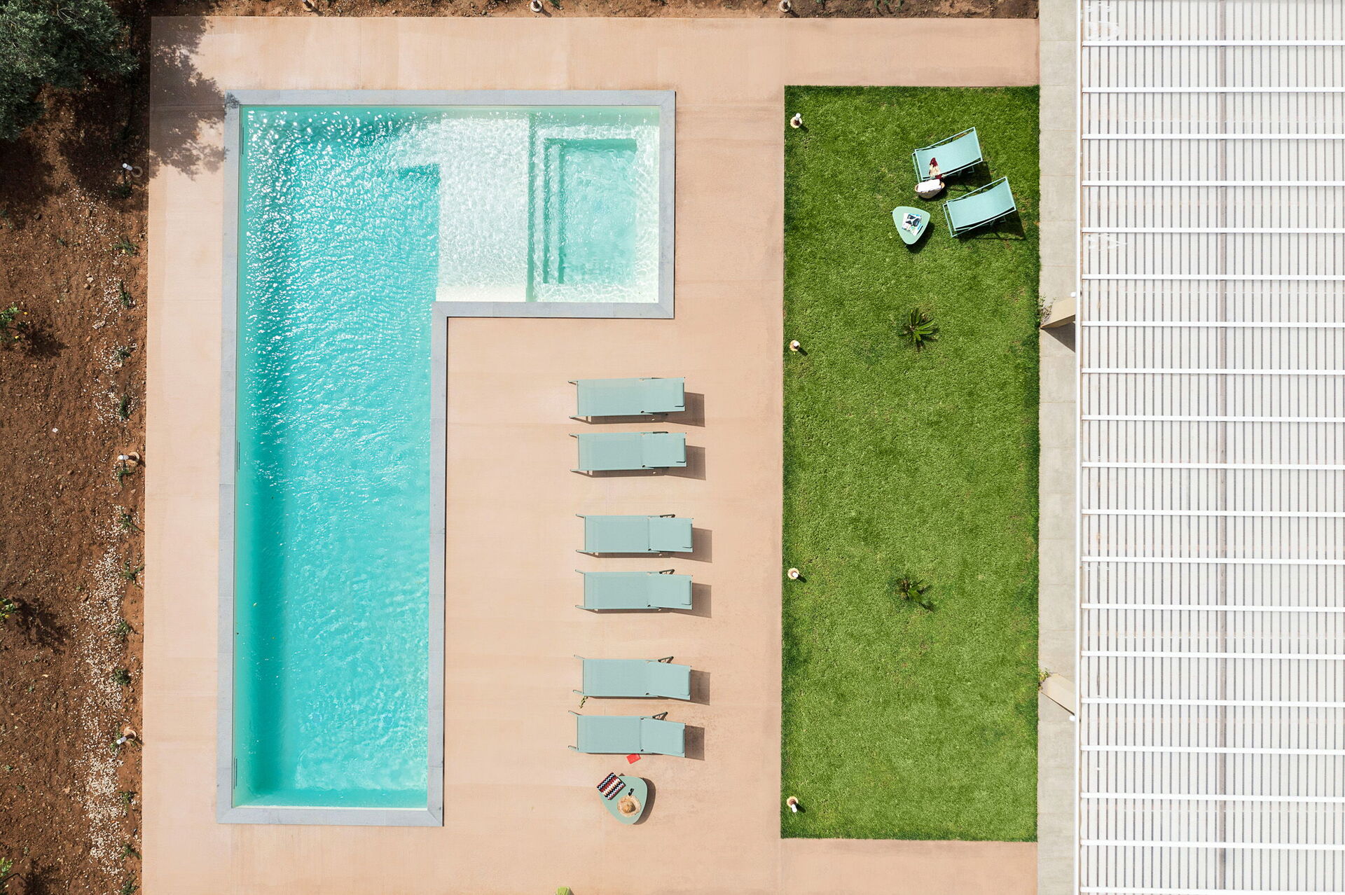- Schwimmbad, das den Gästen exklusiv zur Verfügung steht (12,5 x 4 Meter; Tiefe: 1,40 Meter) mit Räumen für Wasseraufbereitungsanlagen