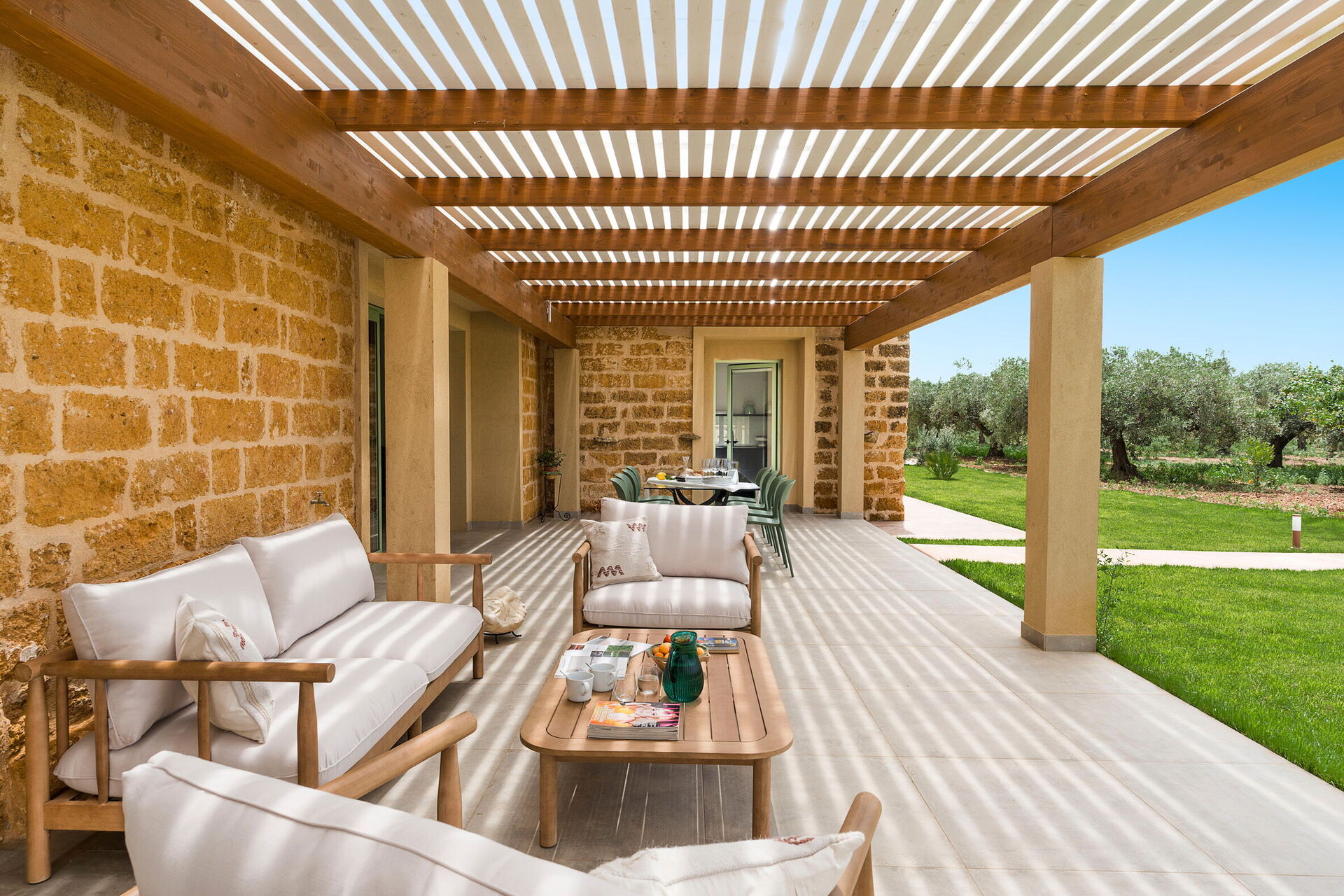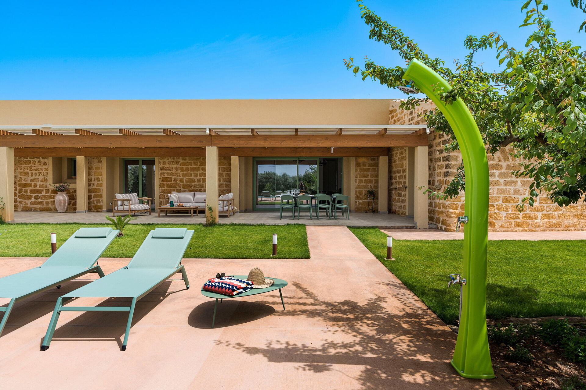 Die Villa besteht aus einem Haupthaus und einem Nebengebäude und bietet dank ihrer 4 Schlafzimmer bequem Platz für bis zu 8 Personen in einer einladenden Umgebung mit hellen Innenräumen, geschmackvoll eingerichtet und mit allem Komfort ausgestattet.