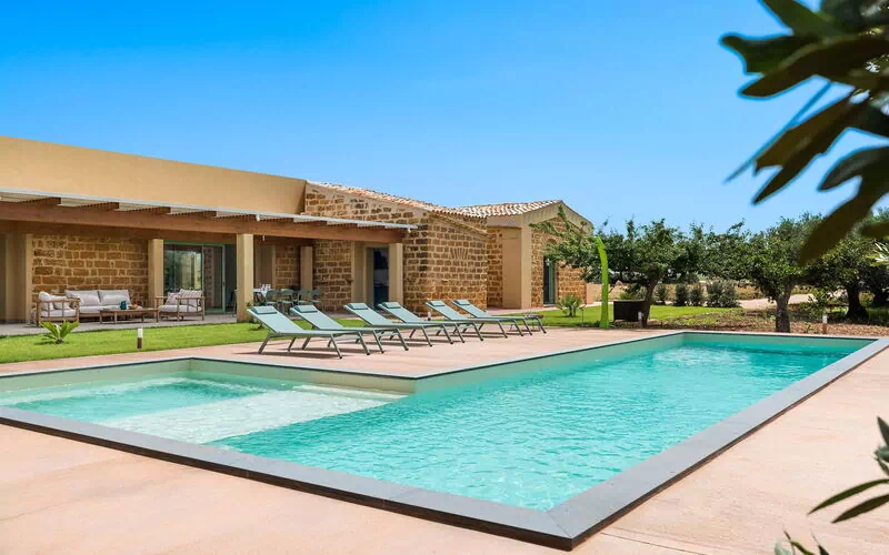 „Villa Cavale“ ist eine wunderschöne Villa mit privatem Schwimmbad zur Miete für einen Urlaub auf Sizilien: Die Villa befindet sich in ruhiger und sonniger Lage inmitten der sizilianischen Landschaft, nur wenige Kilometer von der berühmten Stadt Menfi und wenige Kilometer vom Meer entfernt.