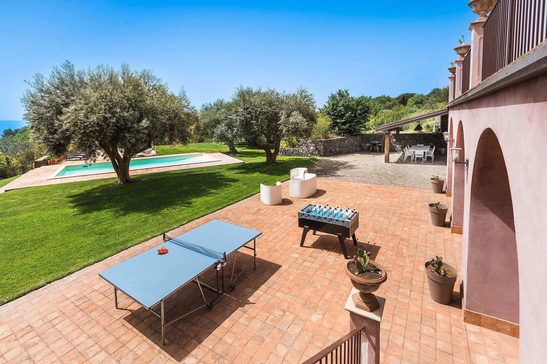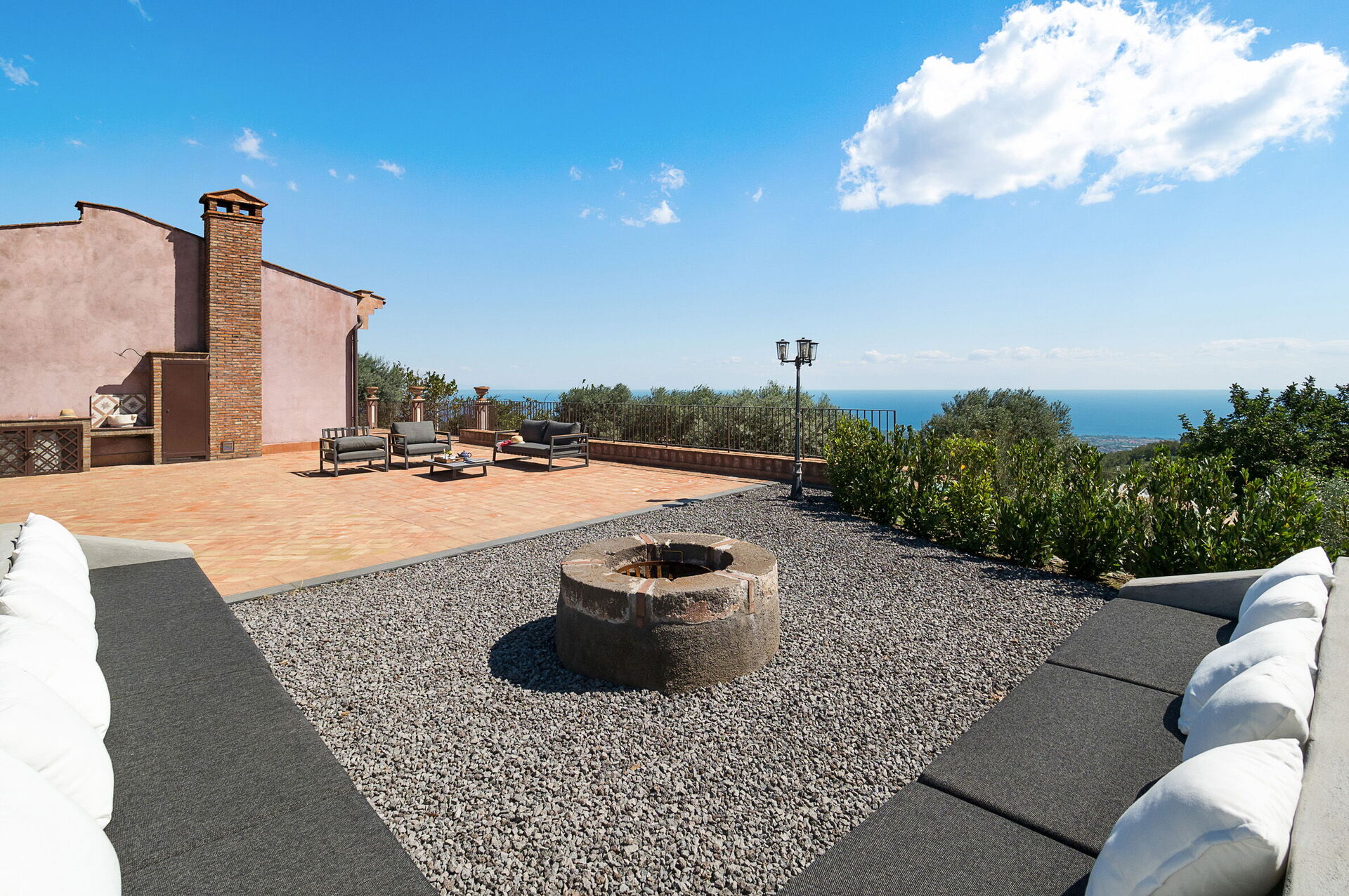 Diese Ferienvilla in Italien bietet einen wunderschönen Panoramablick auf das Ionische Meer und liegt in einer ruhigen und sonnigen Gegend: das Schwimmbad mit Salzreinigung macht den Aufenthalt an heißen italienischen Sommertagen noch angenehmer. Der Garten ist gepflegt mit großen und gut ausgestatteten Terrassen. Die Steinmauern und die sorgfältige Renovierung erinnern an den Charme und die Atmosphäre der eleganten sizilianischen Residenzen der Vergangenheit.