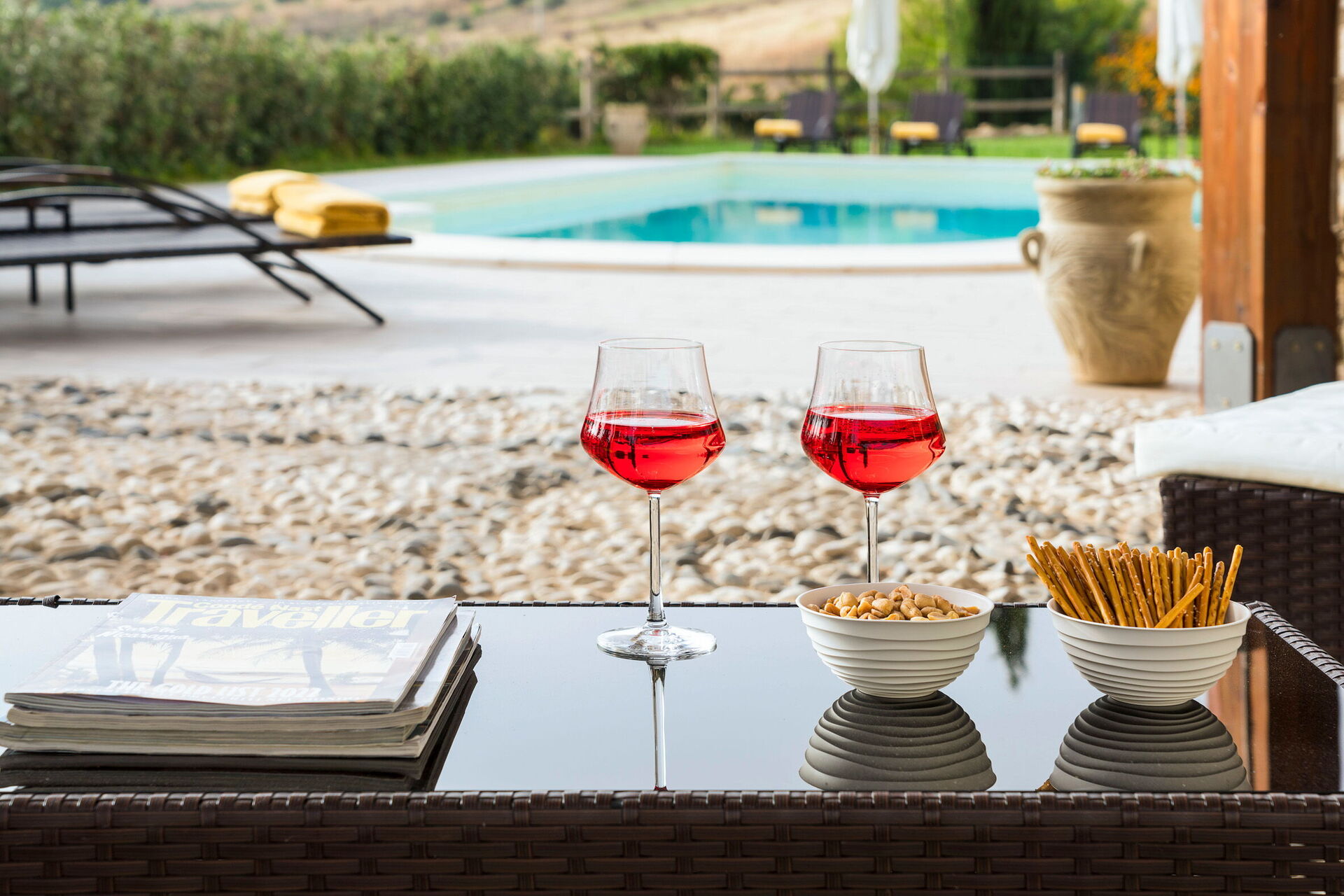 Im Aussenberich läd das große Schwimmbad, die großen Terrassen, der Pavillon und die Veranda zur Entspannung in völliger Ruhe ein.