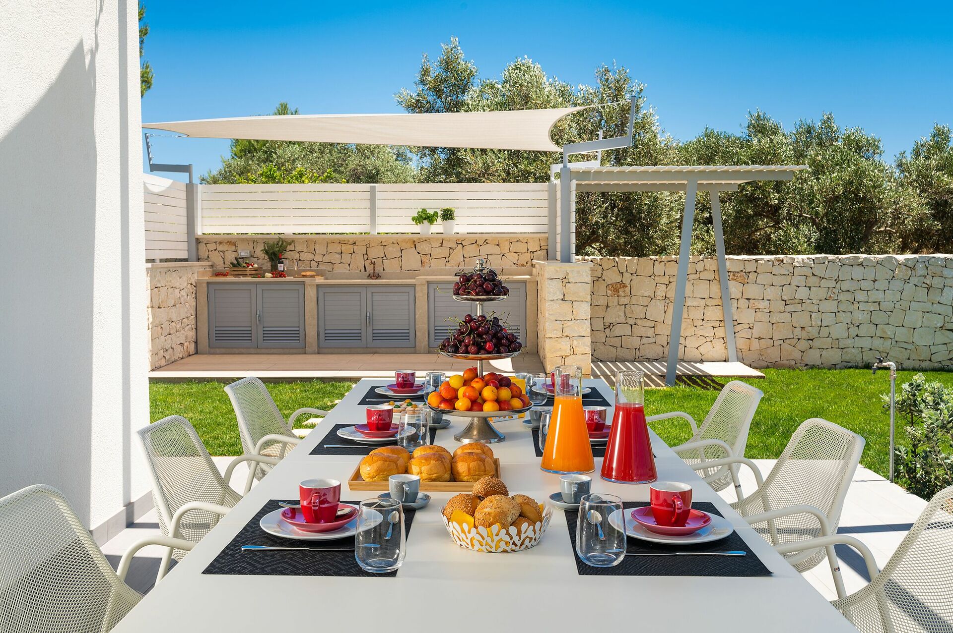 • Außenküche und Essbereich für Mahlzeiten im Freien