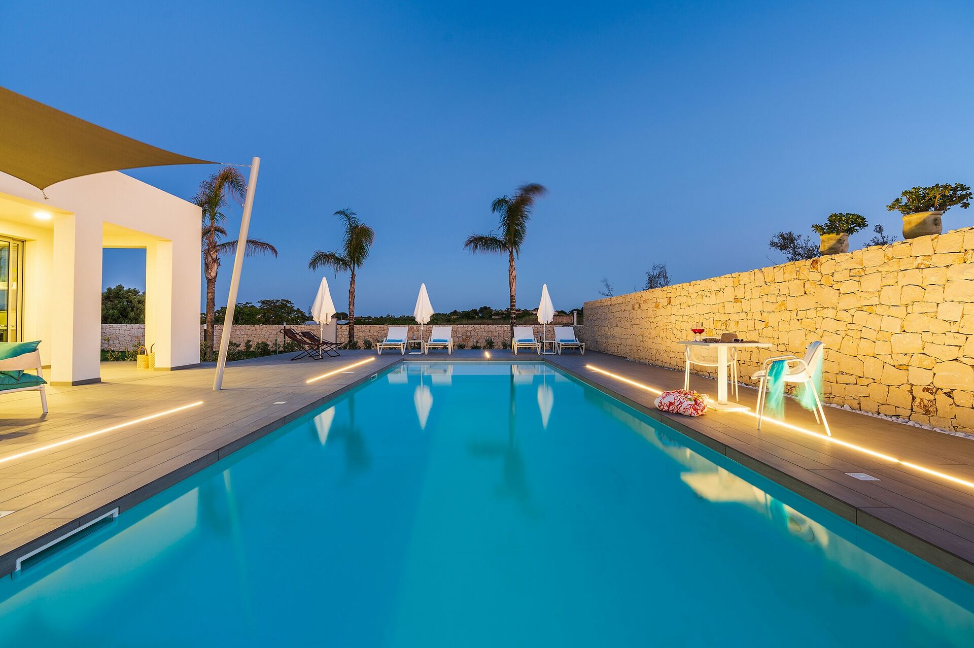 Villa Nica ist eine schöne und moderne Ferien-Villa mit privatem Schwimmbad in Sizilien und liegt nur wenige Schritte vom Strand von San Lorenzo entfernt, einem beliebten Badeort im Südosten Siziliens, auf halbem Weg zwischen dem Naturschutzgebiet Vendicari und dem Küstendorf Marzamemi.