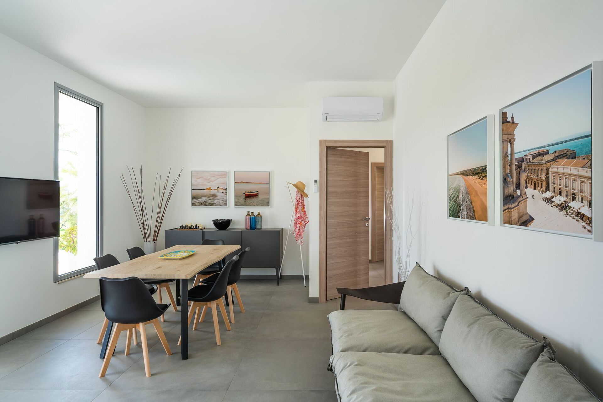 Die Villa genießt eine strategische Position, um den Südosten Siziliens zu besuchen, von Noto, Syrakus und den Barockstädten des Val di Noto bis hin zu Taormina und dem Ätna-Park. Auch den herrlichen Strand von San Lorenzo erreicht man bequem zu Fuß.