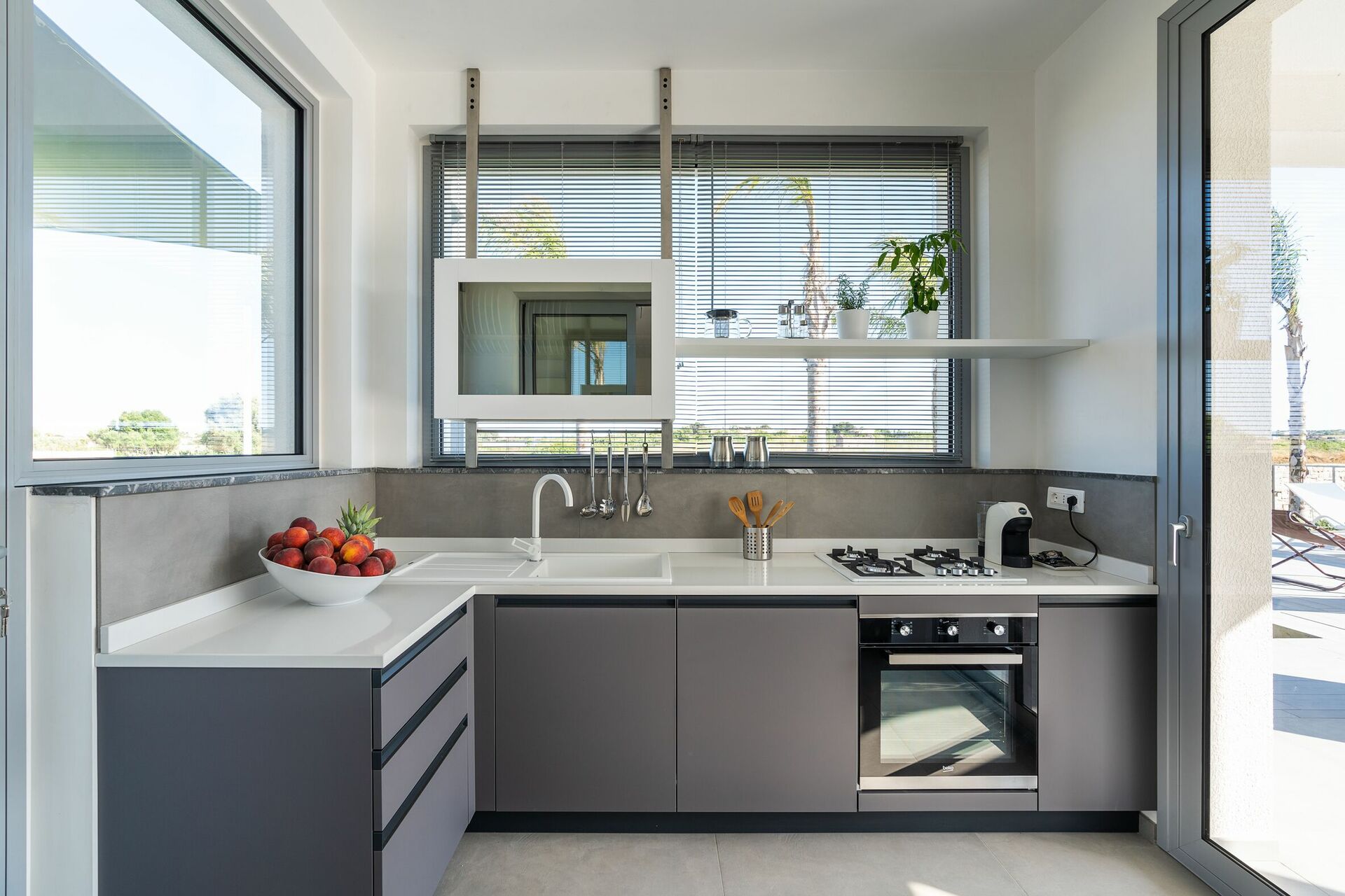 Die kürzlich erbaute Villa Nica bietet helle und einladende Innenräume, die sich auf einer einzigen Etage befinden und nach außen gerichtet sind.