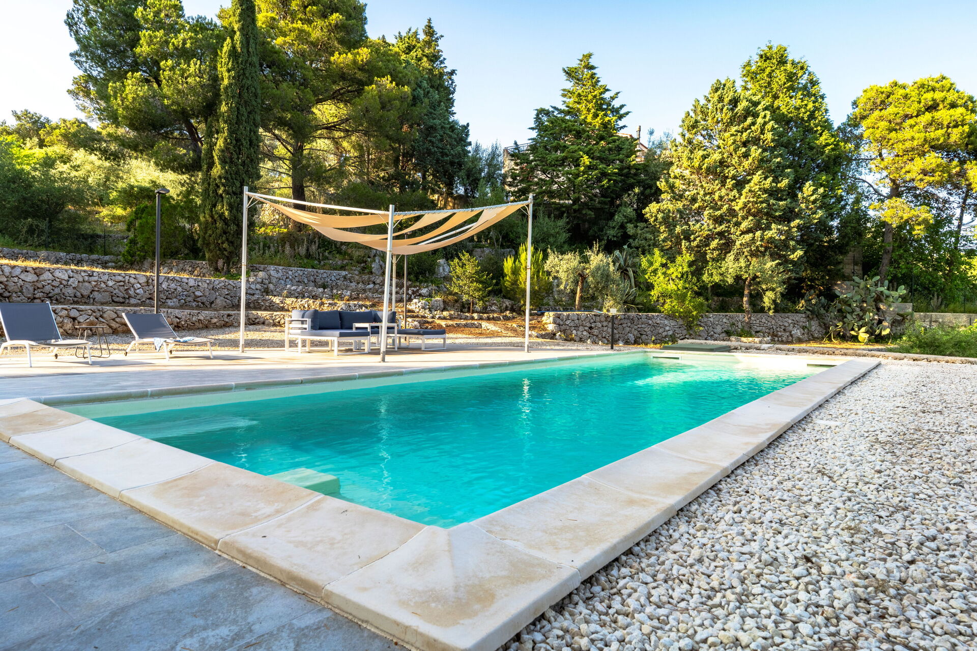 - privater Swimmingpool (9,7 x 3,7 Meter; Tiefe 1,5 Meter) mit Salzreinigungssystem