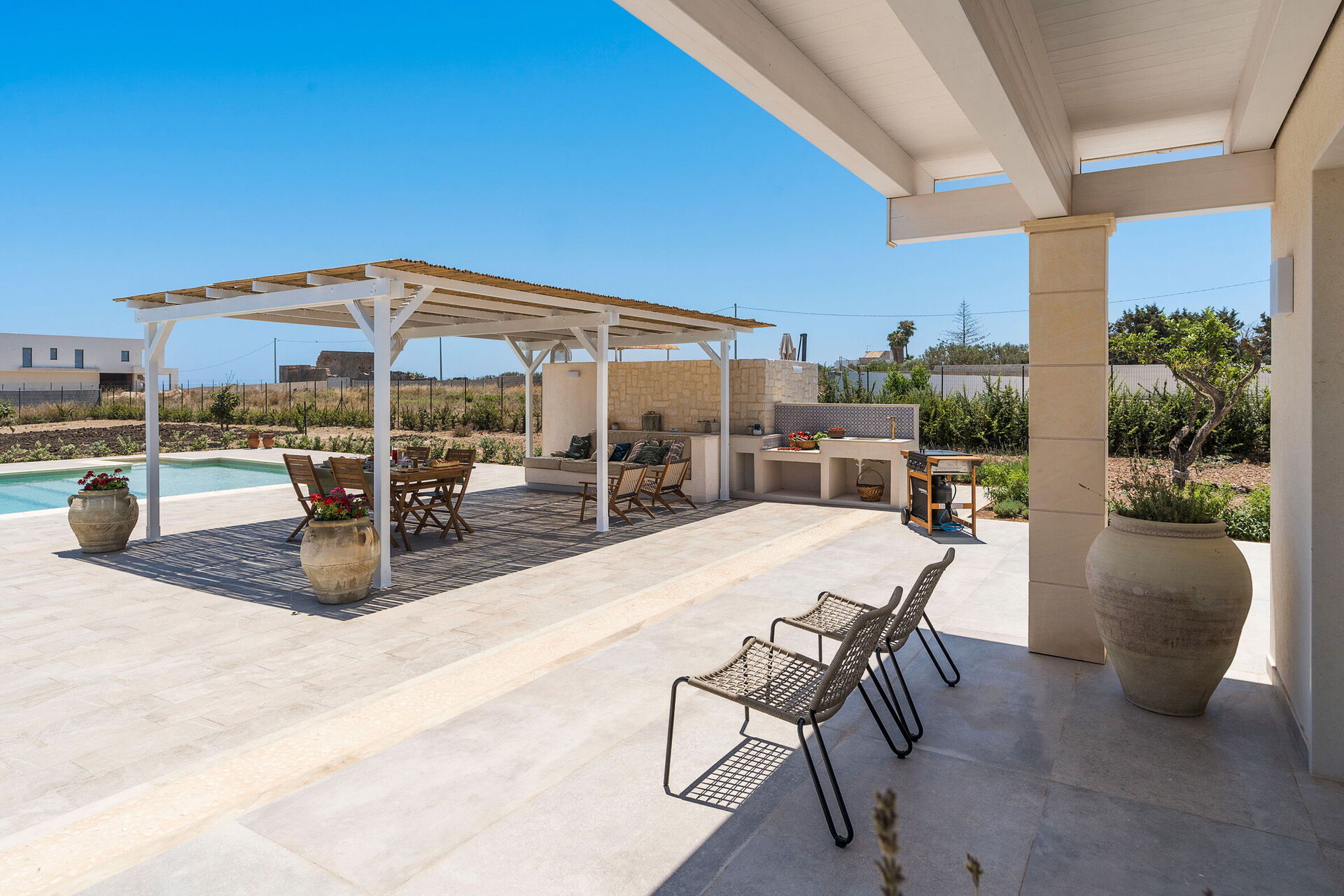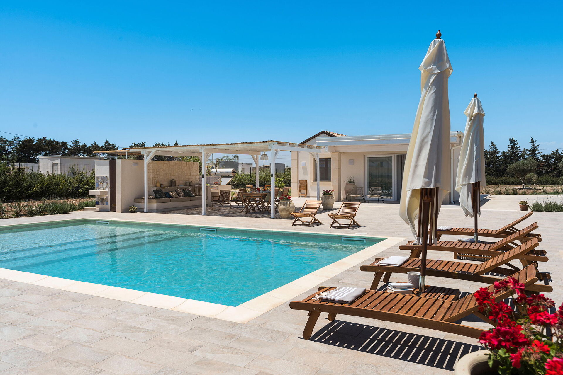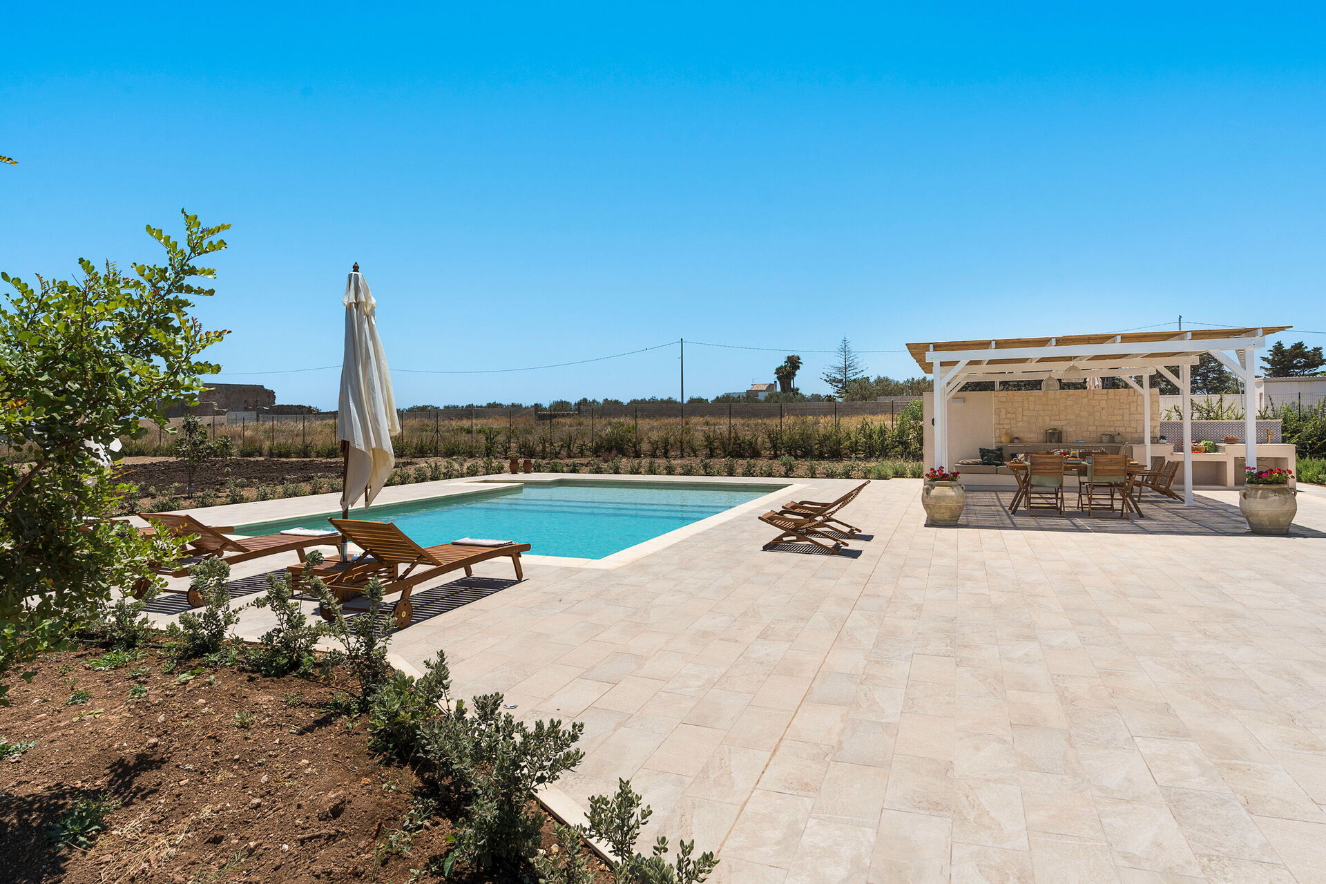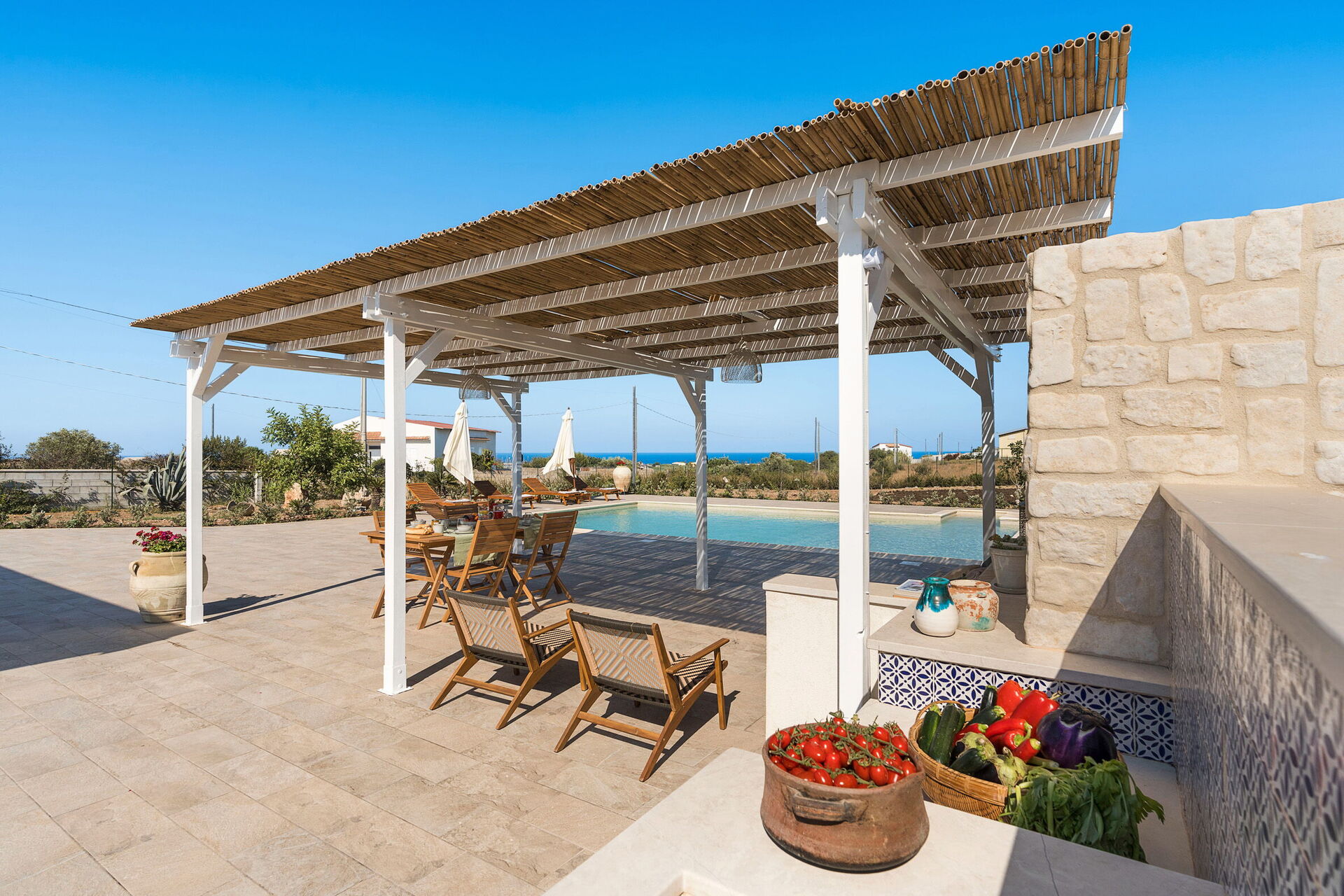 Im Aussenbereich befindet sich ein schönes Schwimmbad, das den Gästen exklusiv zur Verfügung steht und eine Sonnenterrasse, die mit Liegestühlen, Sonnenschirmen und einem Pavillon mit Tisch und Stühlen ausgestattet ist: der ideale Ort, um angenehme Momente unter der sizilianischen Sonne zu verbringen, sich zu entspannen und sich in Gesellschaft von Freunden oder der Familie abzukühlen.