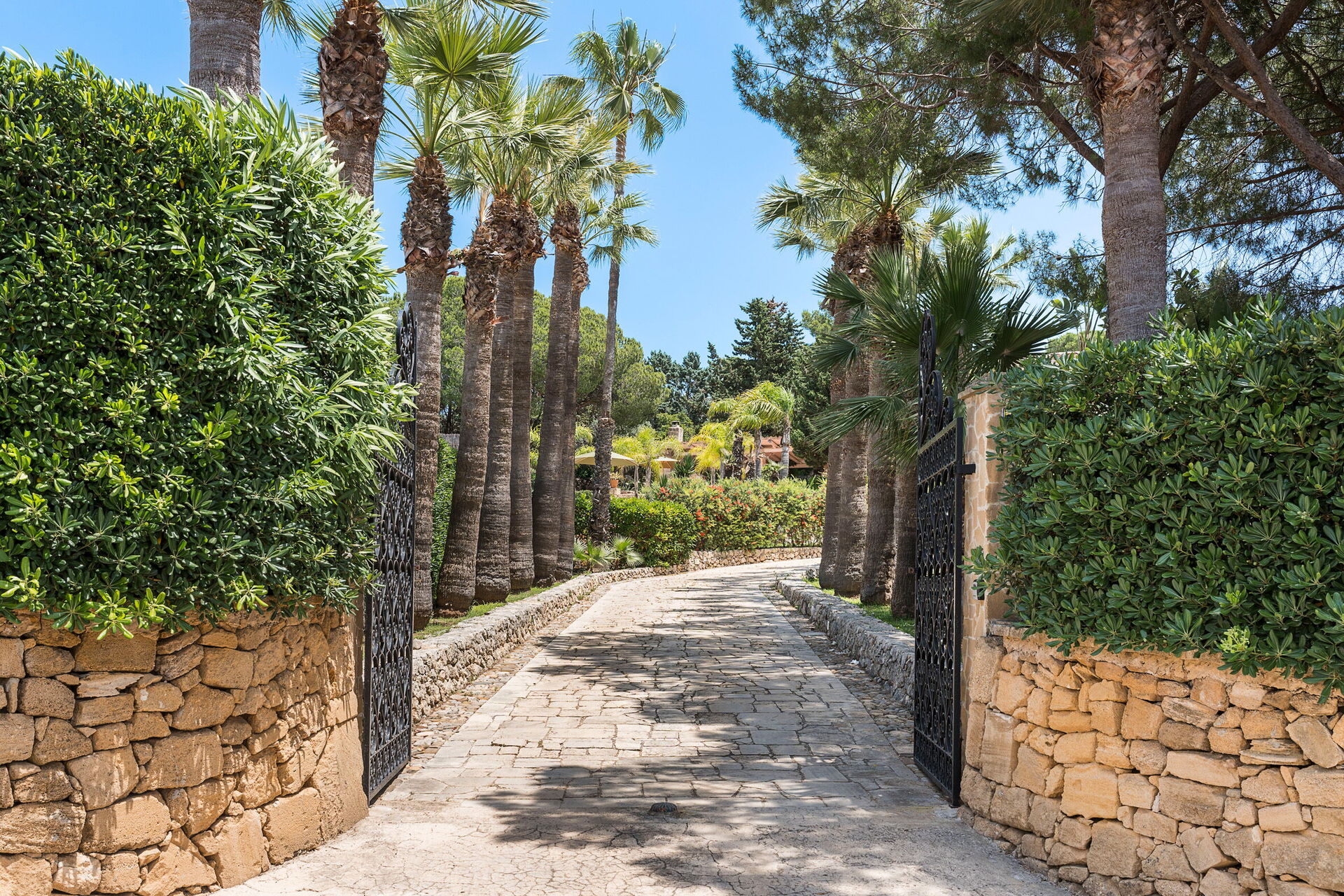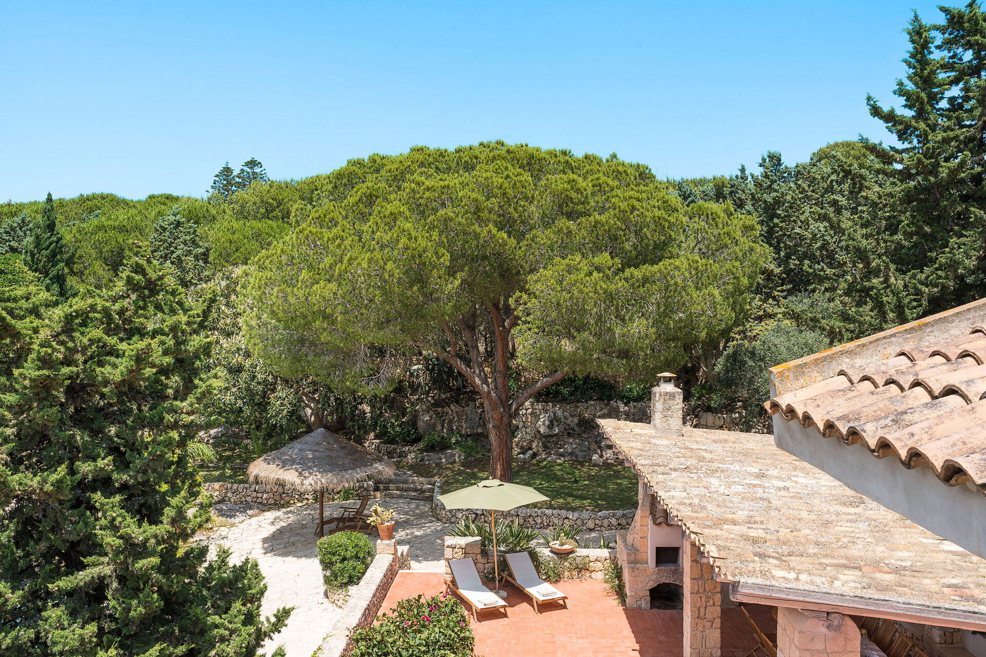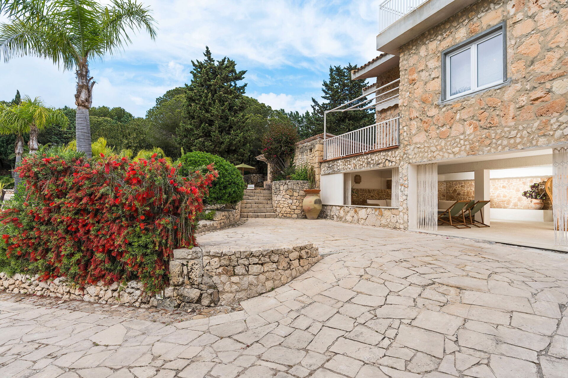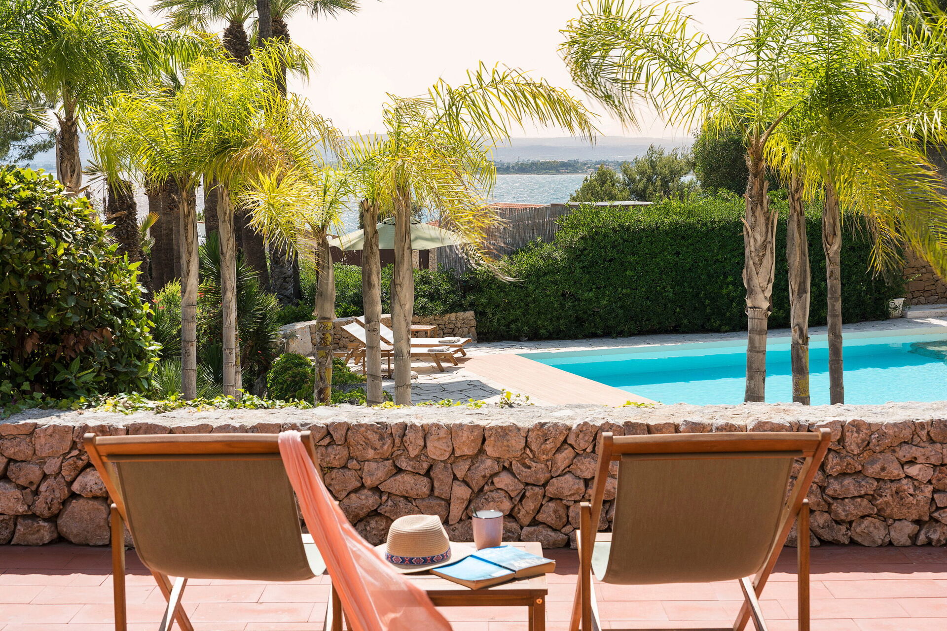 Villa Madda ist über eine Palmenallee erreichbar und liegt inmitten eines Gartens mit mediterranen Pflanzen, in dem sich ein charakteristisches, von Felsen umgebenes Schwimmbad befindet.