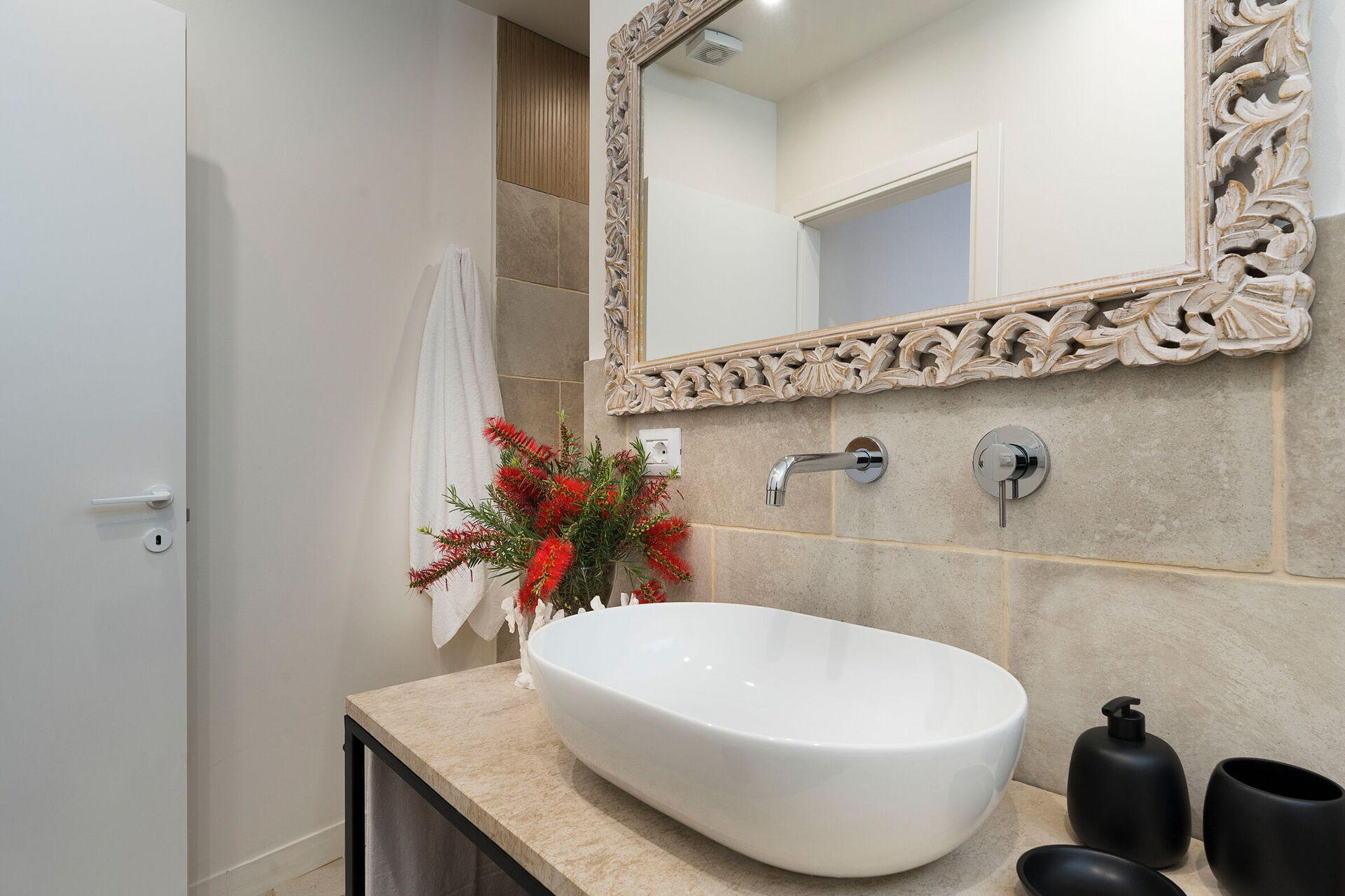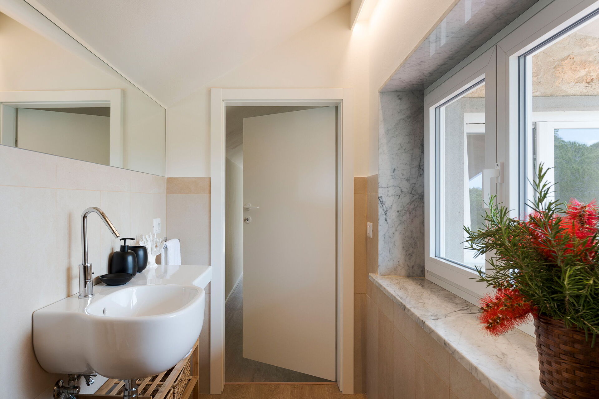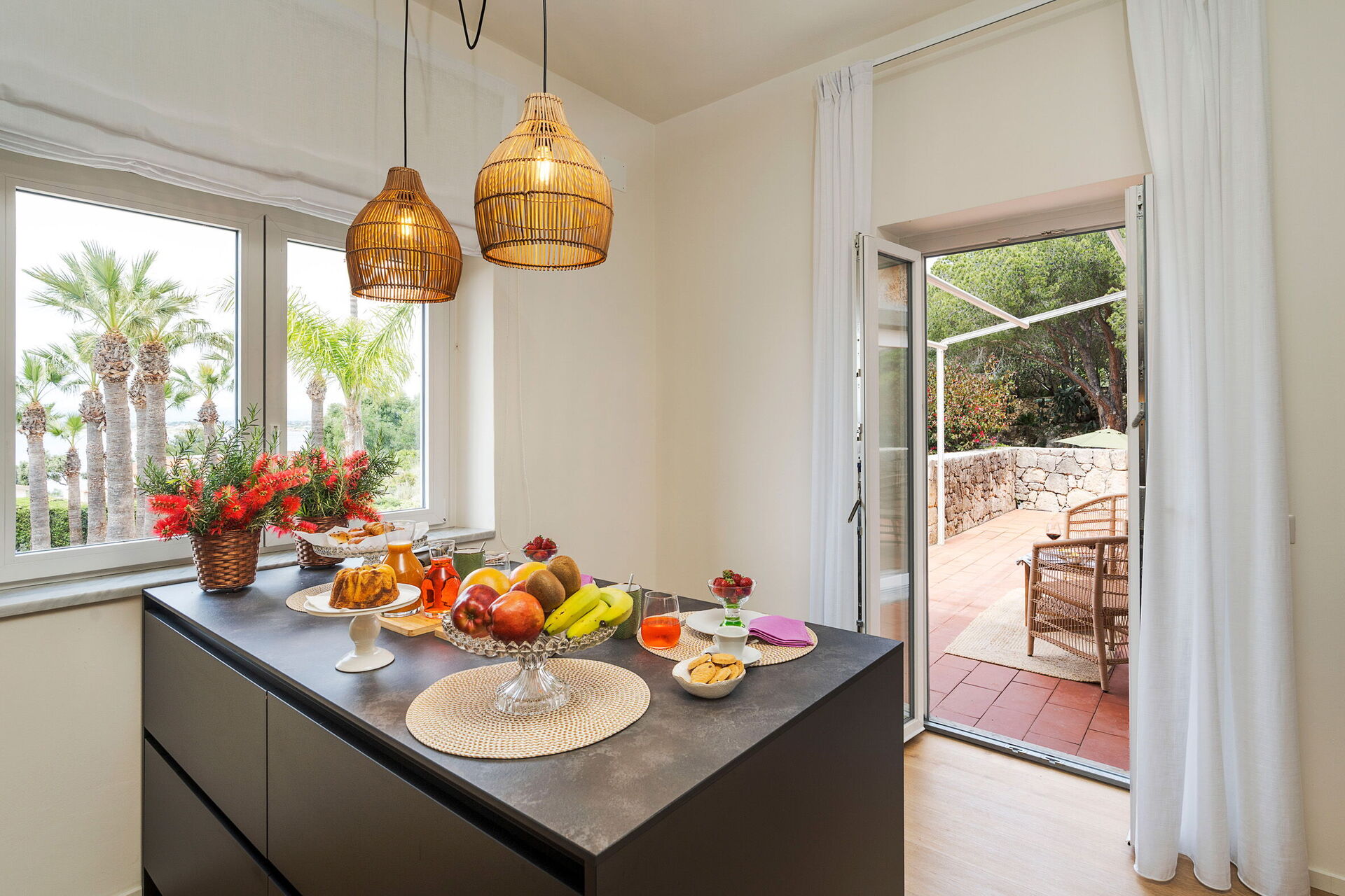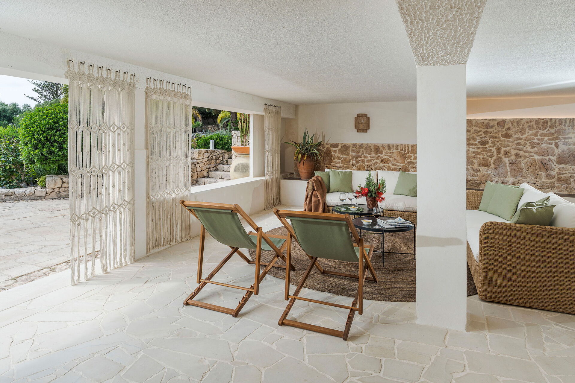 Villa Madda ist über eine Palmenallee erreichbar und liegt inmitten eines Gartens mit mediterranen Pflanzen, in dem sich ein charakteristisches, von Felsen umgebenes Schwimmbad befindet.