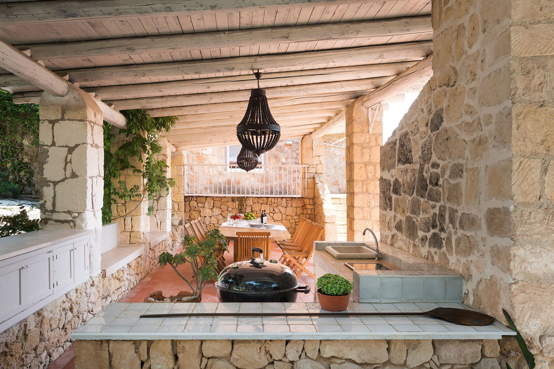 Dieser Besitz verfügt über verschiedene ausgestattete Aussenbereiche und eine große Veranda mit Grill und Holzofen, um angenehme Momente der Entspannung für den Urlaub auf Sizilien zu garantieren.