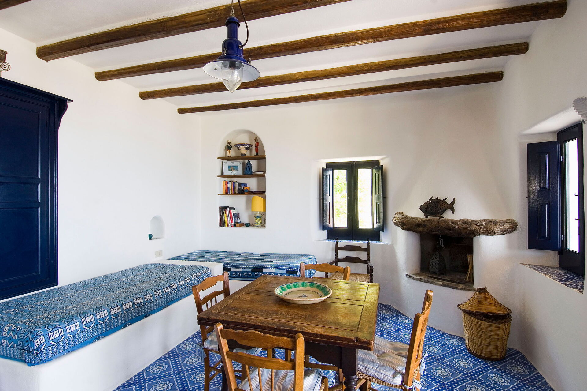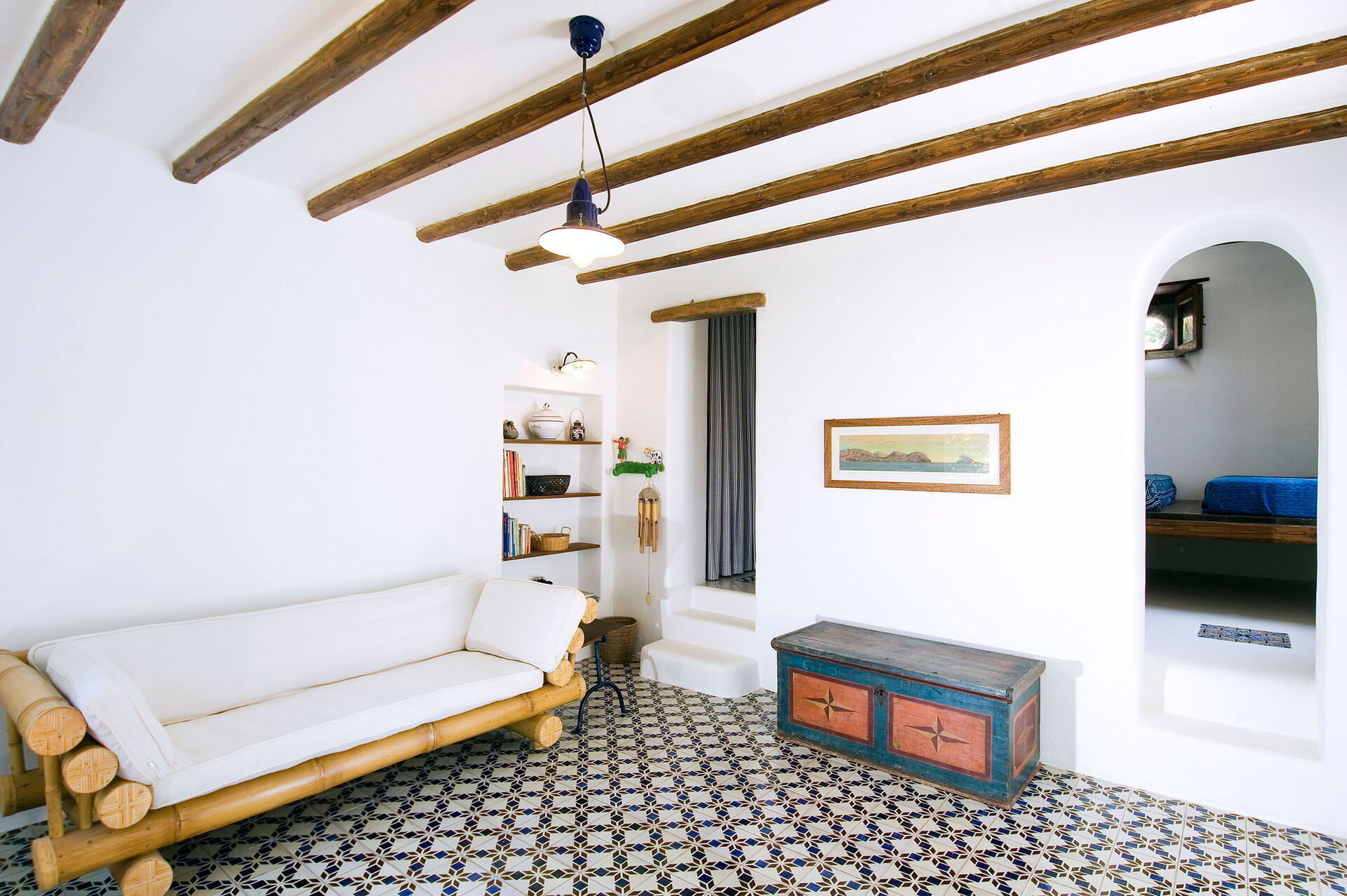 Die Innenräume sind gepflegt und bewahren die traditionellen Decken mit freiliegenden Balken und den typischen handgefertigten Majolika-Fliesen; die Einrichtung ist rustikal und bewusst schlicht gehalten und folgt dem typischen Stil der Inselhäuser.