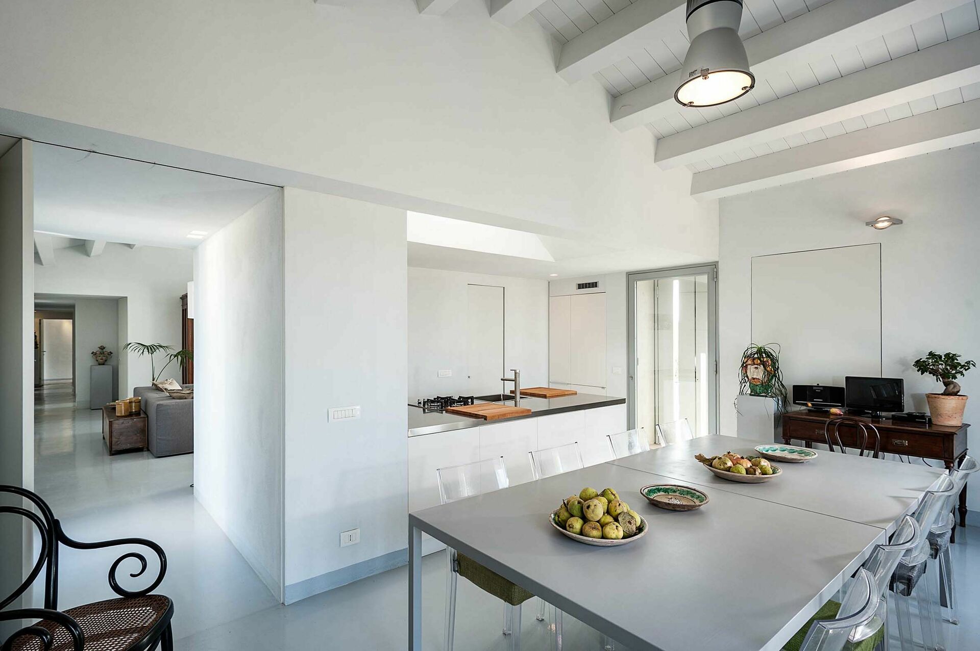 Wer auf der Suche nach einer schönen Villa in Sizilien für den Urlaub ist, wird von der Villa Hybla nicht enttäuscht sein: dank der 3 Schlafzimmer bietet sie Platz für bis zu 6 Personen in einer sehr komfortablen Umgebung auf einer Etage. Ein großer, gepflegter Garten, der perfekt in die Umgebung integriert ist, umgibt die Villa. Die Innenräume sind mit Geschmack und Liebe zum Detail eingerichtet: man findet sowohl antike Familienmöbel als auch moderne Designstücke vor.
