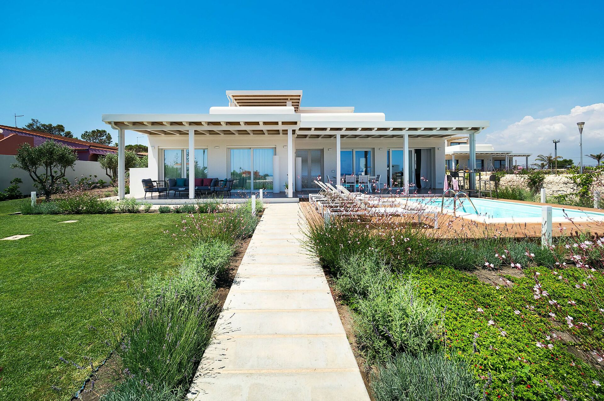 Die Villa San Lorenzo Palma ist eine prächtige Villa im mediterranen Stil, nur wenige Schritte vom Meer entfernt in San Lorenzo, einem beliebten Badeort, welcher die schönsten Strände Siziliens hat.