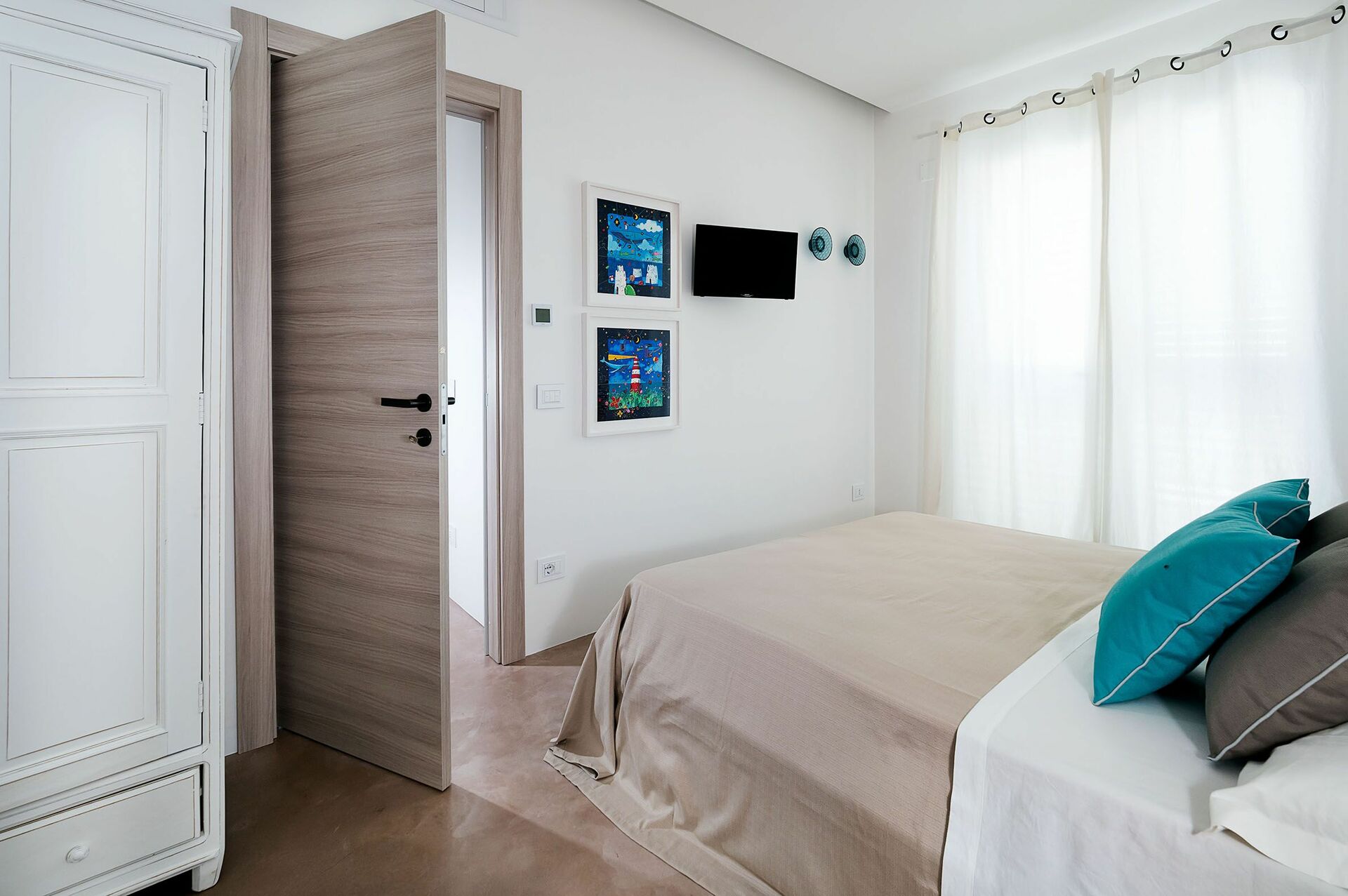 Erster Stock (Zugang über Außentreppe): Schlafzimmer mit Doppelbett mit eigenem Bad mit Dusche, Terrasse.
