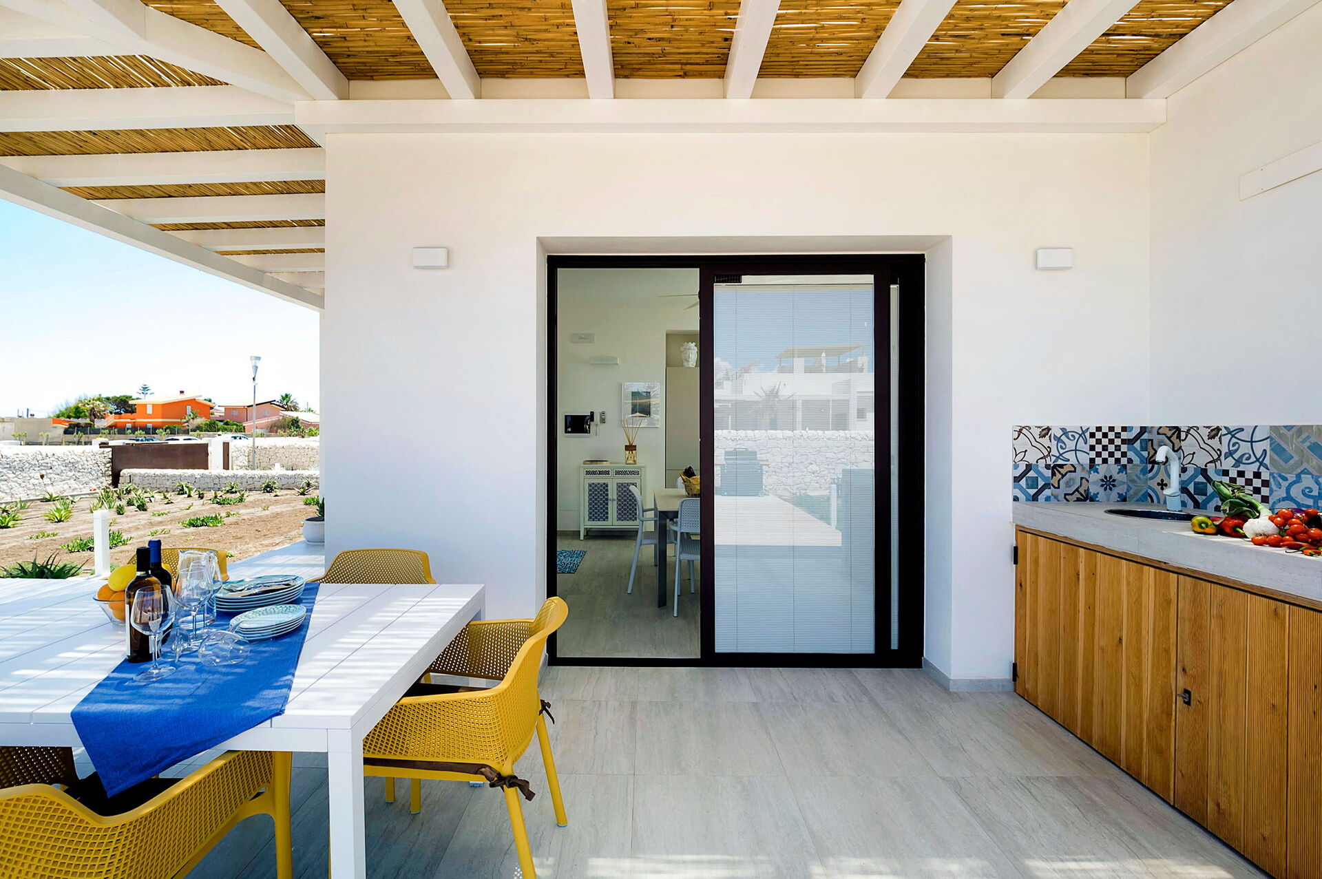Die Ferienvilla befindet sich nicht weit entfernt vom charmanten und lebhaften Küstenort Marzamemi. Die Lage ist günstig um die schönsten Orte im Südosten Siziliens wie Noto, Syrakus und die Barockstädte des Val di Noto, des nahegelegenen Vendicari-Reservats und auch Taormina und der Etna Park zu erreichen.