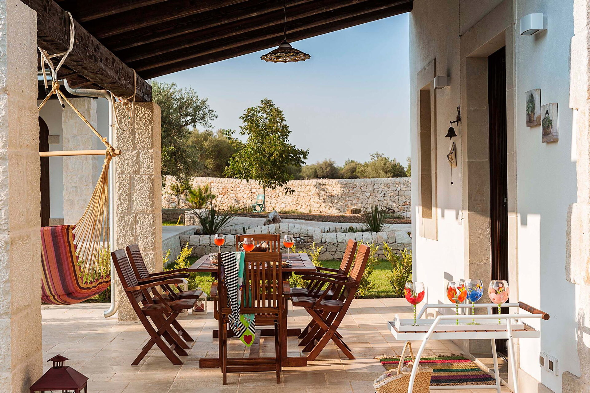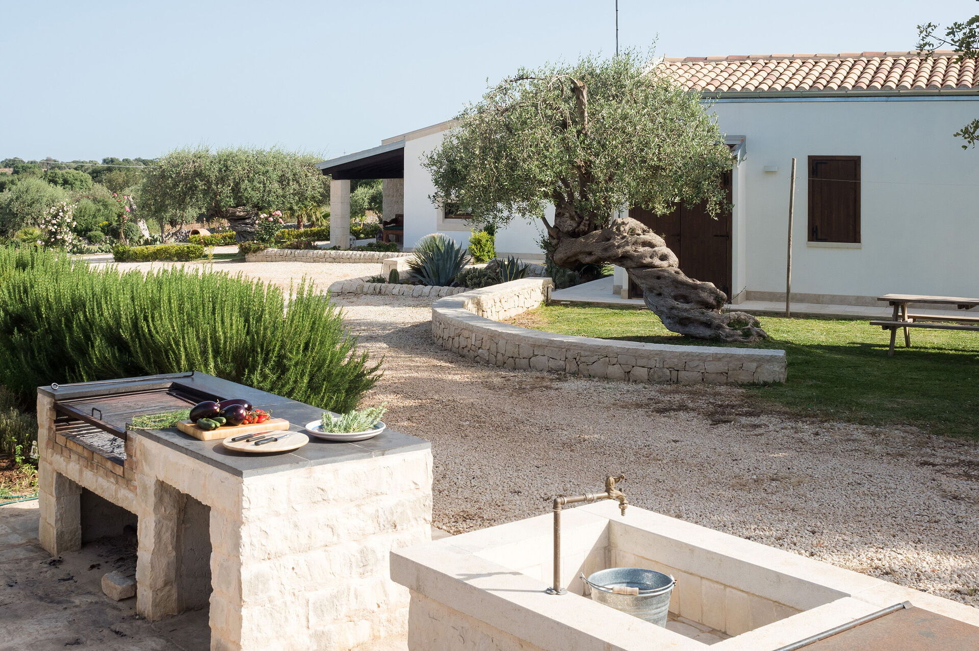 Corte Moscata ist harmonisch in die charakteristische ländliche Landschaft der sizilianischen Landschaft eingefügt und von einem gepflegten Garten umgeben, in dem sich ein privates Schwimmbad, exklusiv für die Gäste, große ausgestattete Bereiche wie eine Veranda und eine Loggia mit Eckbar befindet, die sich perfekt eignen um Momente im Freien in völliger Entspannung zu geniessen.