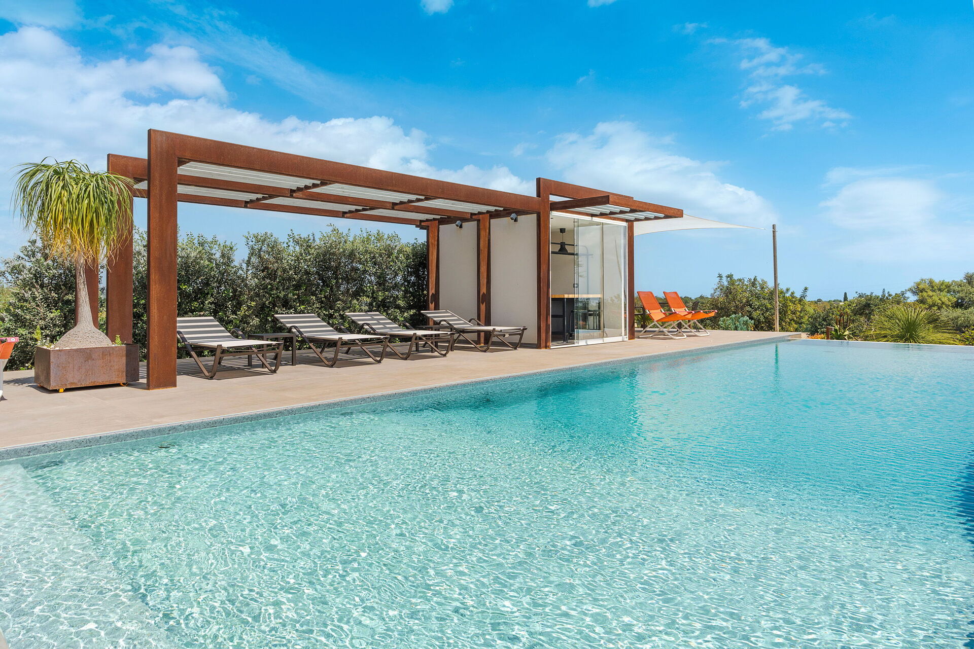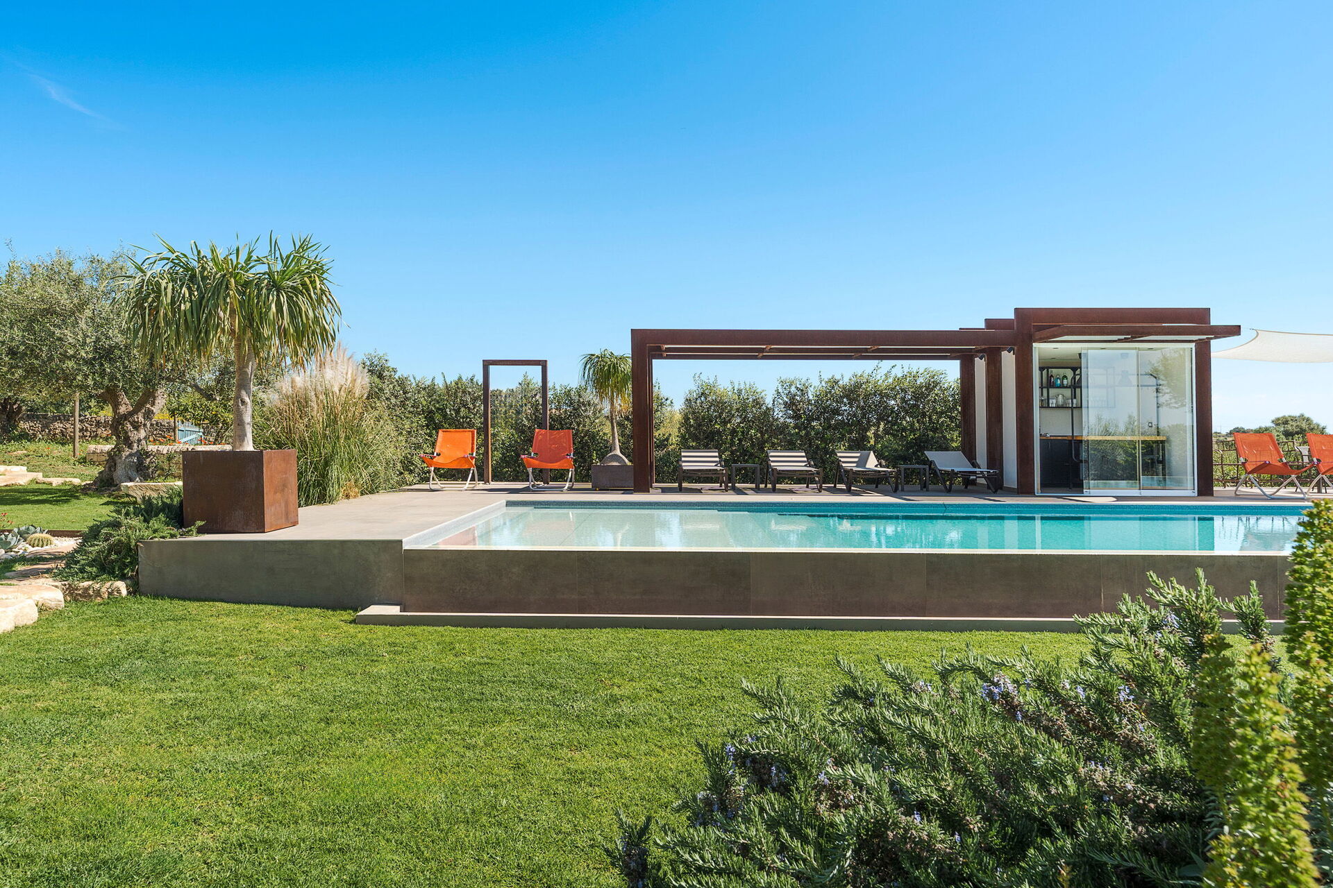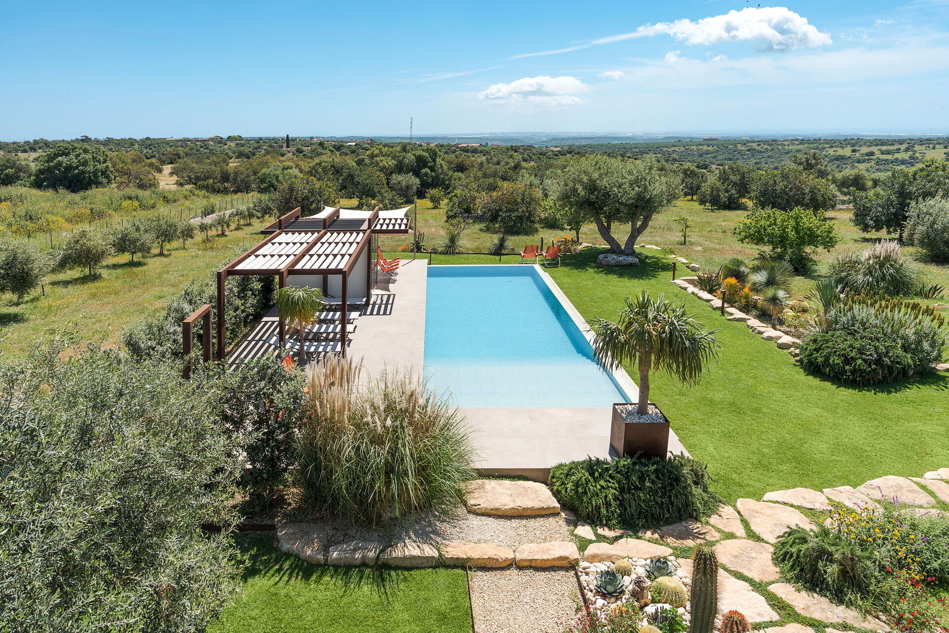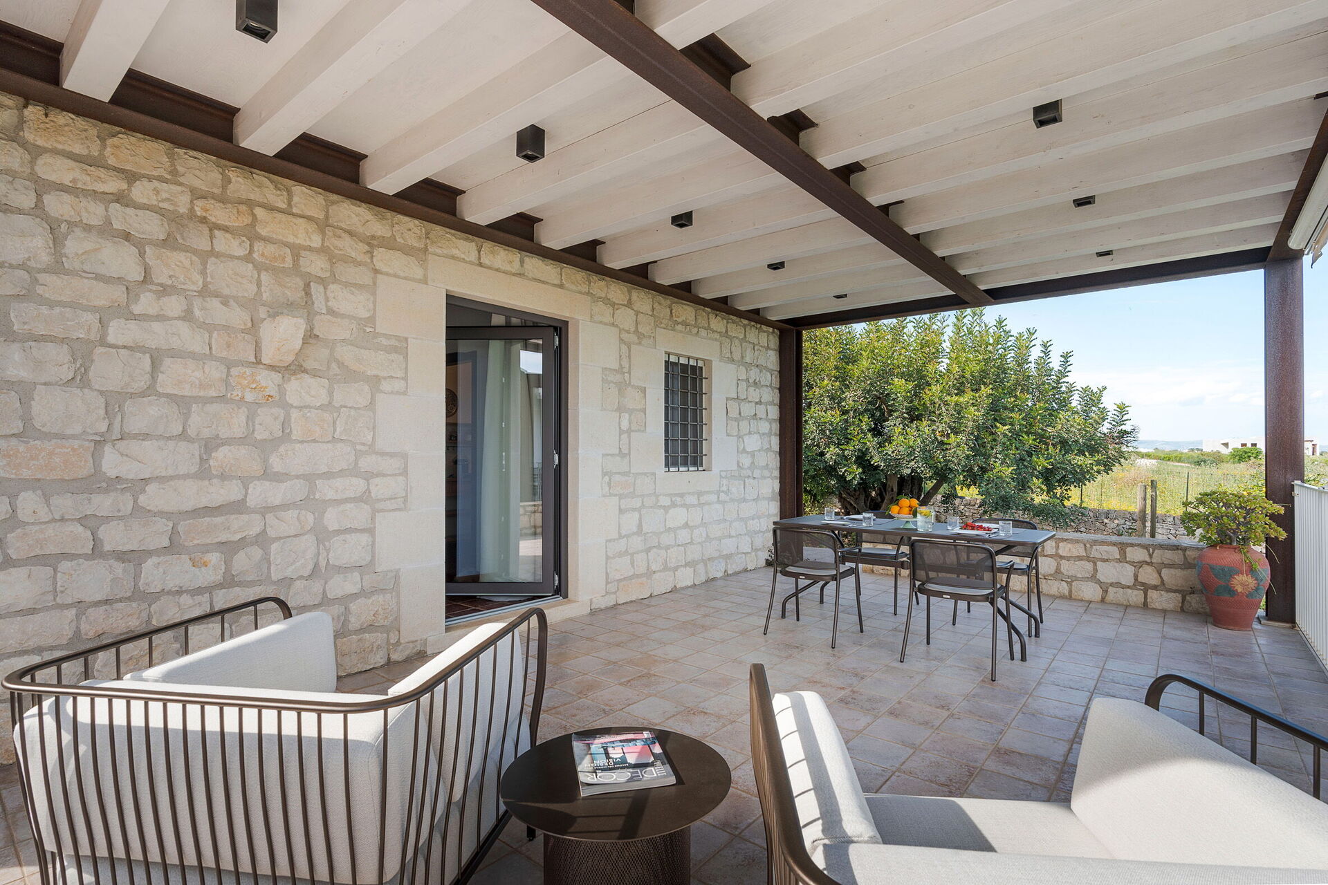Die Villa Corte Antigua ist harmonisch in die charakteristische sizilianische Landschaft eingebettet, von einem gepflegten Garten umgeben und verfügt über ein schönes privates Schwimmbad sowie großzügige, möblierte Bereiche wie eine Veranda und eine Terrasse, die sich ideal zum Entspannen im Freien eignen.