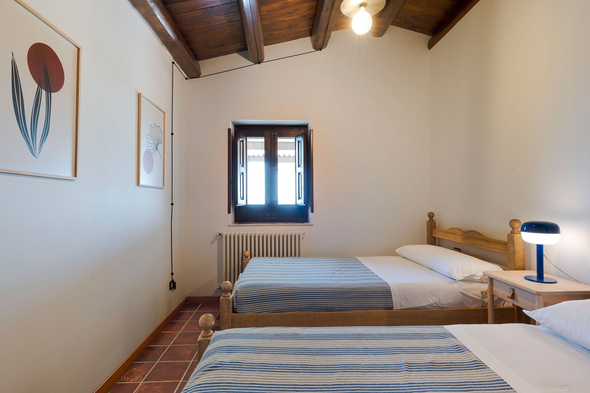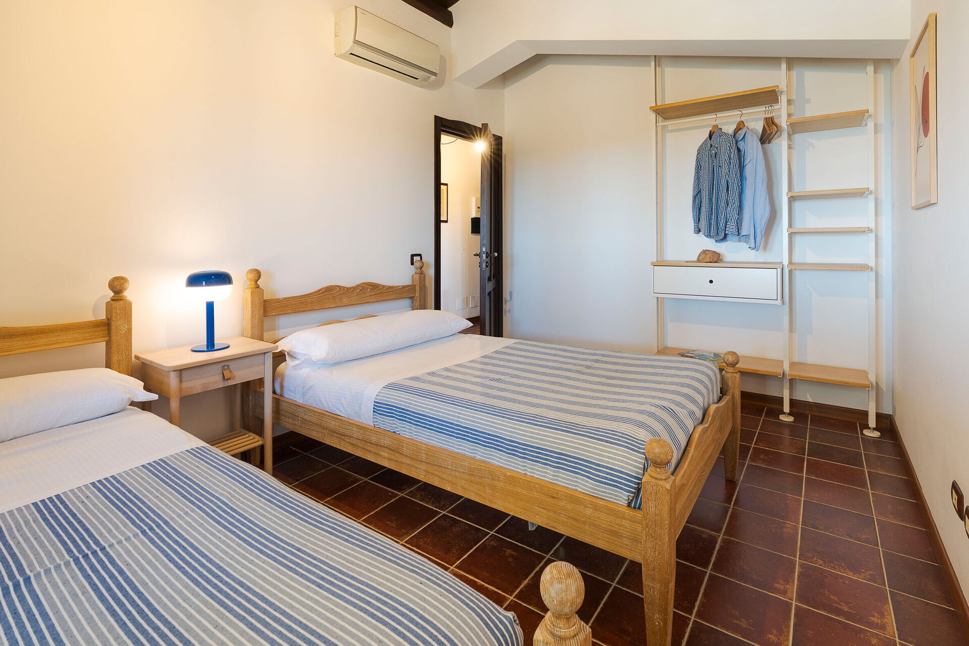 Erdgeschoss: Doppelzimmer (Bettgröße: 180 x 200 cm) mit privatem Bad mit Dusche und Zugang zur Veranda, Doppelzimmer (Bettgröße: 160 x 200 cm), Bad mit Dusche. Erster Stock: Doppelzimmer mit Zugang zu einer Terrasse mit Pergola, Zweibettzimmer, Badezimmer mit Dusche.