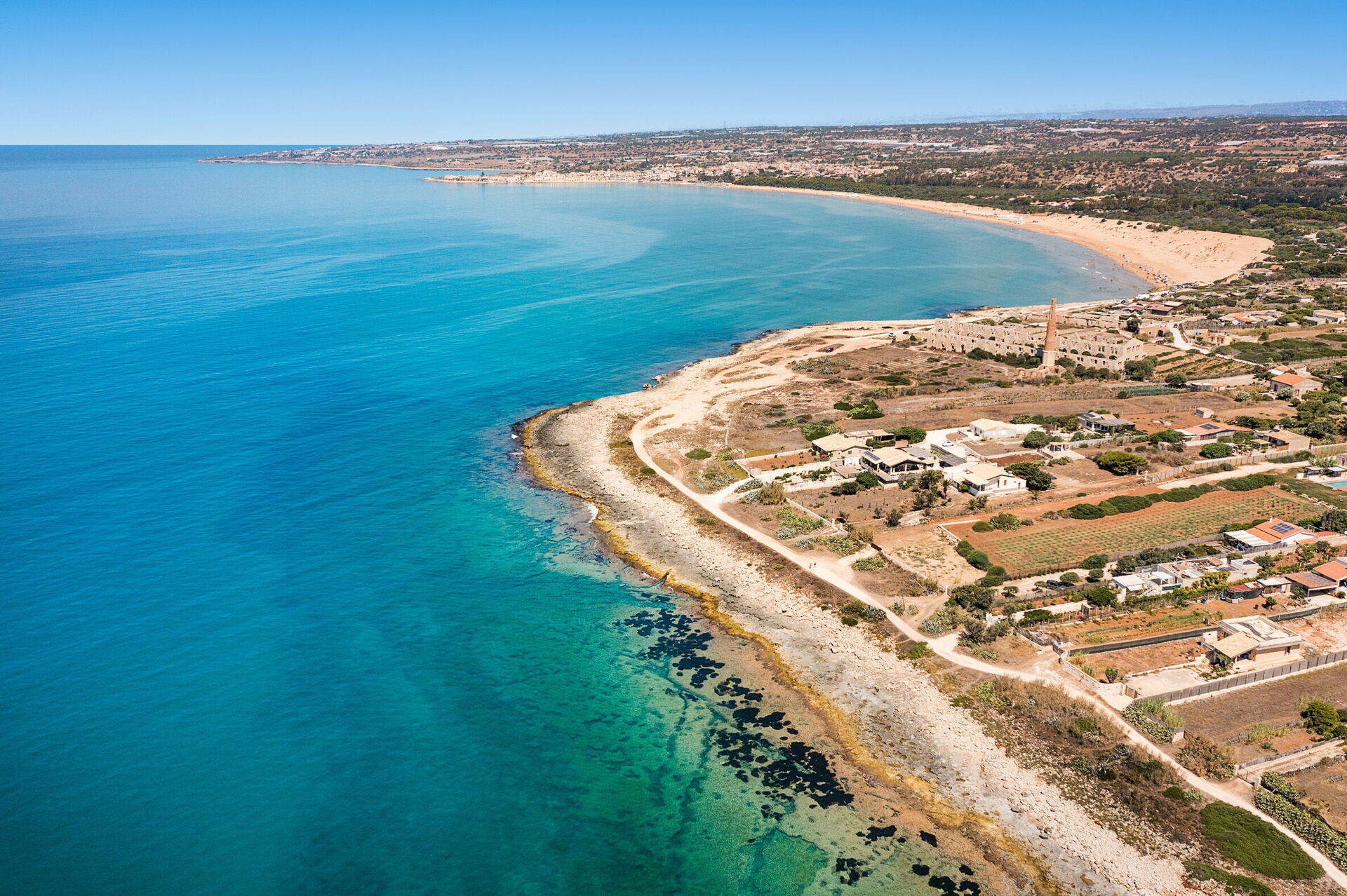 Entfernungen: Meer (Felsen) 100 Meter , Pozzallo (Geschäfte aller Art, Meer) 9 km, Scicli 13 km, Modica 23 km, Ragusa-Ibla 36 km, Noto 41 km, Marzamemi 42 km, Avola 54 km, Fontane Bianche 56 km, Siracusa 70 km, Catania (Flughafen) 120 km.