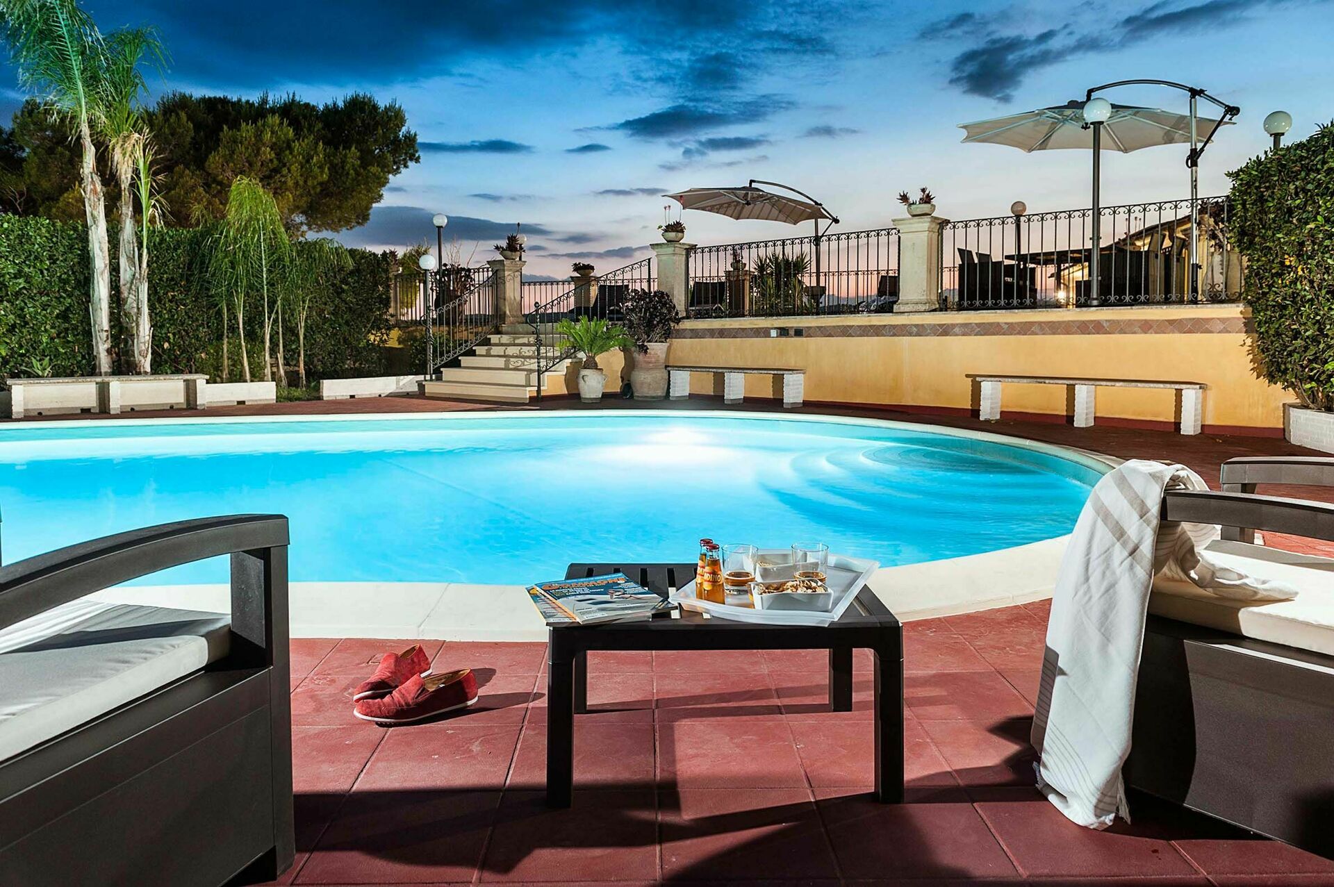 Von den großzügigen und sonnigen Terrassen der Luxusvilla aus genießen die Gäste einen herrlichen Panoramablick auf die umliegende Landschaft und die wunderschönen Sonnenuntergänge. Im Aussenbereich ist die Villa von einem großen gepflegten Garten umgeben, in dem sich ein schönes, privates Schwimmbad befindet, das mit einer Sonnenterrasse mit Sonnenliegen, Sonnenschirmen und Tischen ausgestattet ist. Der ideale Ort, um angenehme Stunden unter der warmen Sonne Siziliens mit Freunden und Familie zu verbringen. In den zahlreichen mit Tischen und Stühlen ausgestatteten Bereichen können die Gäste bequem draußen essen.