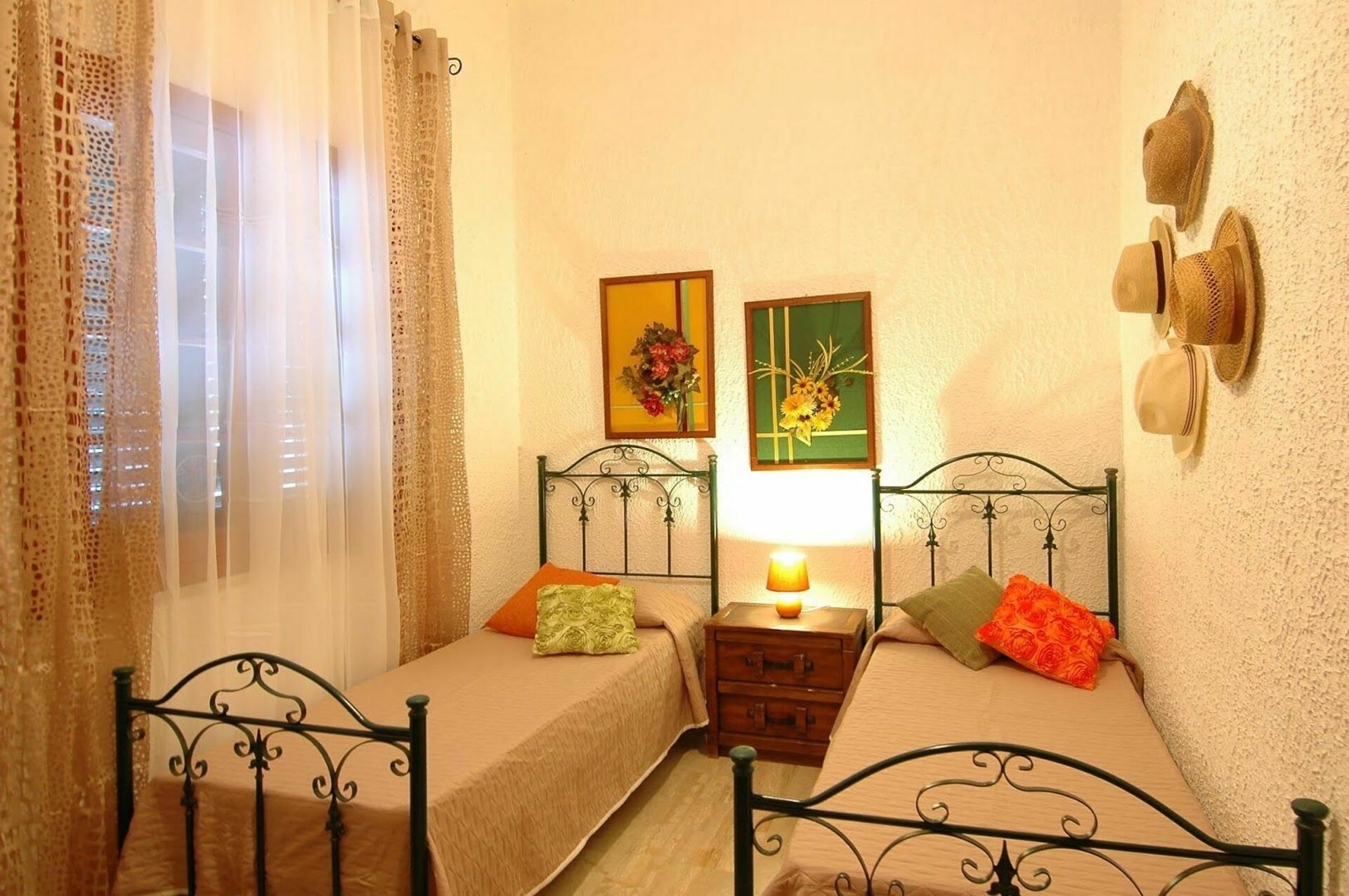 Zweibettzimmer (Klimaanlage), Zweibettzimmer (Deckenventilator),Einzelzimmer (Deckenventilator), Bad mit Dusche.