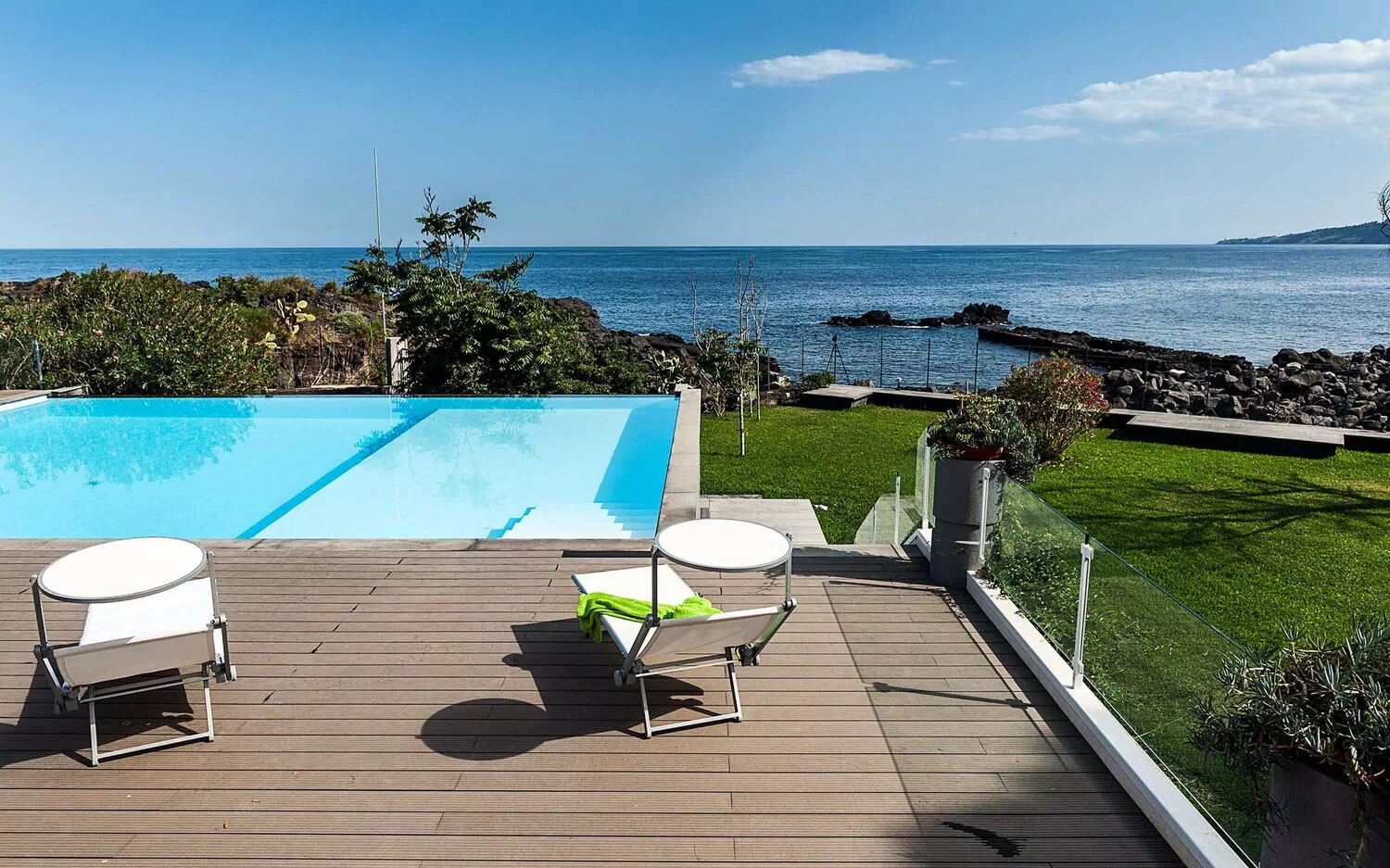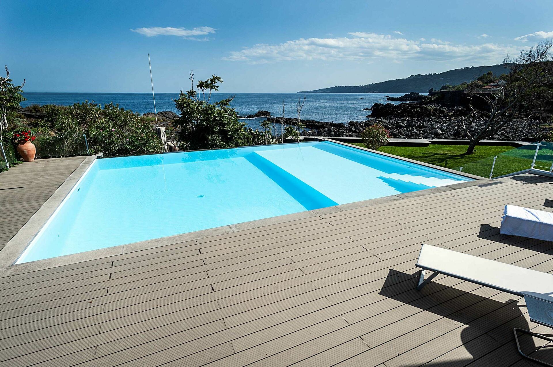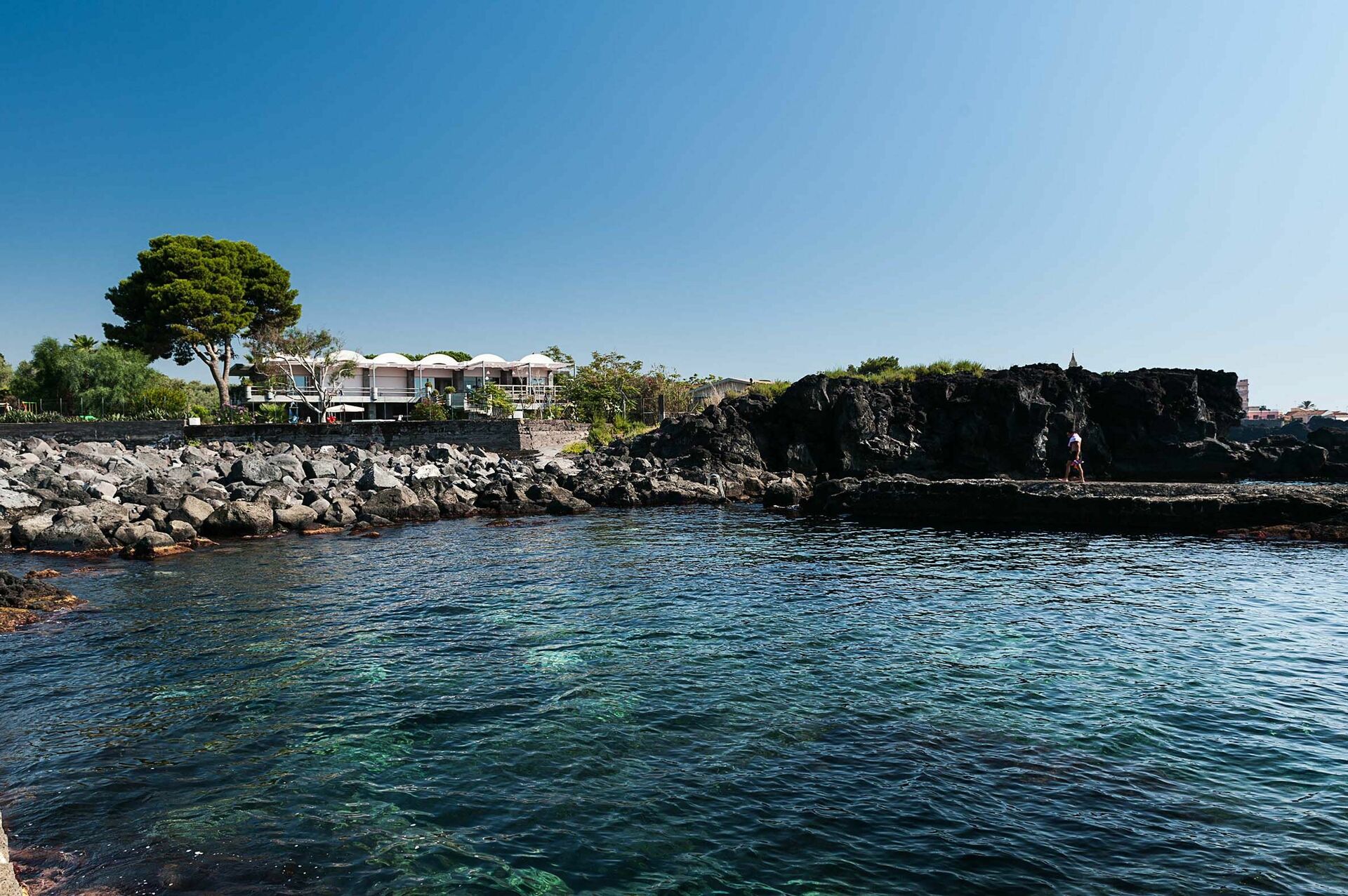 Entfernungen: Meer mit Felsen 100 Meter, Geschäfte aller Art 5 km, Acireale 8 km, Ätna (Zafferana Etnea) 15 km, Catania 20 km, Taormina 40 km, Flughafen von Catania 40 km, Syrakus 90 km.