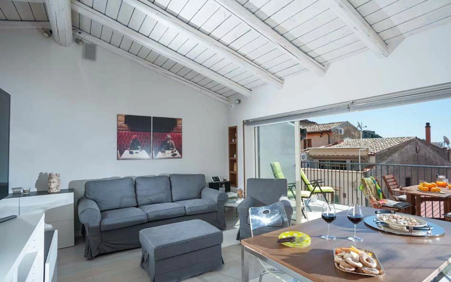 Exklusives Apartement mit Terrasse im alten Stadtzentrum von Taormina, im letzten Stockwerk eines antiken Palastes, wenige Meter entfernt von dem eleganten Corso Umberto.