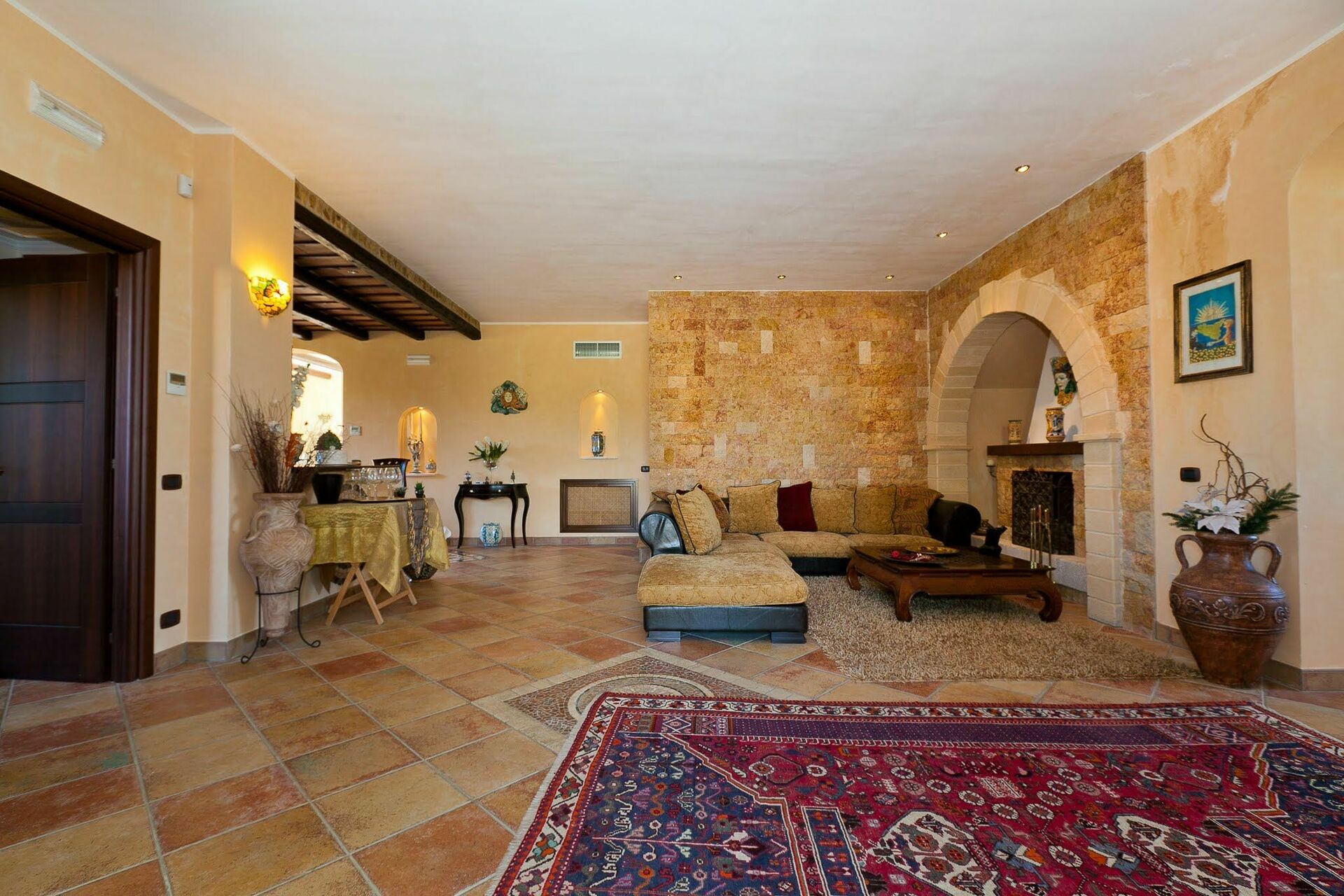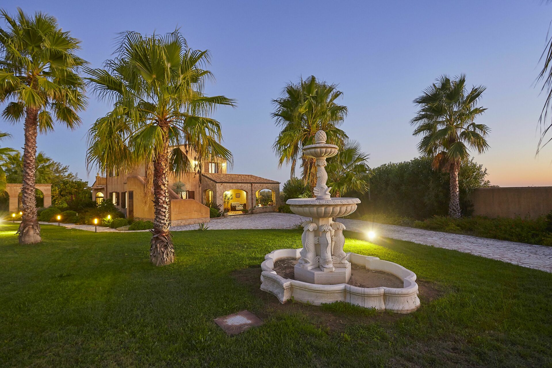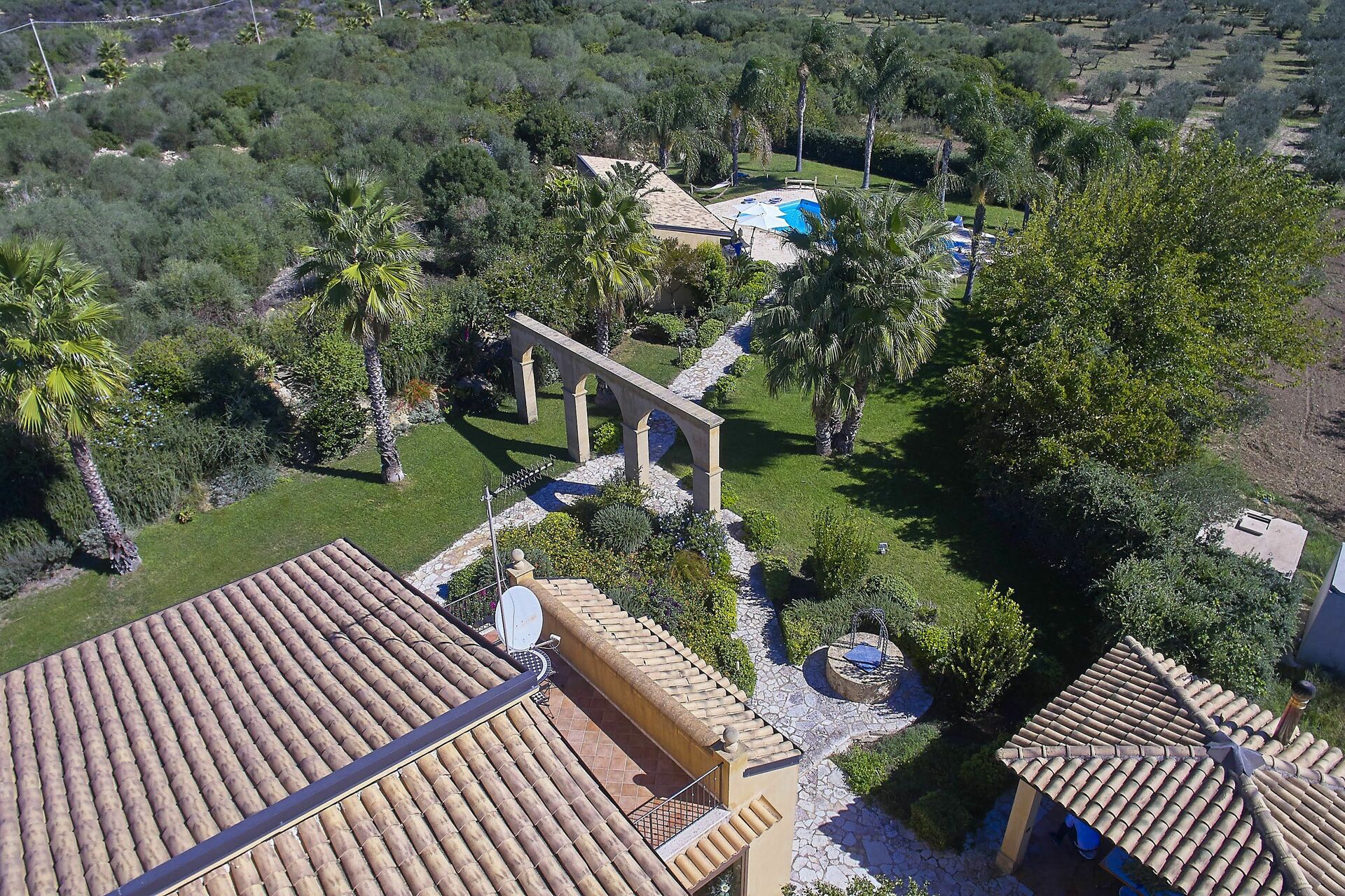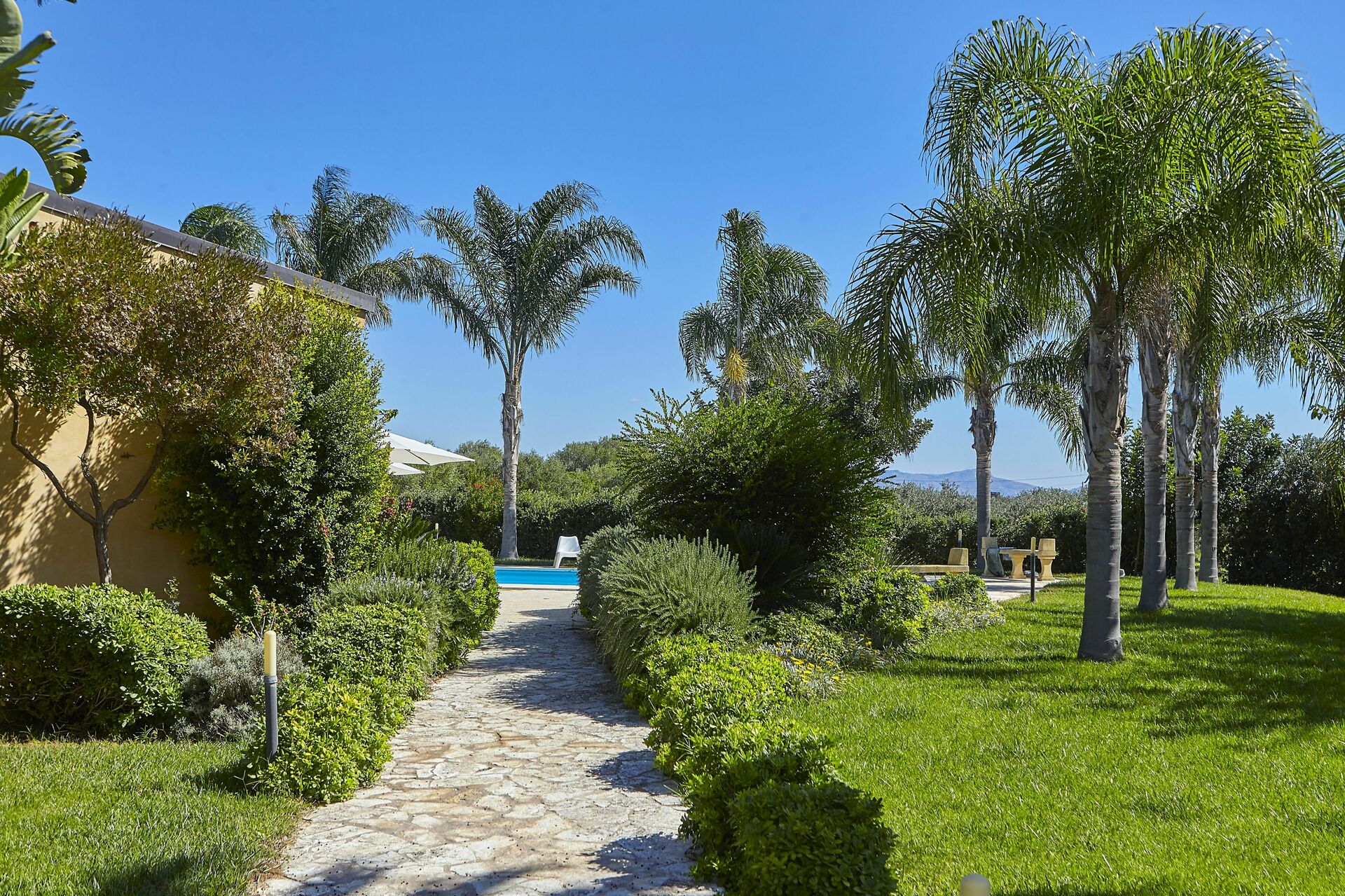 Die Villa erstreckt sich auf 2 Etagen und ist mit Sorgfalt und Geschmack eingerichtet.Die Villa ist von einer üppigen Vegetation umgeben und in dem grossen Park befindet sich ein Schwimmbad mit einem Nebengebäude mit Bad und Dusche.In dem grossen Garten gibt es ausserdem eine Terrasse mit Küche,Grill und einem Tisch aus kostbarem sizilianischem Majolika um den Gästen unvergessliche Abendessen im freien bieten zu können.Der Grund, auf dem sich der Besitz befindet ,besteht aus 14.000m2 Land,und ist teilweise bebaut mit Oliven,Wein und Obstbäumen.