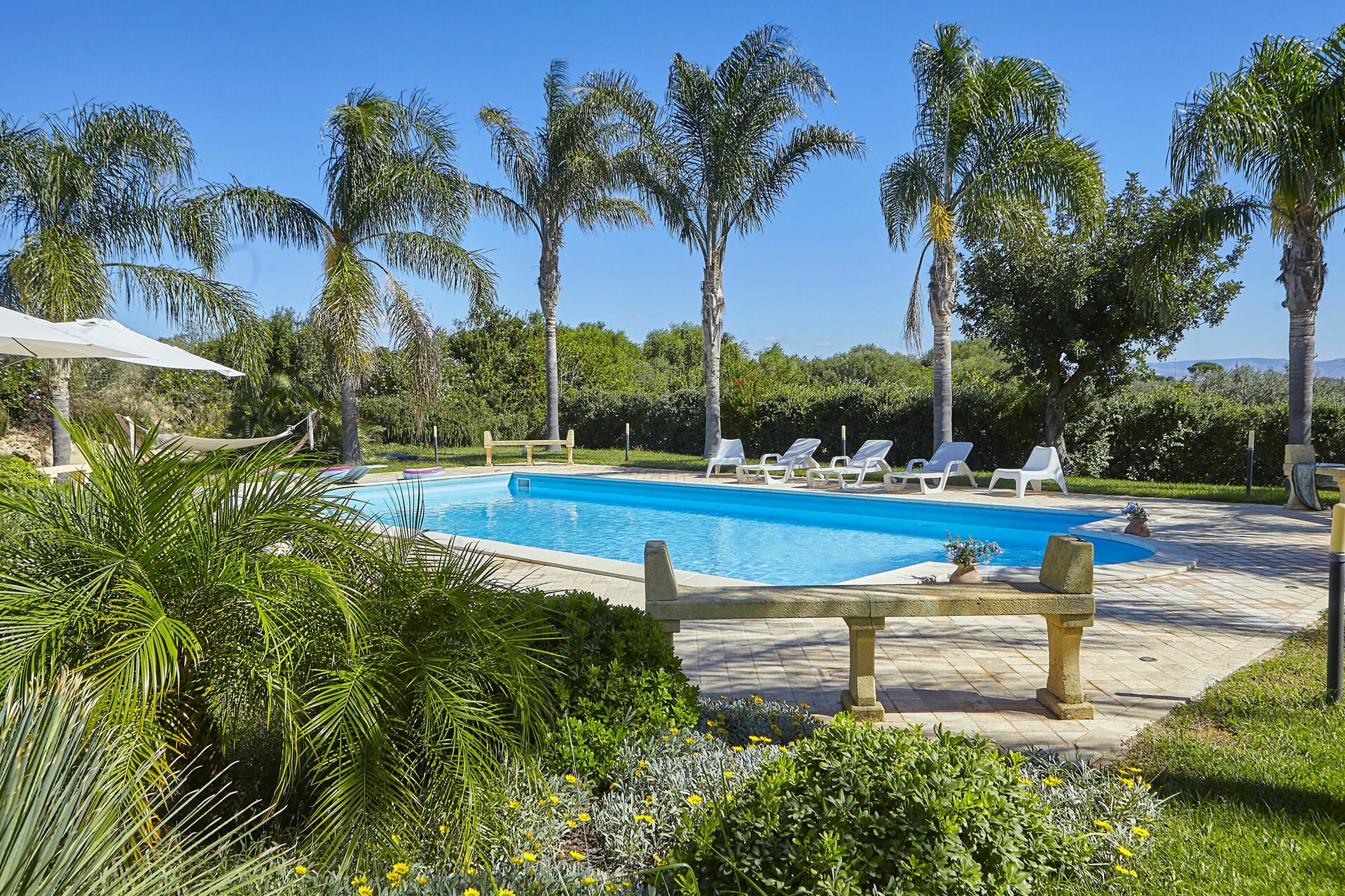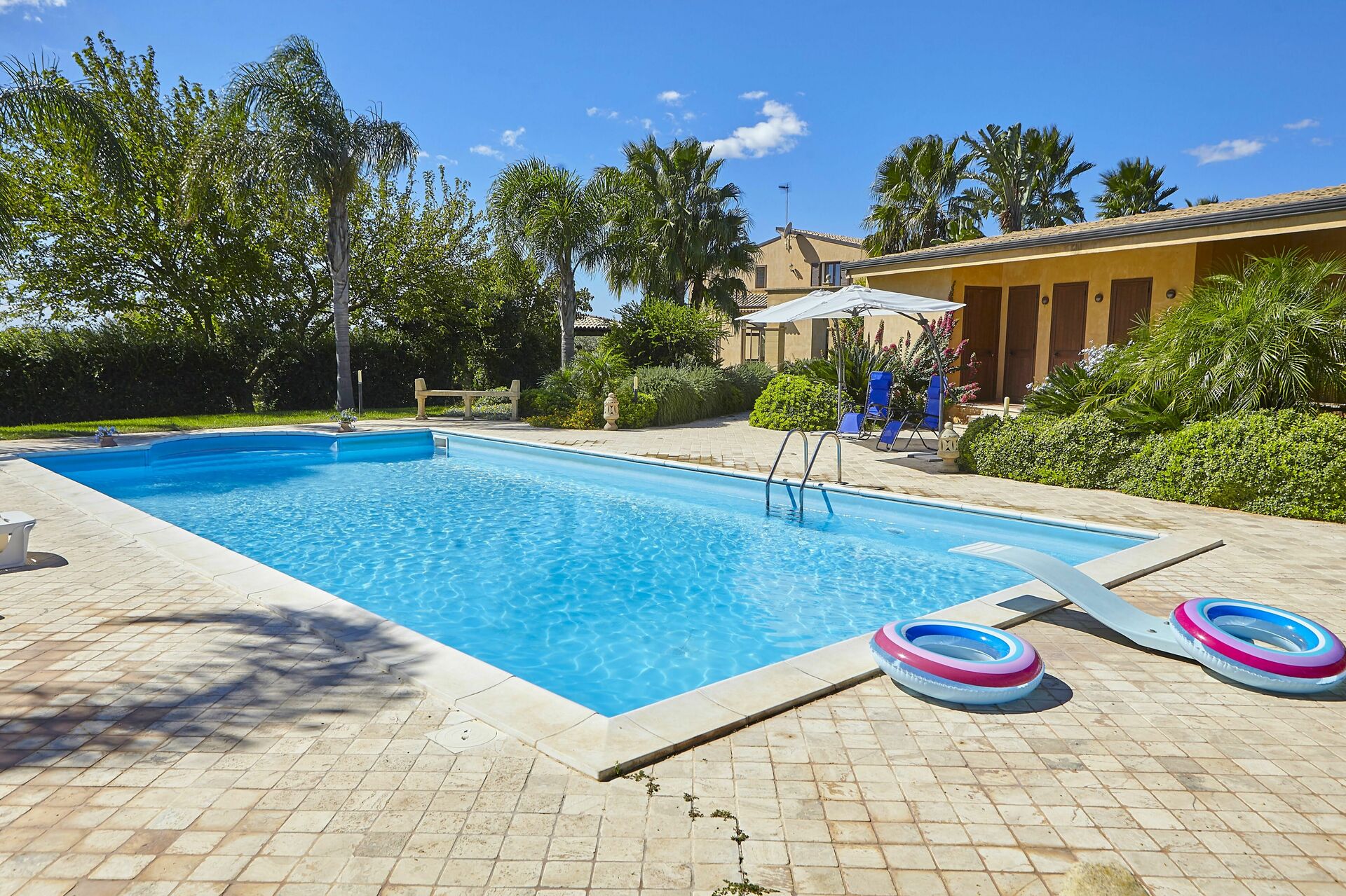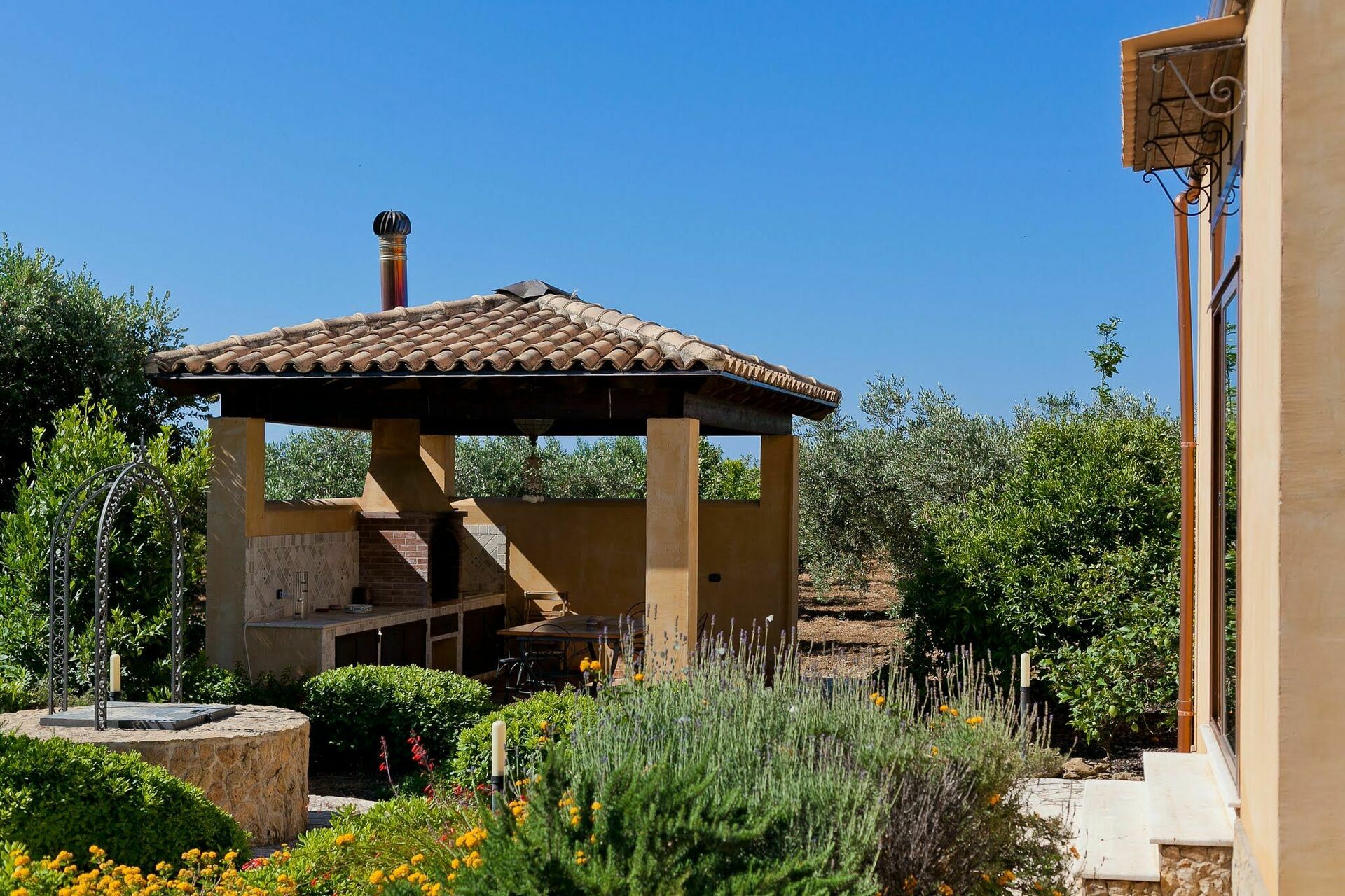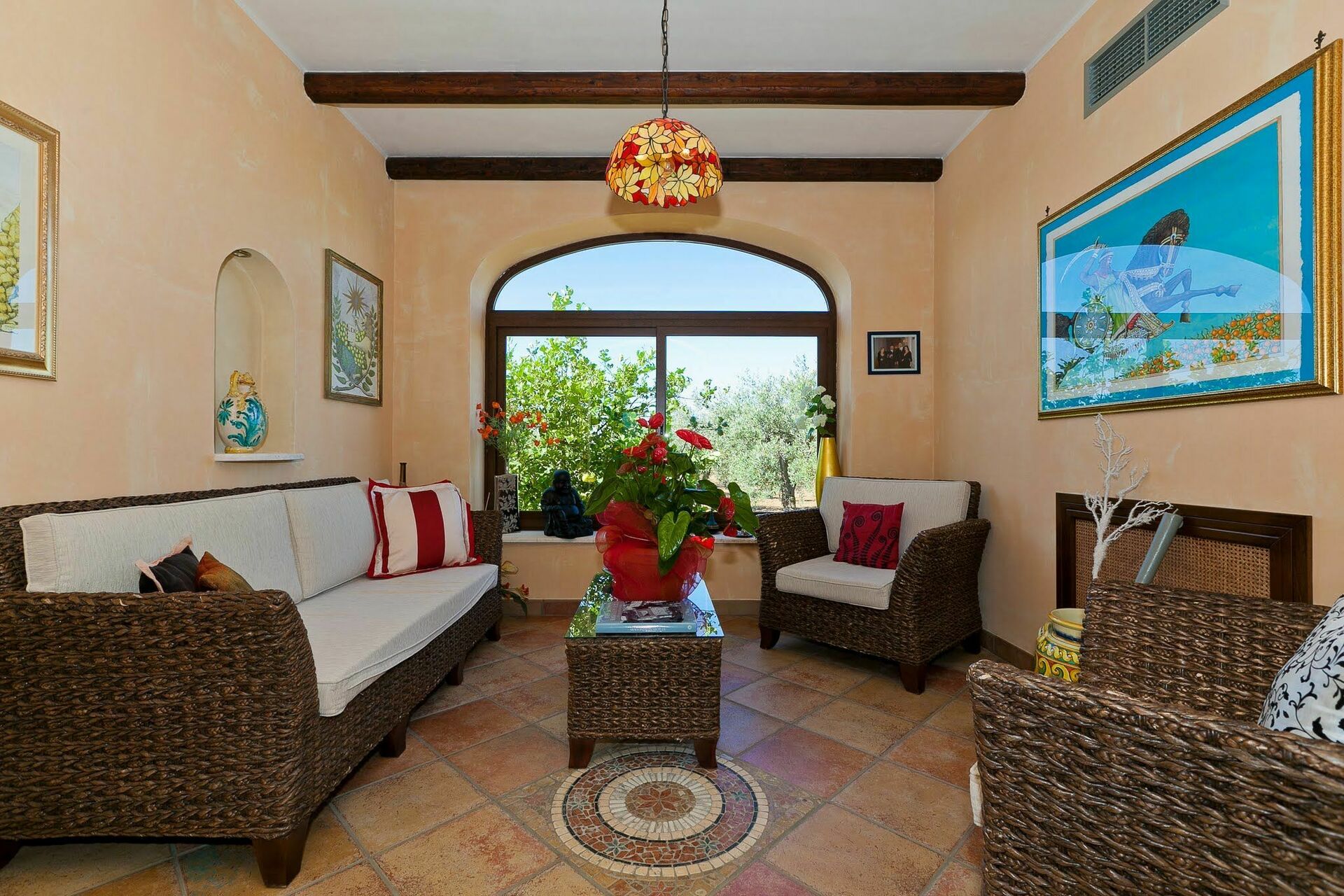 Die Villa erstreckt sich auf 2 Etagen und ist mit Sorgfalt und Geschmack eingerichtet.Die Villa ist von einer üppigen Vegetation umgeben und in dem grossen Park befindet sich ein Schwimmbad mit einem Nebengebäude mit Bad und Dusche.In dem grossen Garten gibt es ausserdem eine Terrasse mit Küche,Grill und einem Tisch aus kostbarem sizilianischem Majolika um den Gästen unvergessliche Abendessen im freien bieten zu können.Der Grund, auf dem sich der Besitz befindet ,besteht aus 14.000m2 Land,und ist teilweise bebaut mit Oliven,Wein und Obstbäumen.