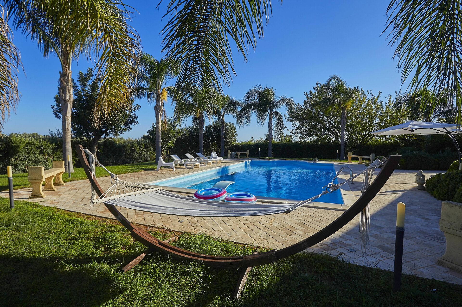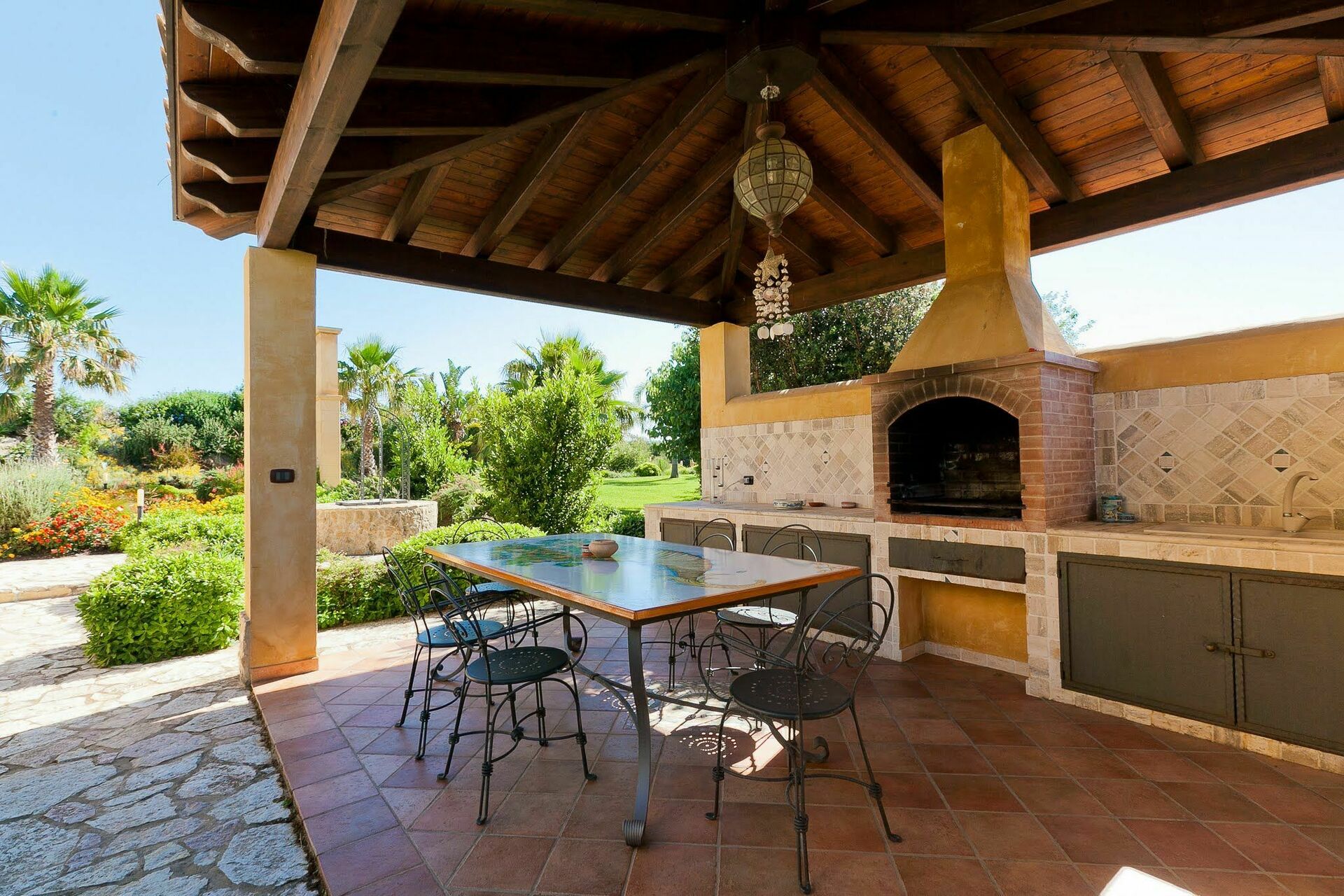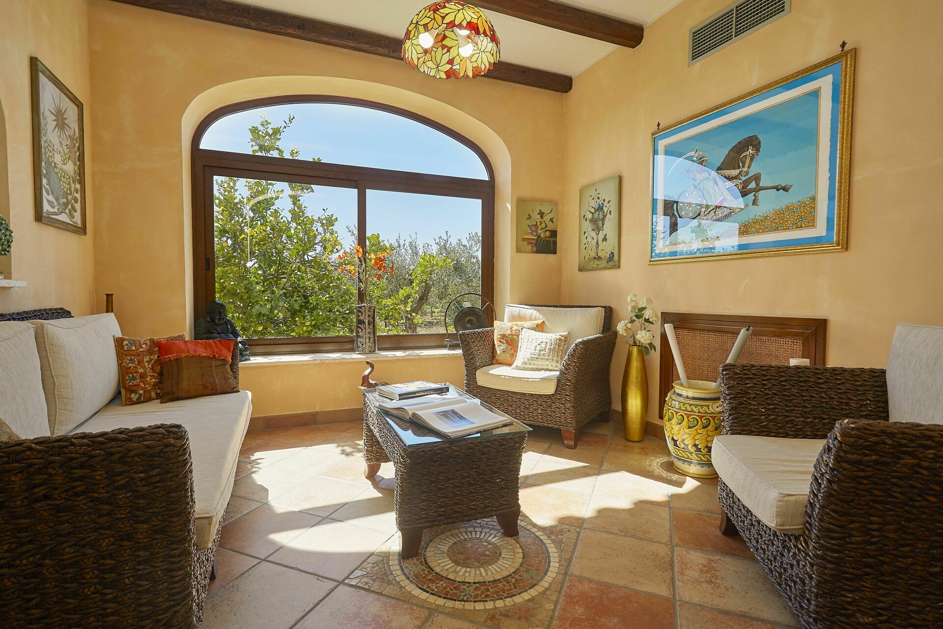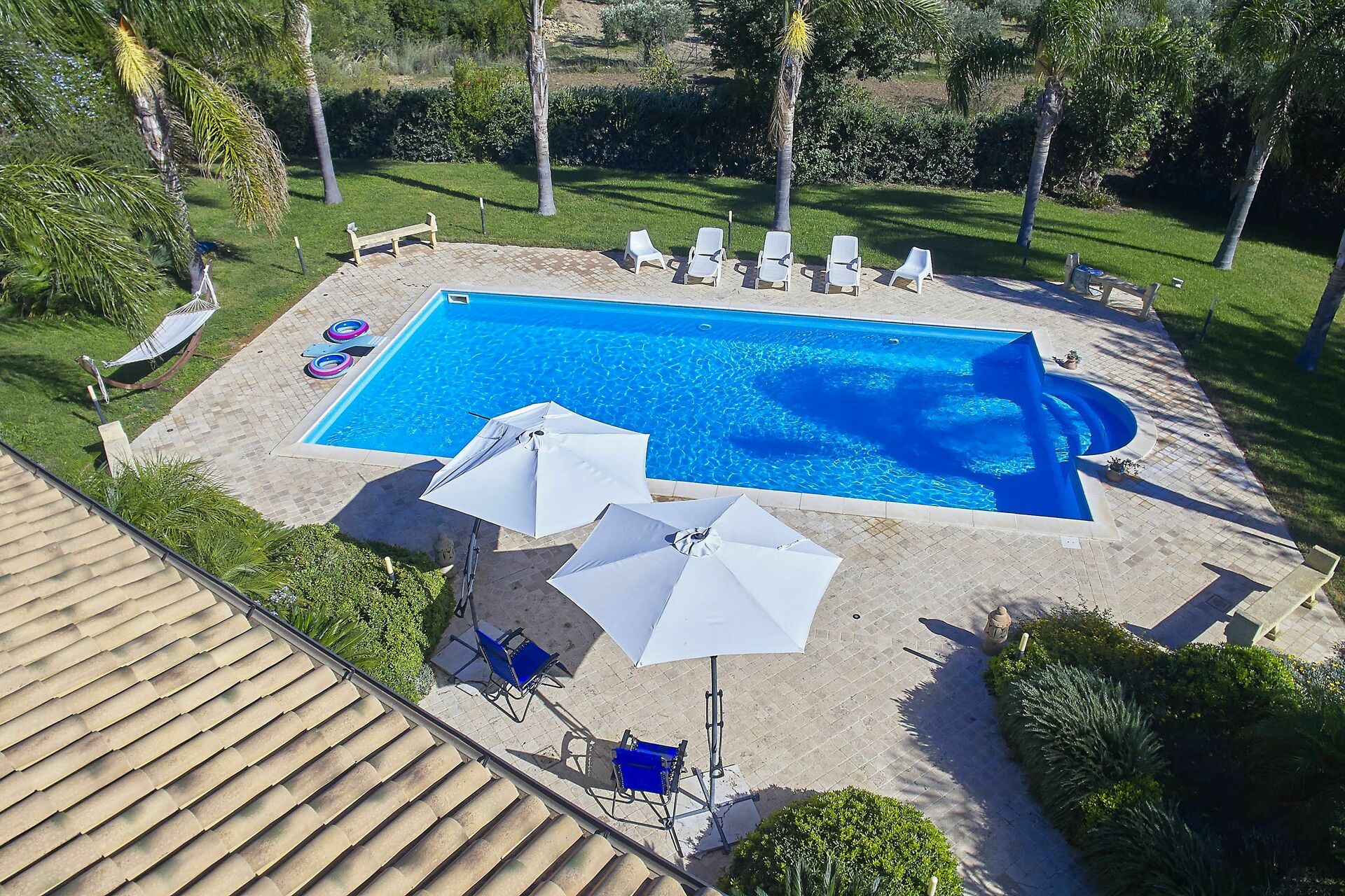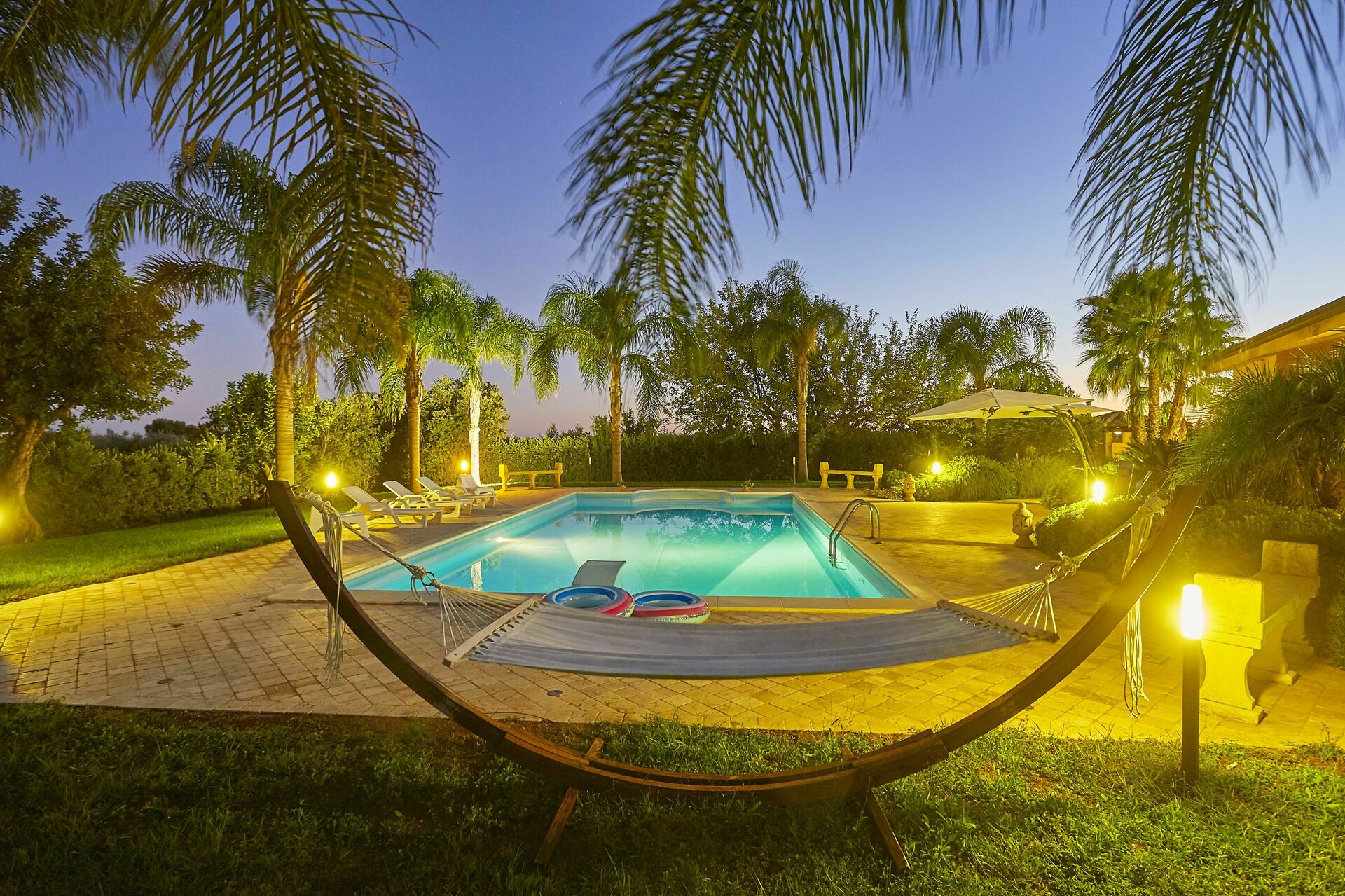 Die Villa erstreckt sich auf 2 Etagen und ist mit Sorgfalt und Geschmack eingerichtet.Die Villa ist von einer üppigen Vegetation umgeben und in dem grossen Park befindet sich ein Schwimmbad mit einem Nebengebäude mit Bad und Dusche.In dem grossen Garten gibt es ausserdem eine Terrasse mit Küche,Grill und einem Tisch aus kostbarem sizilianischem Majolika um den Gästen unvergessliche Abendessen im freien bieten zu können.Der Grund, auf dem sich der Besitz befindet ,besteht aus 14.000m2 Land,und ist teilweise bebaut mit Oliven,Wein und Obstbäumen.