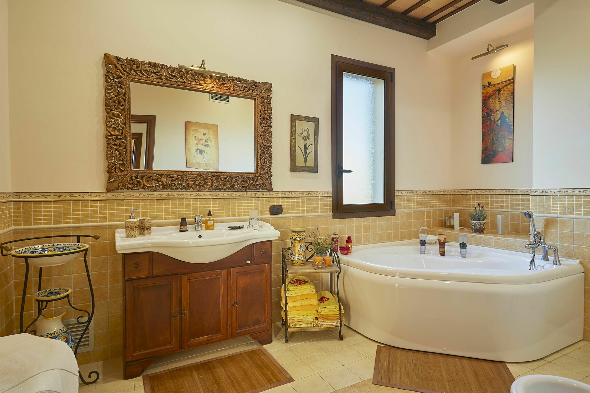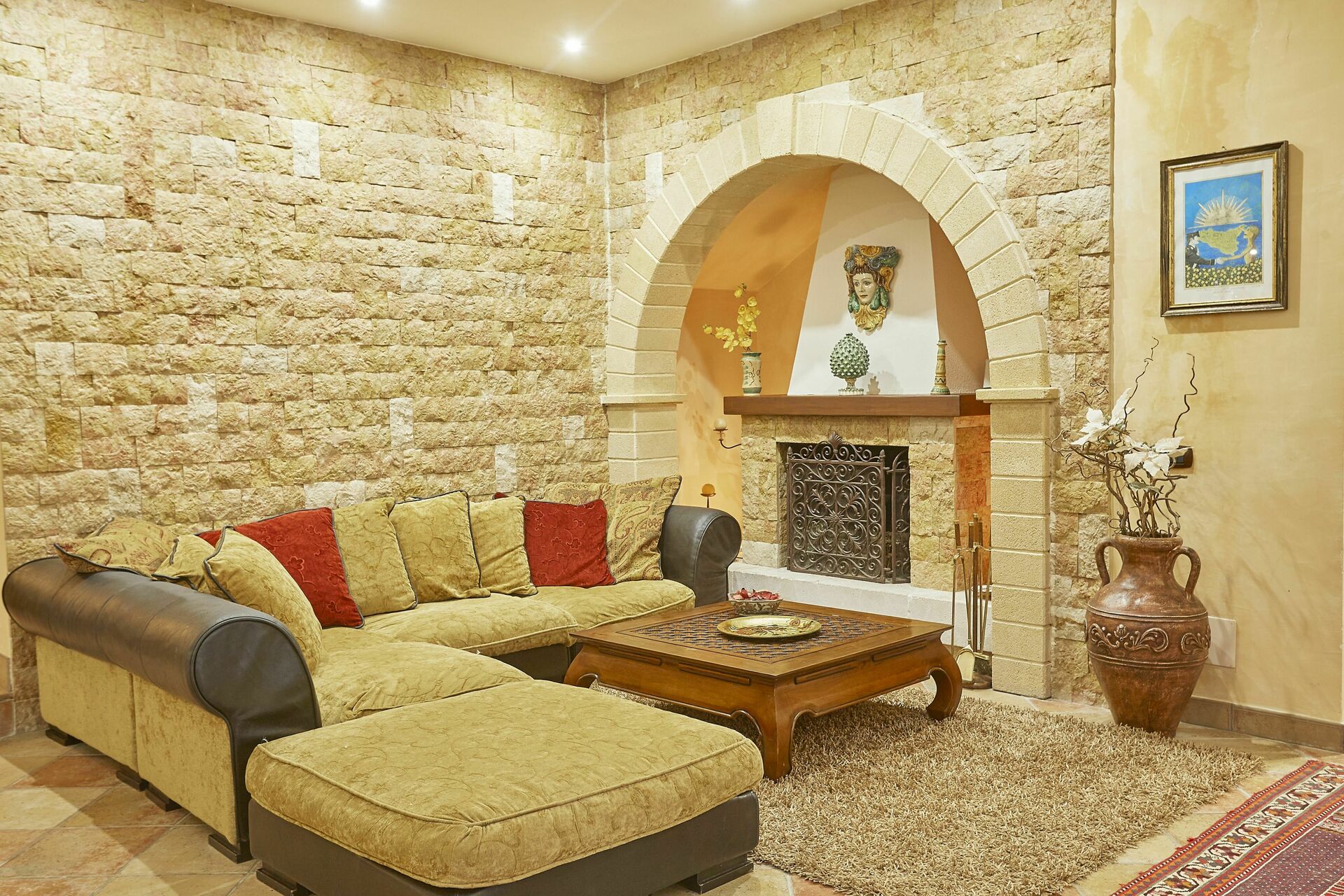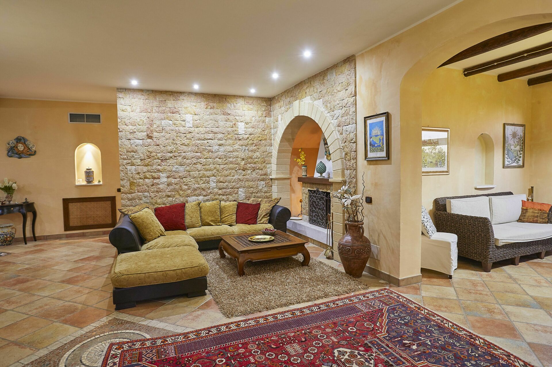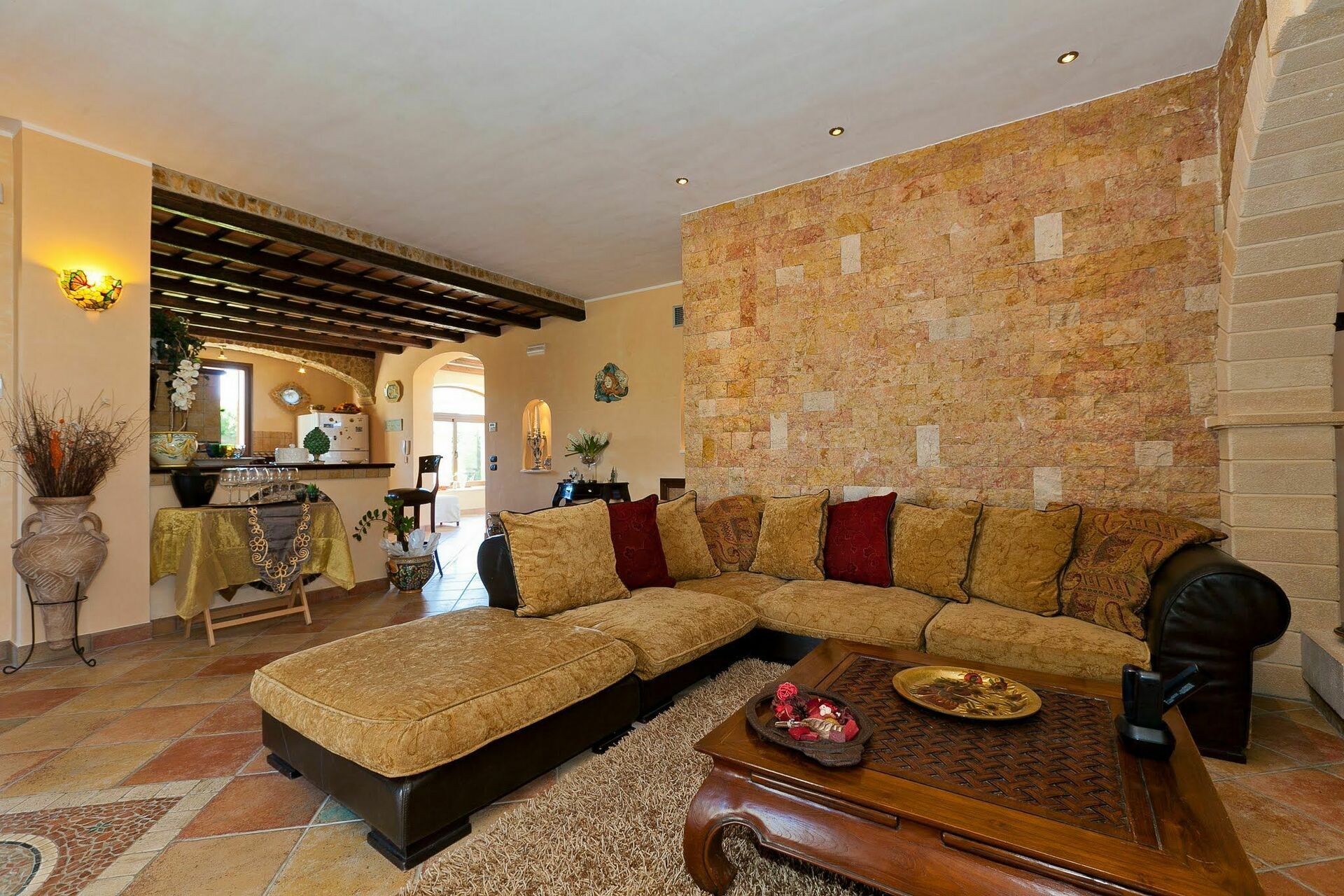 Die Villa erstreckt sich auf 2 Etagen und ist mit Sorgfalt und Geschmack eingerichtet.Die Villa ist von einer üppigen Vegetation umgeben und in dem grossen Park befindet sich ein Schwimmbad mit einem Nebengebäude mit Bad und Dusche.In dem grossen Garten gibt es ausserdem eine Terrasse mit Küche,Grill und einem Tisch aus kostbarem sizilianischem Majolika um den Gästen unvergessliche Abendessen im freien bieten zu können.Der Grund, auf dem sich der Besitz befindet ,besteht aus 14.000m2 Land,und ist teilweise bebaut mit Oliven,Wein und Obstbäumen.