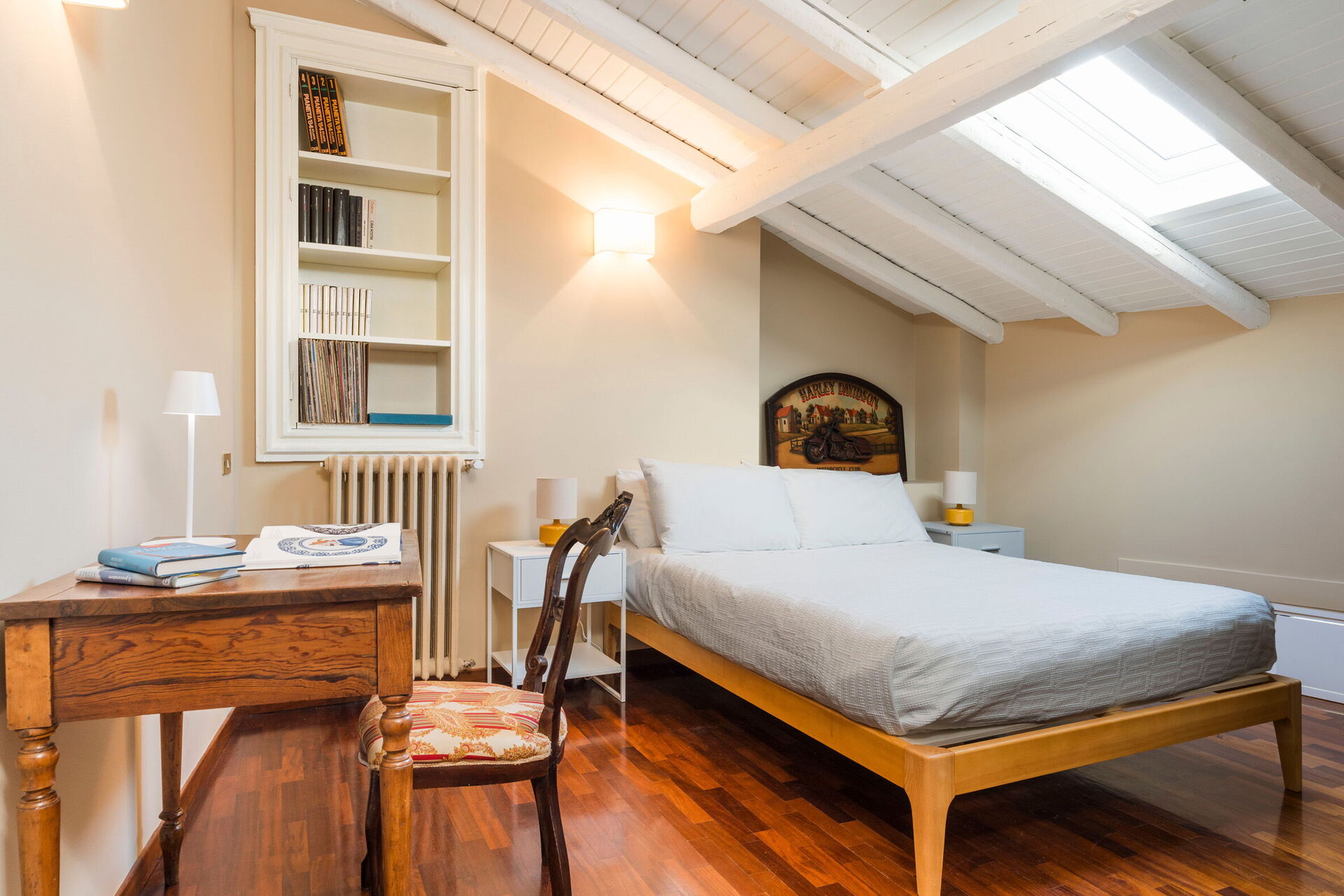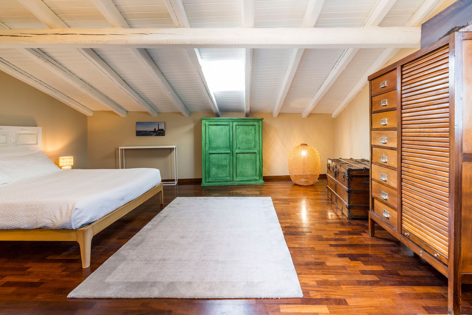 Erster Stock (Dachgeschoss): Doppelzimmer (Klimaanlage, Bettgröße: 160 x 200 cm), Badezimmer mit Dusche, Schlafzimmer mit französischem Bett (Klimaanlage).