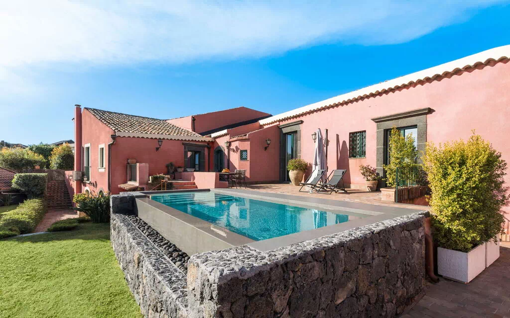 Micanera House ist eine exklusive Residenz mit privatem Schwimmbad zur Miete auf Sizilien: Die Villa befindet sich im historischen Zentrum von Viagrande, einem charakteristischen Bergdorf an den Hängen des Ätna.