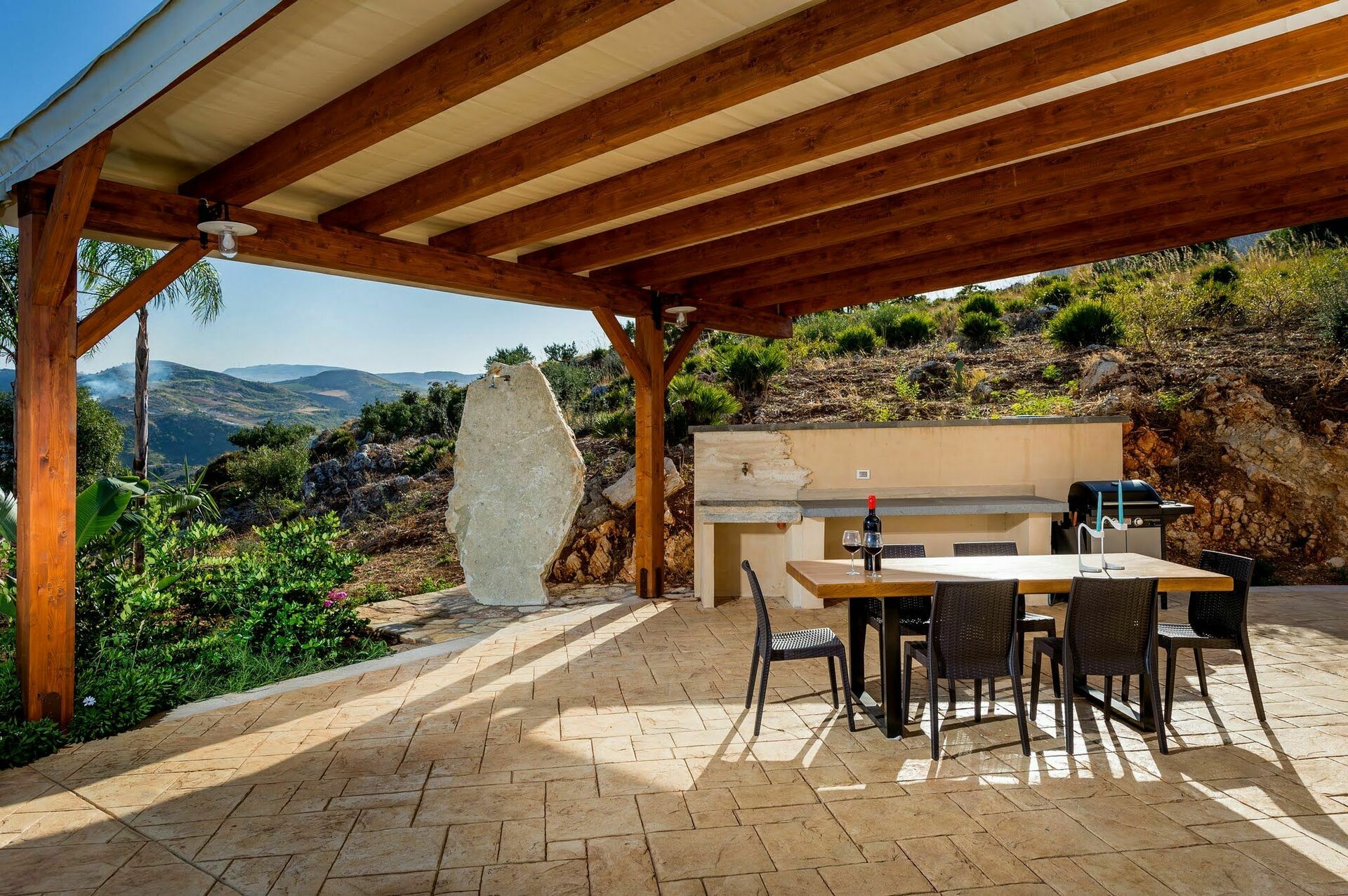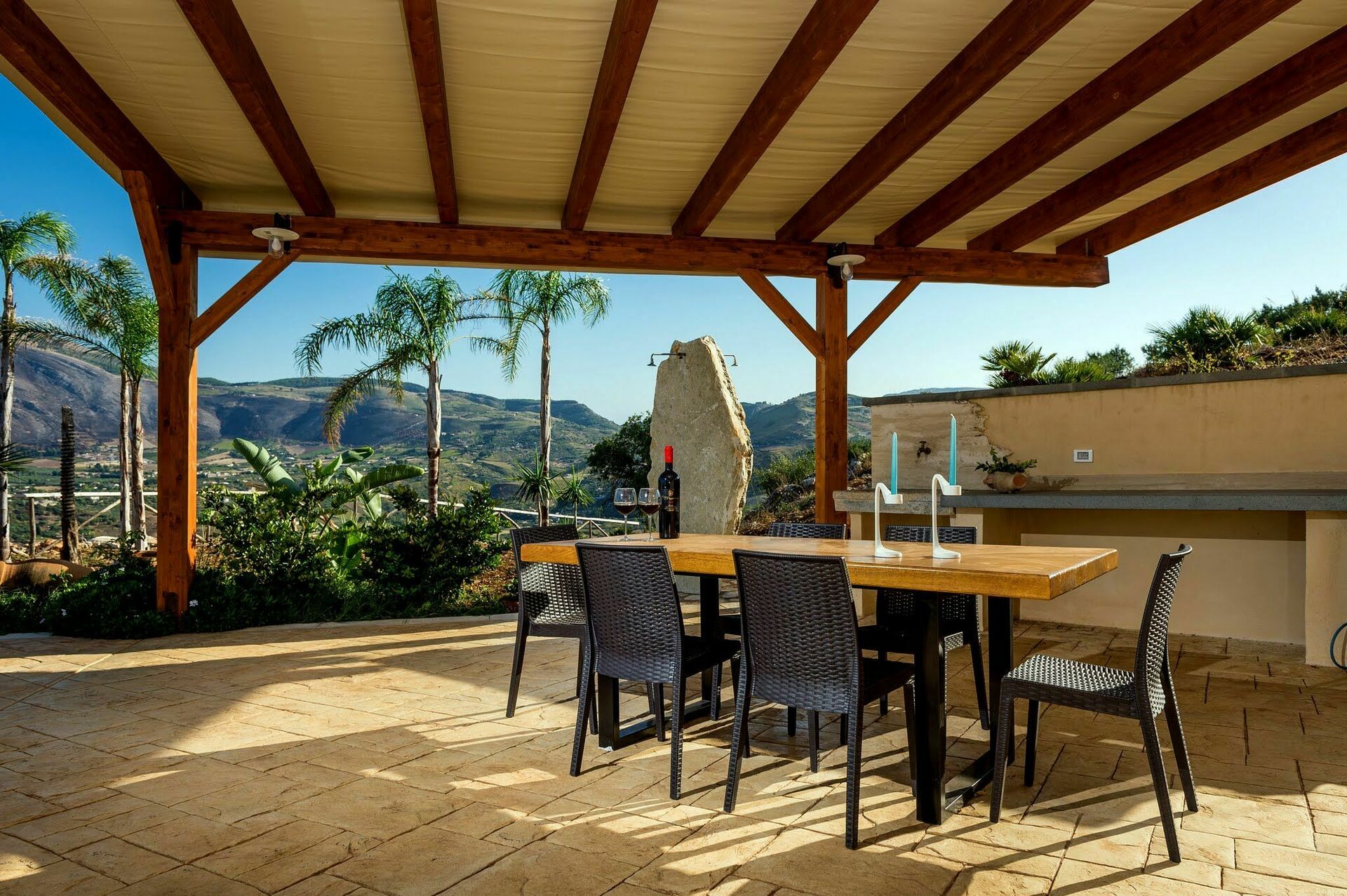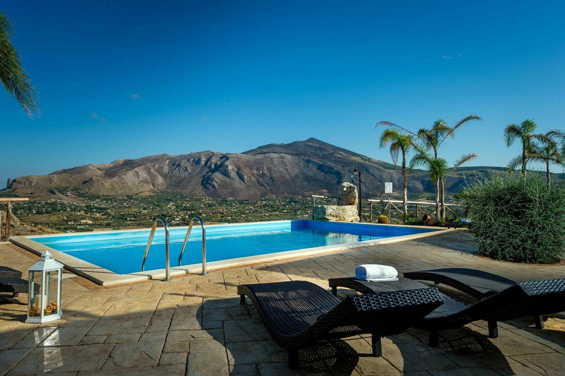 Von der Villa aus hat man einen wunderbaren Panorama- Blick über die Bergkette, den Turm von Scopello und das Naturreservat „Riserva dello Zingaro“ am Golf von Castellammare.