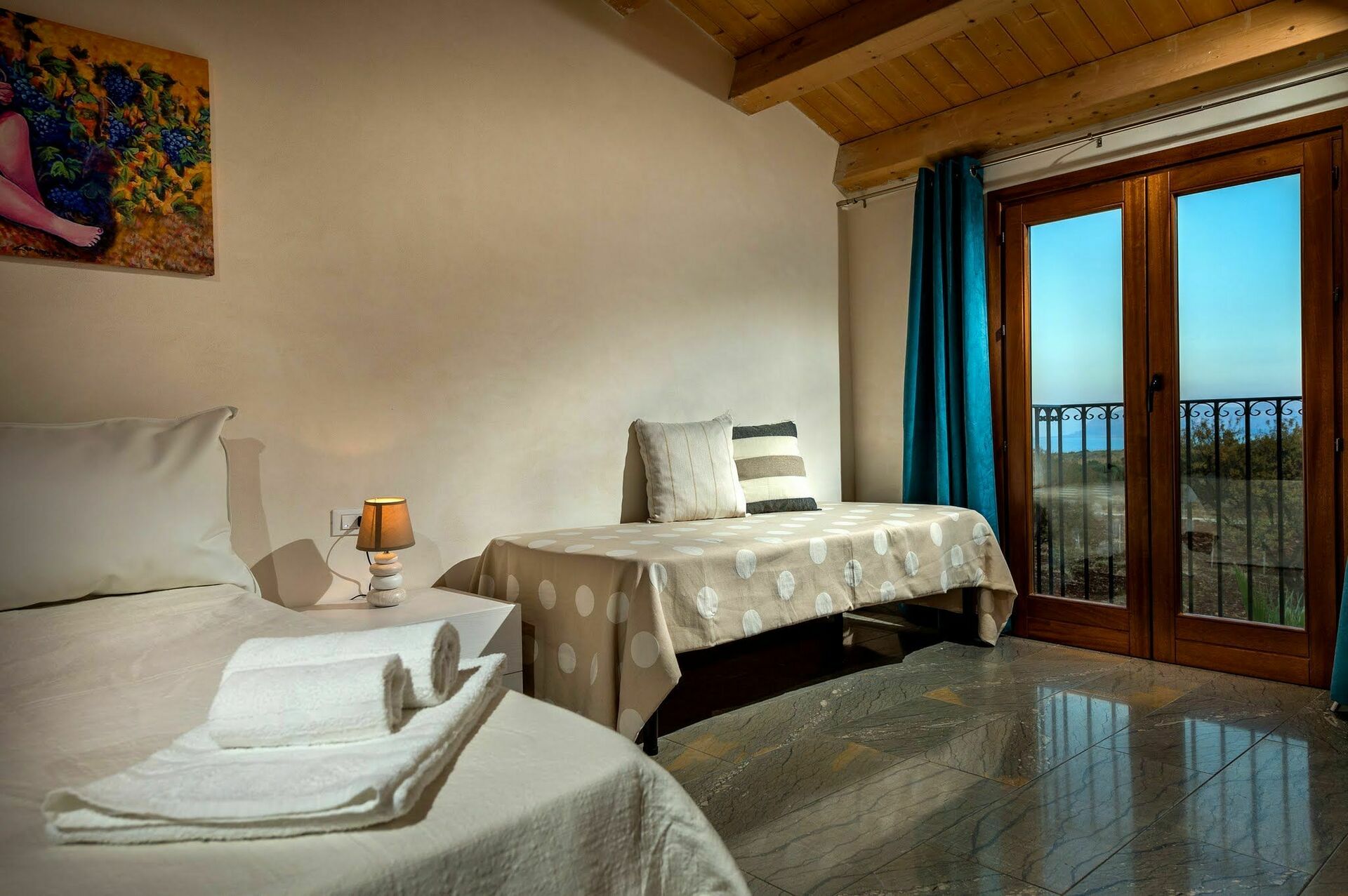 1.Stock:Doppelzimmer mit Ehebett, Balkon mit Blick auf das Schwimmbad, das Meer und die umliegende Gegend, Doppelzimmer mit Ehebett, Balkon mit Blick auf das Schwimmbad, das Meer und die umliegende Gegend, Zweibettzimmer (die Betten sind zusammenstellbar), Korridor mit Bad mit Dusche, Schlafzimmer mit Ehebett und Einzelbett (auf Anfrage) mit privatem Bad mit Dusche und Balkon mit Blick auf das Schwimmbad, das Meer und die umliegende Gegend.