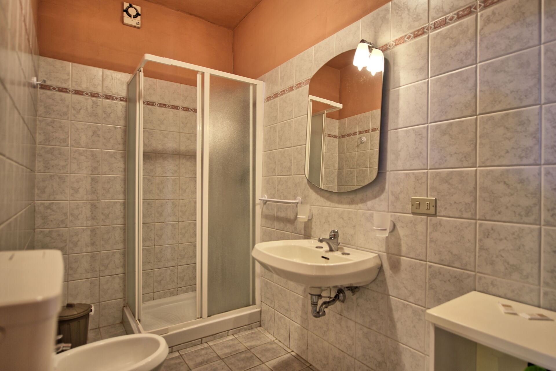 Erdgeschoss (Zugang von der Terrasse): kleine Küche (TV, Kühlschrank, Herd, Mikrowelle) mit Esstisch, Doppelzimmer (Klimaanlage) mit Zugang zum Wohnzimmer, Bad mit Dusche.