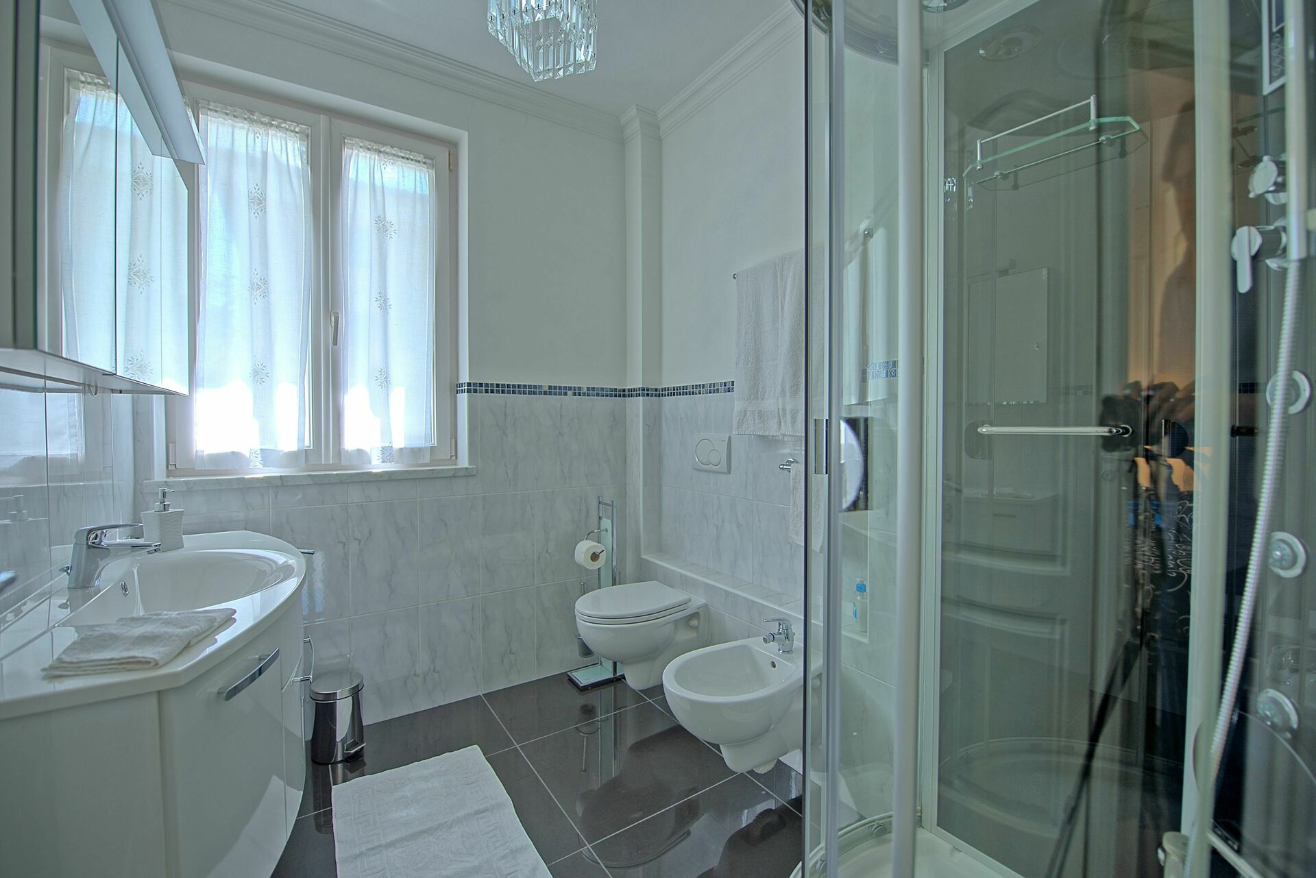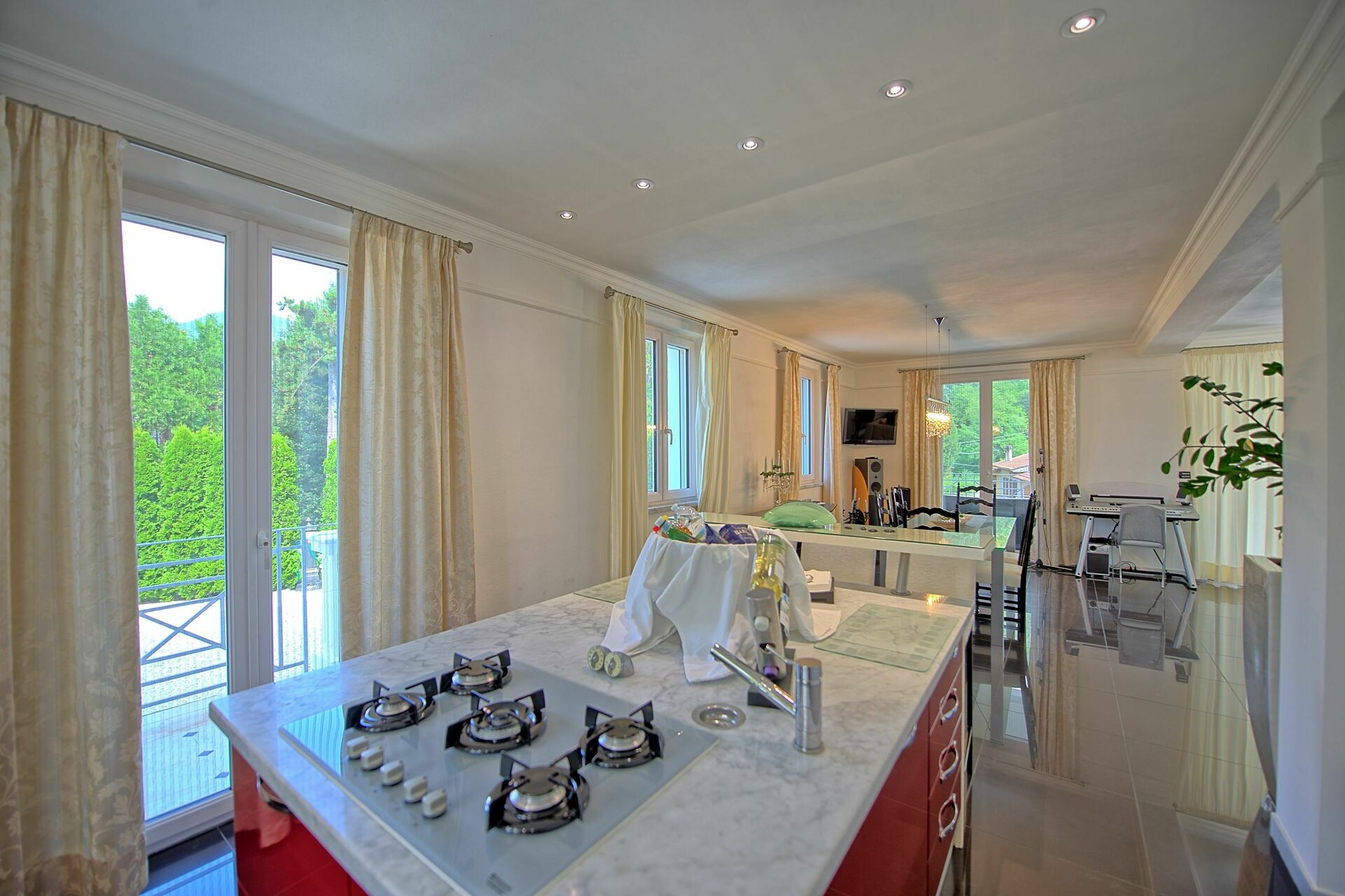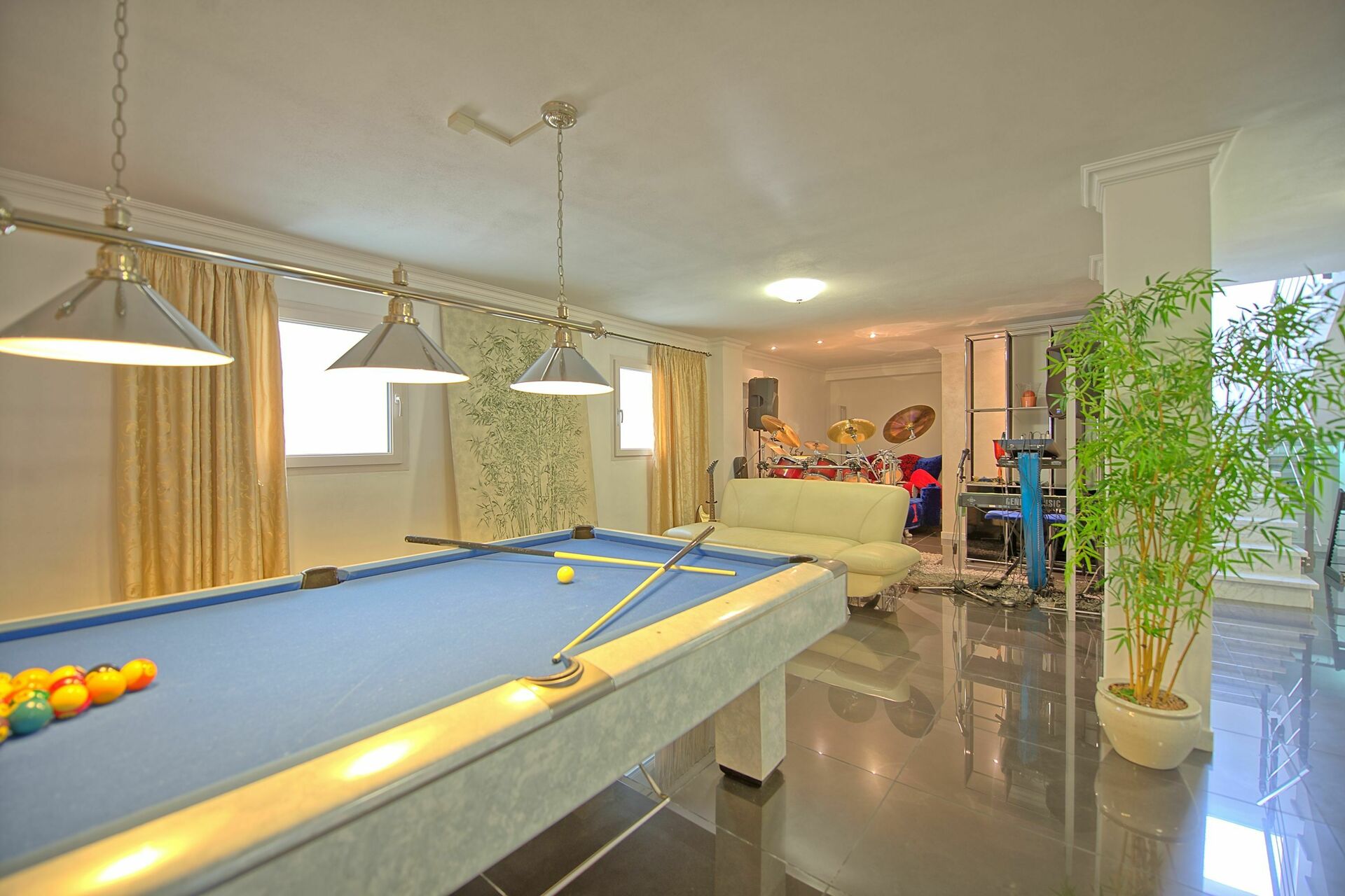 Es ist nicht nur sehr viel Wert auf die Ausstattung gelegt worden sondern auch auf die Ausstattung des multimedialen Bereiches: über bluetooth kann man mit dem Smartphone oder dem Tablet seine eigene Musik im ganzen Haus geniessen und ein ganzes Stockwerk ist nur für das Vergnügen der Gäste ausgestattet.