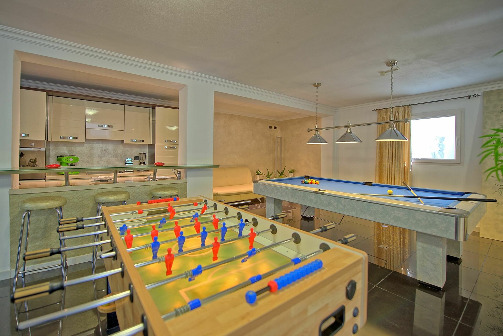 Die Ferienvilla ist im Innenbereich mit allem Komfort ausgestattet und alle Gäste, ob gross oder klein, werden viele Möglichkeiten finden sich zu erholen oder zu spielen oder das zu tun, was ihnen beliebt.