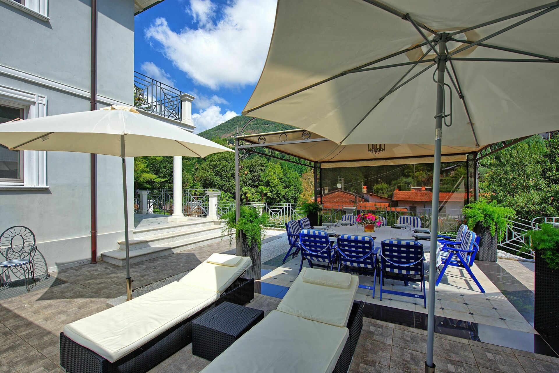 Im Aussenbereich ist die Villa umgeben von einem sehr gepflegten Garten mit sehr schön ausgestatteten Aussenbereichen (Barbecue, Sofas, Sessel, Tische und Stühle um draussen essen zu können) und ein schönes privates Schwimmbad.