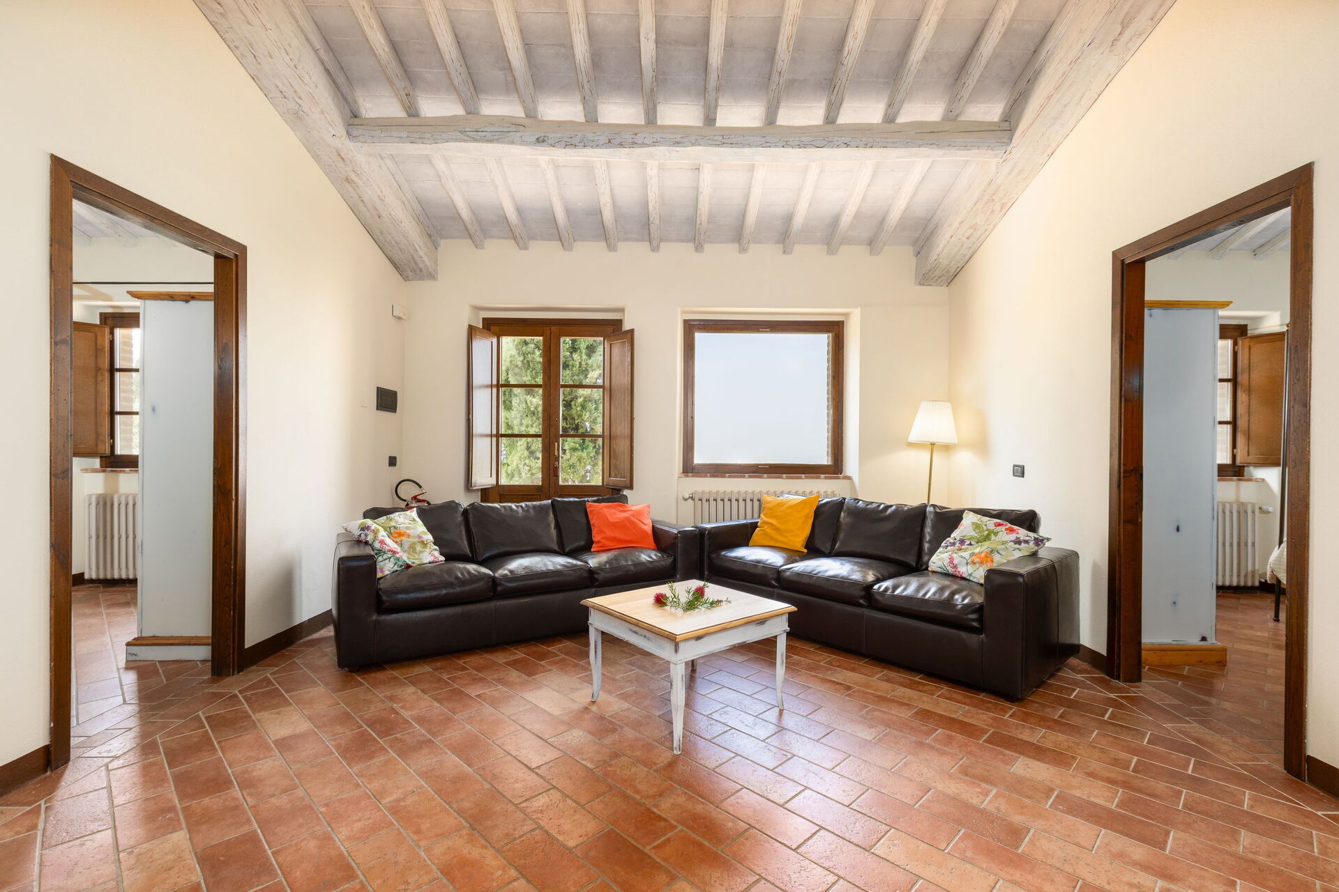 Das Landhaus besteht aus 3 Apartments die nicht im Inneren miteinander verbunden sind, die aber nur zusammen an eine Gruppe von Freunden oder Familie vermietet wird um die Privatshäre zu bewahren. In einem grossen Gemeinschaftssaal mit Wohnzimmer und Küche finden alle Gäste zusammen Platz.