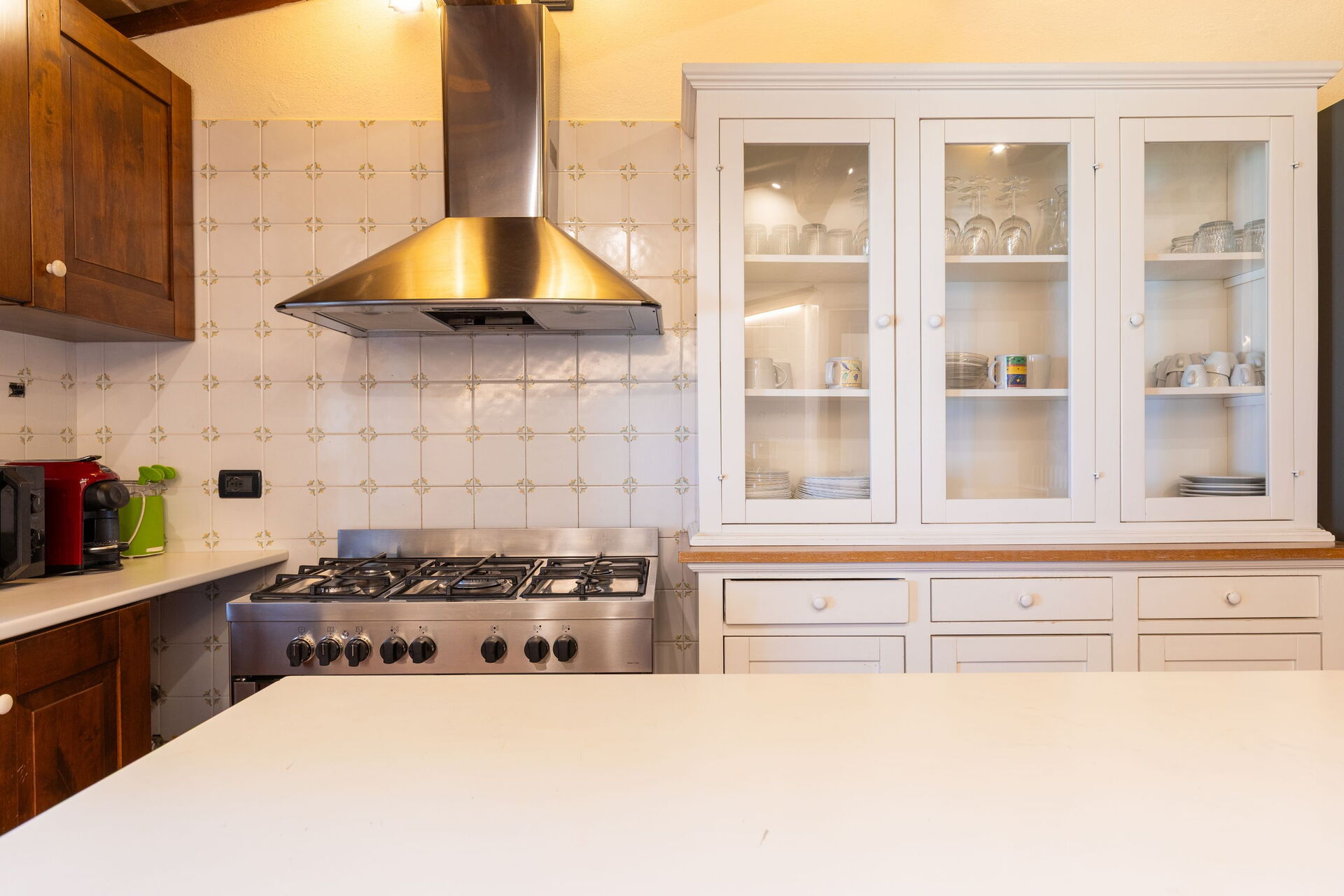 Super Ausblick durch die erhabene Lage. Küche ist top ausgestattet. Gasherd mit 5 Kochfeldern und Elektrobackofen. Große Spülmaschine. Im Haus ist ausreichend Geschirr vorhanden. Es sind genügend bequeme Liegen und ausreichend Sonnenschirme am Pool da. Authentisches Haus mit Stil. Franco, der Eigentümer, ist sehr nett und hilfsbereit.