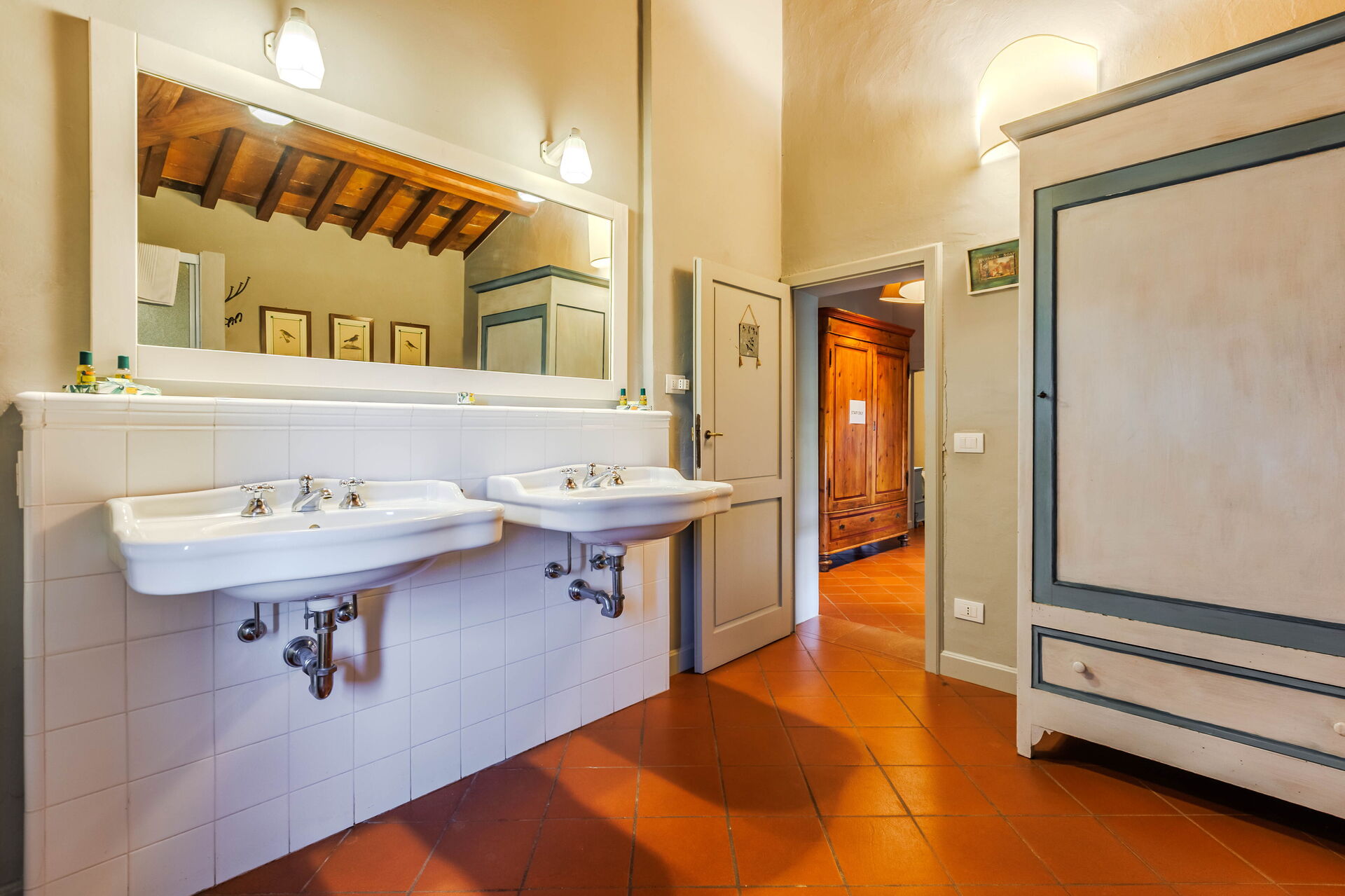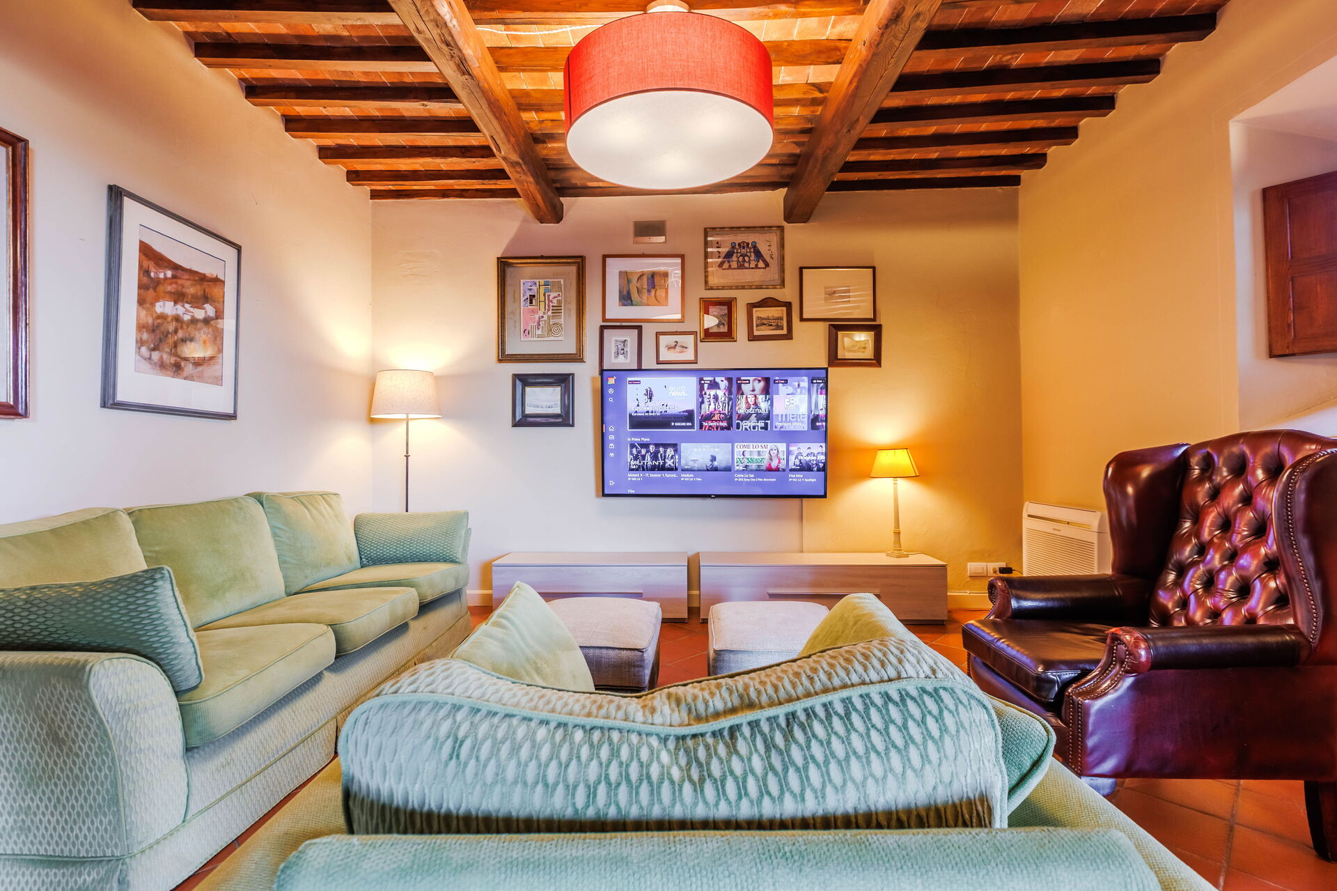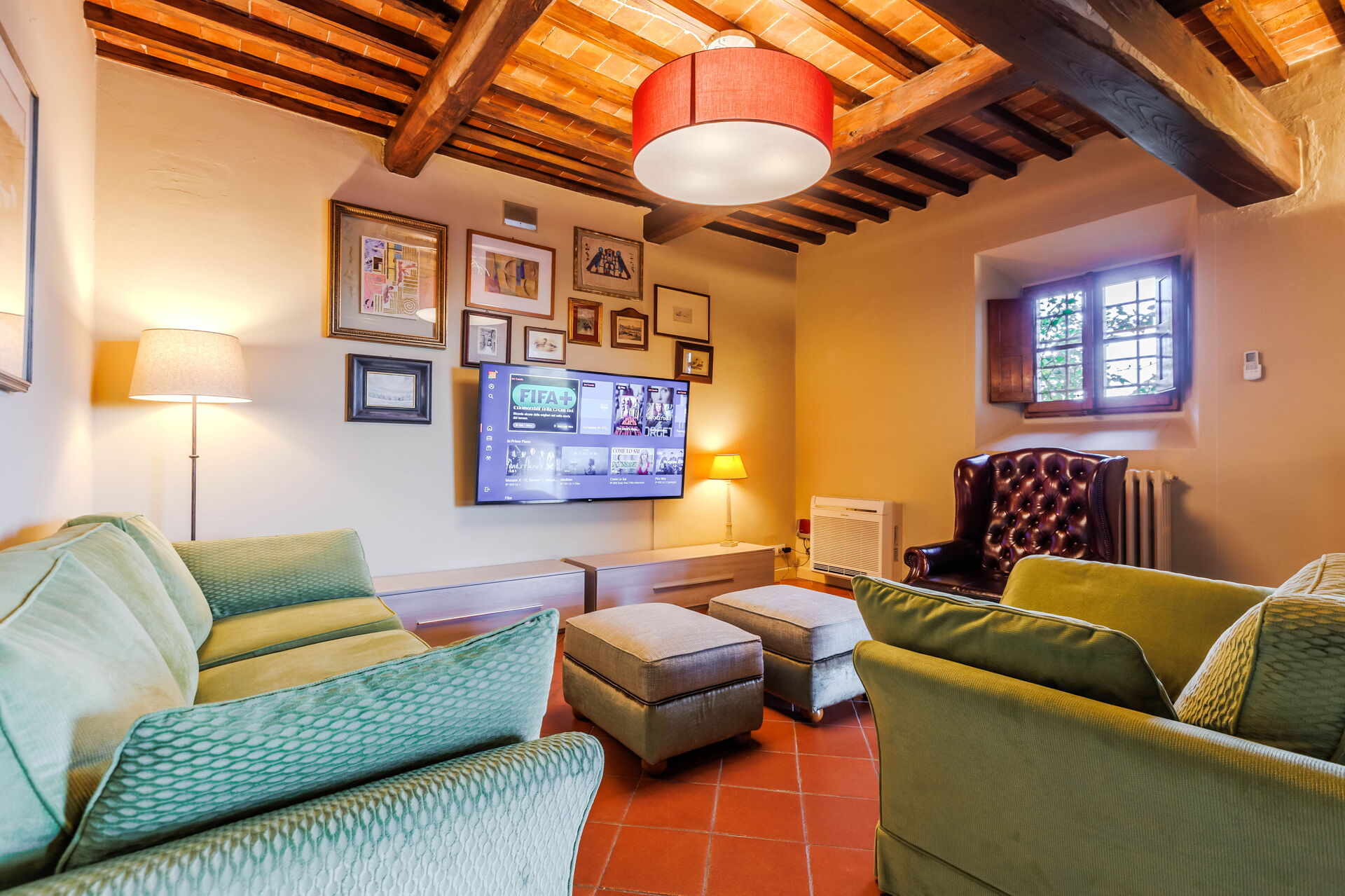 Dank seiner 5 Schlafzimmer (alle mit Klimaanlage) bietet die Villa bequem Platz für bis zu 10/14 Personen in einer raffinierten, privaten und exklusiven Umgebung mit traditionellen toskanischen Elementen. Weitere 4 Betten werden von einem Doppelschlafsofa in einer kleinen Bibliothek im Erdgeschoss und von zwei Einzelbetten im Obergeschoss der Villa im Zwischengeschoss (früher als Heulager genutzt) zur Verfügung gestellt.