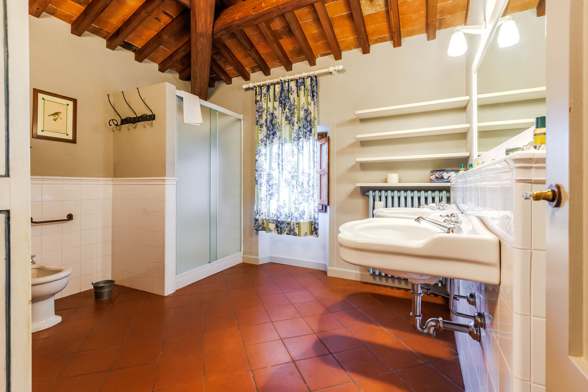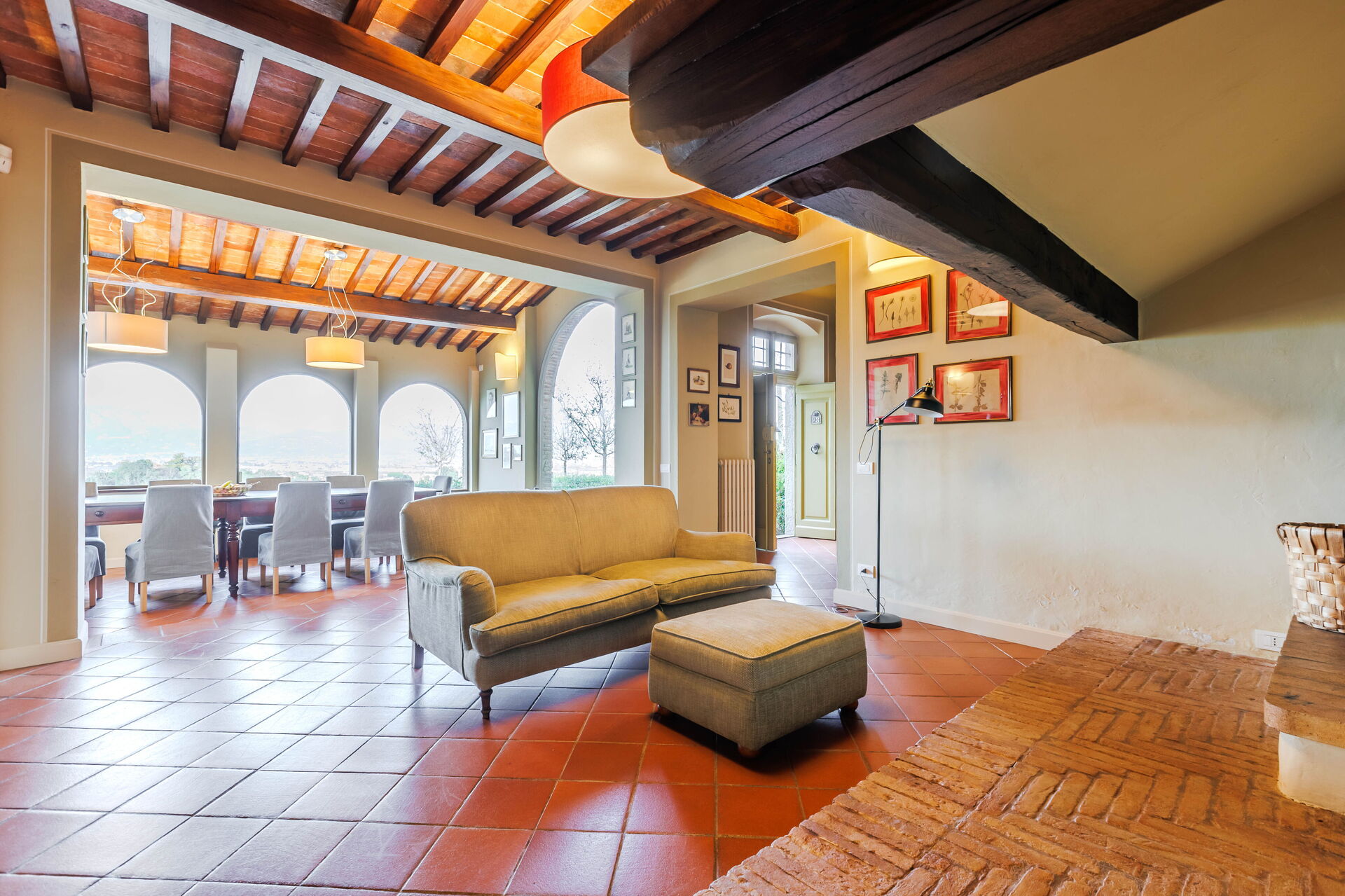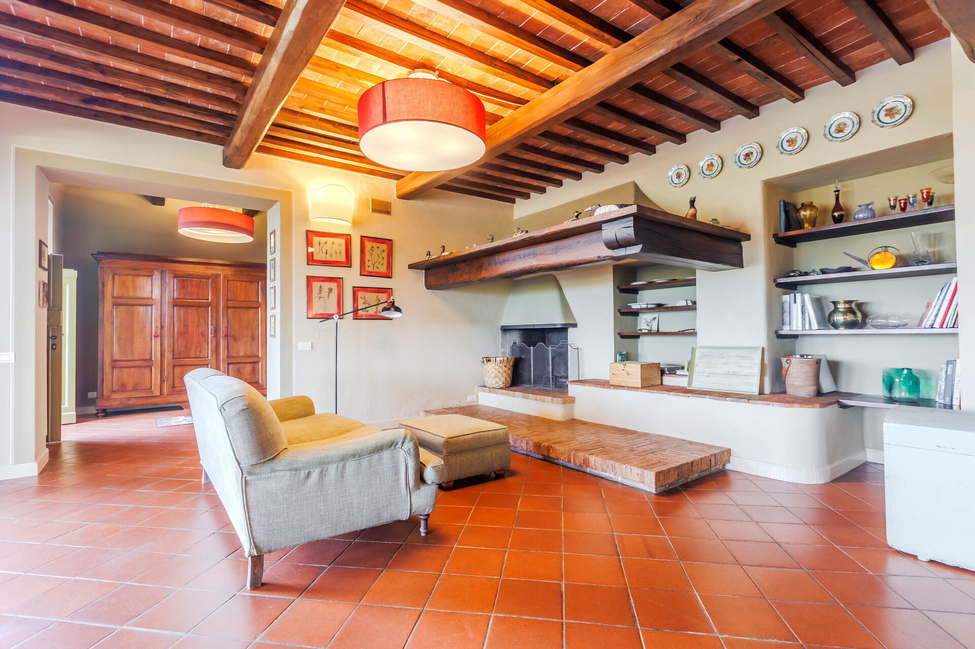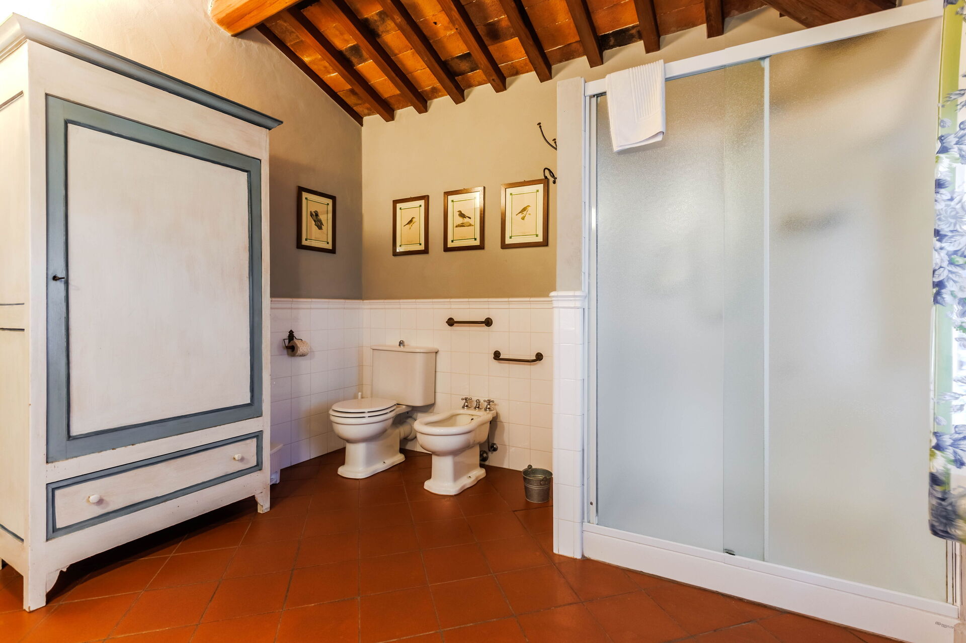 Dank seiner 5 Schlafzimmer (alle mit Klimaanlage) bietet die Villa bequem Platz für bis zu 10/14 Personen in einer raffinierten, privaten und exklusiven Umgebung mit traditionellen toskanischen Elementen. Weitere 4 Betten werden von einem Doppelschlafsofa in einer kleinen Bibliothek im Erdgeschoss und von zwei Einzelbetten im Obergeschoss der Villa im Zwischengeschoss (früher als Heulager genutzt) zur Verfügung gestellt.