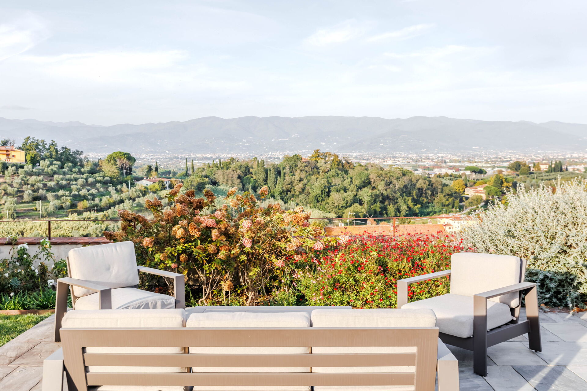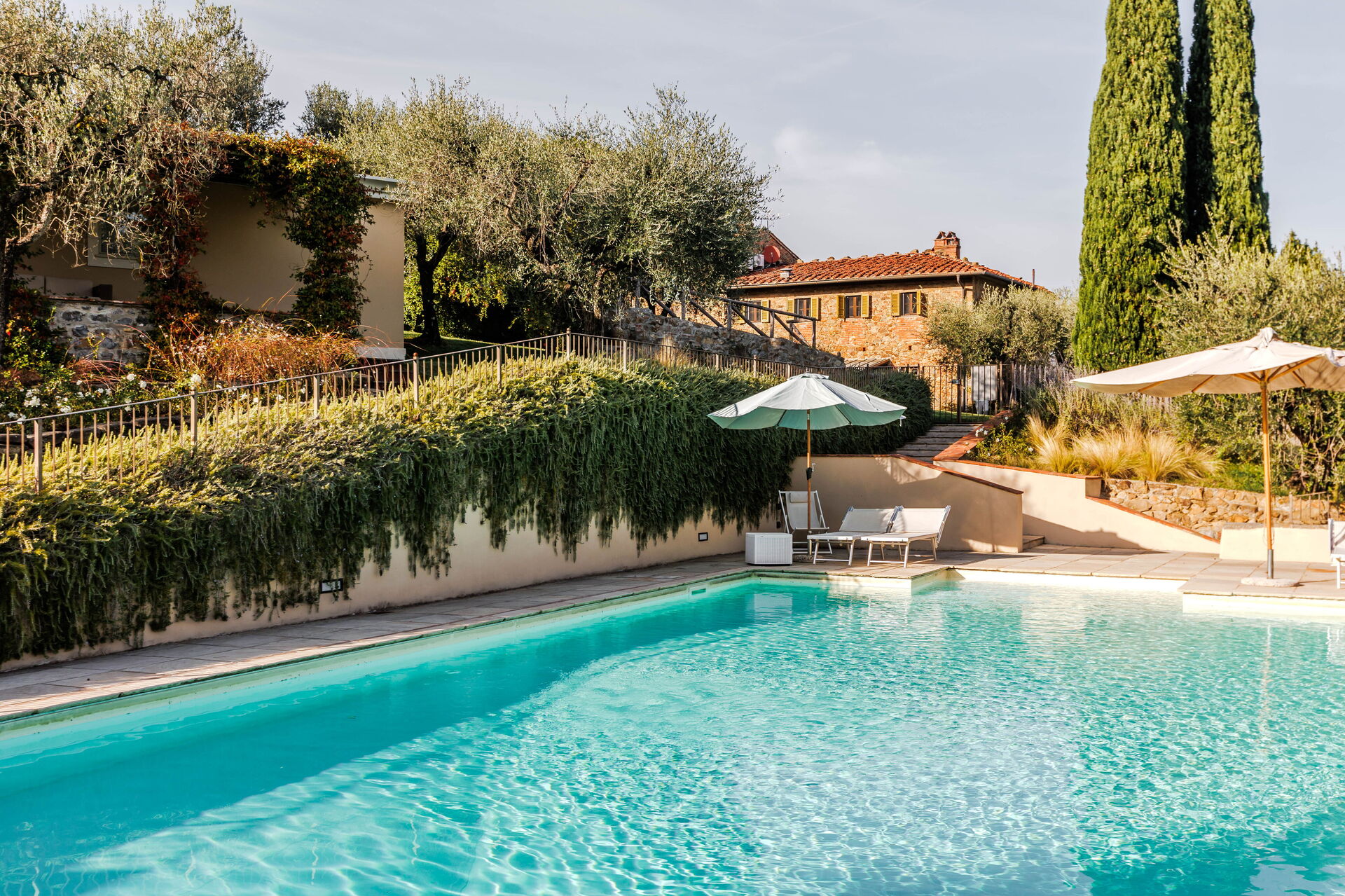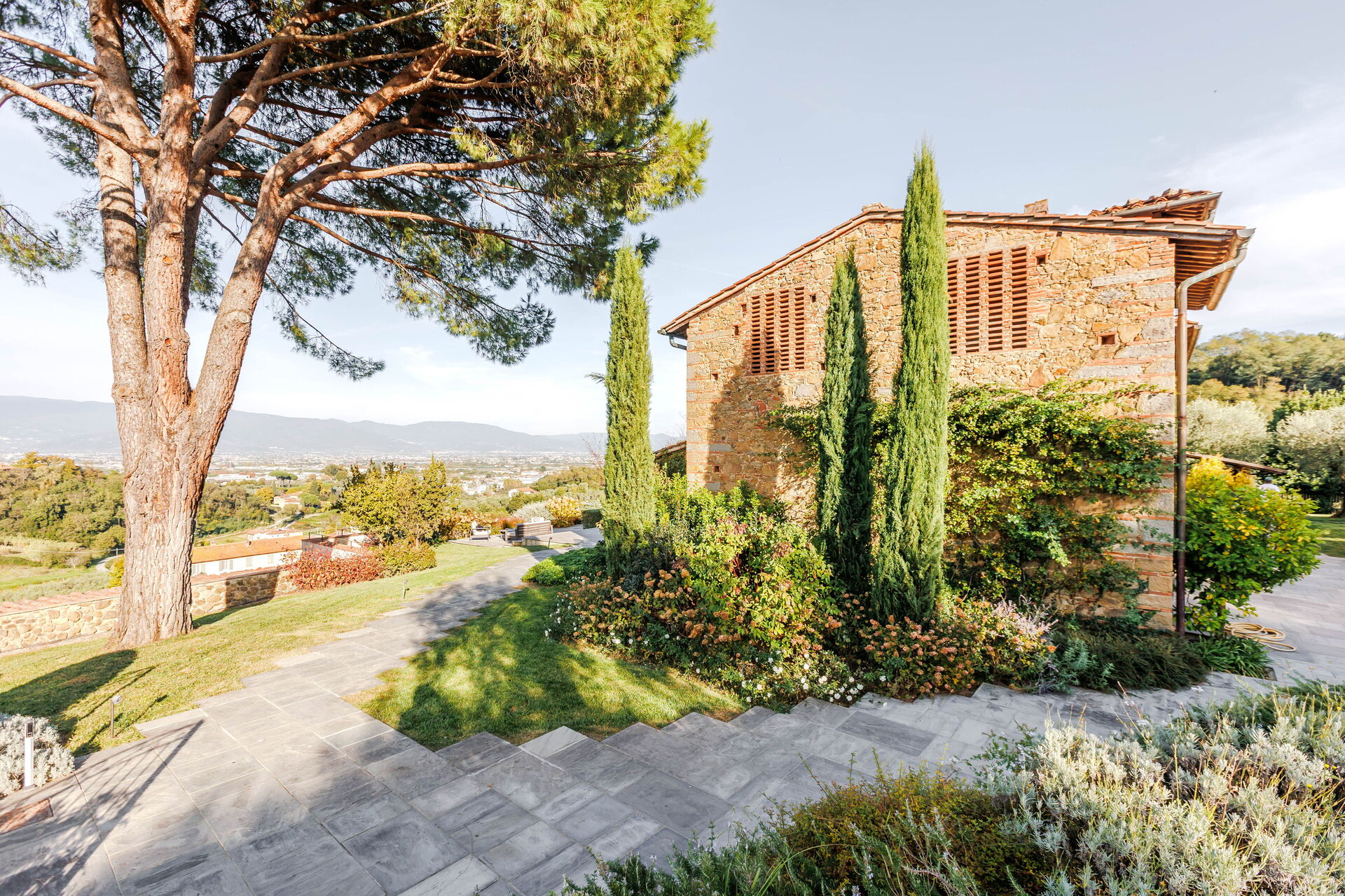 The villa's surroundings are a symphony of beauty and serenity. The meticulously landscaped gardens are a visual delight, with vibrant blooms and fragrant herbs. The outdoor areas are equally impressive, featuring a luxurious pool that beckons you for a refreshing swim while soaking in panoramic views of the Tuscan countryside.