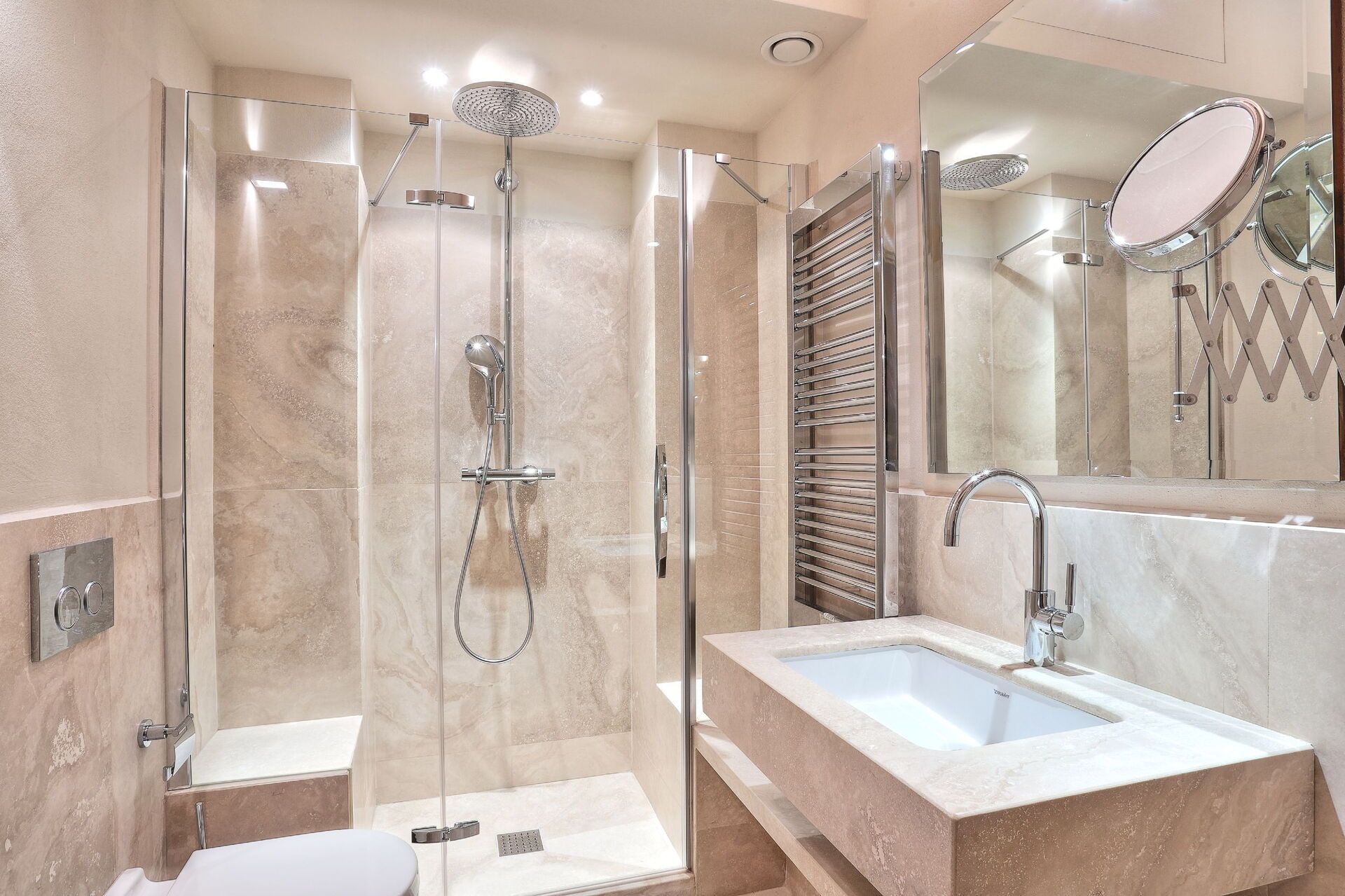 Erster Stock: Eingangshalle, 2 Doppelzimmer und 2 Badezimmer mit Dusche