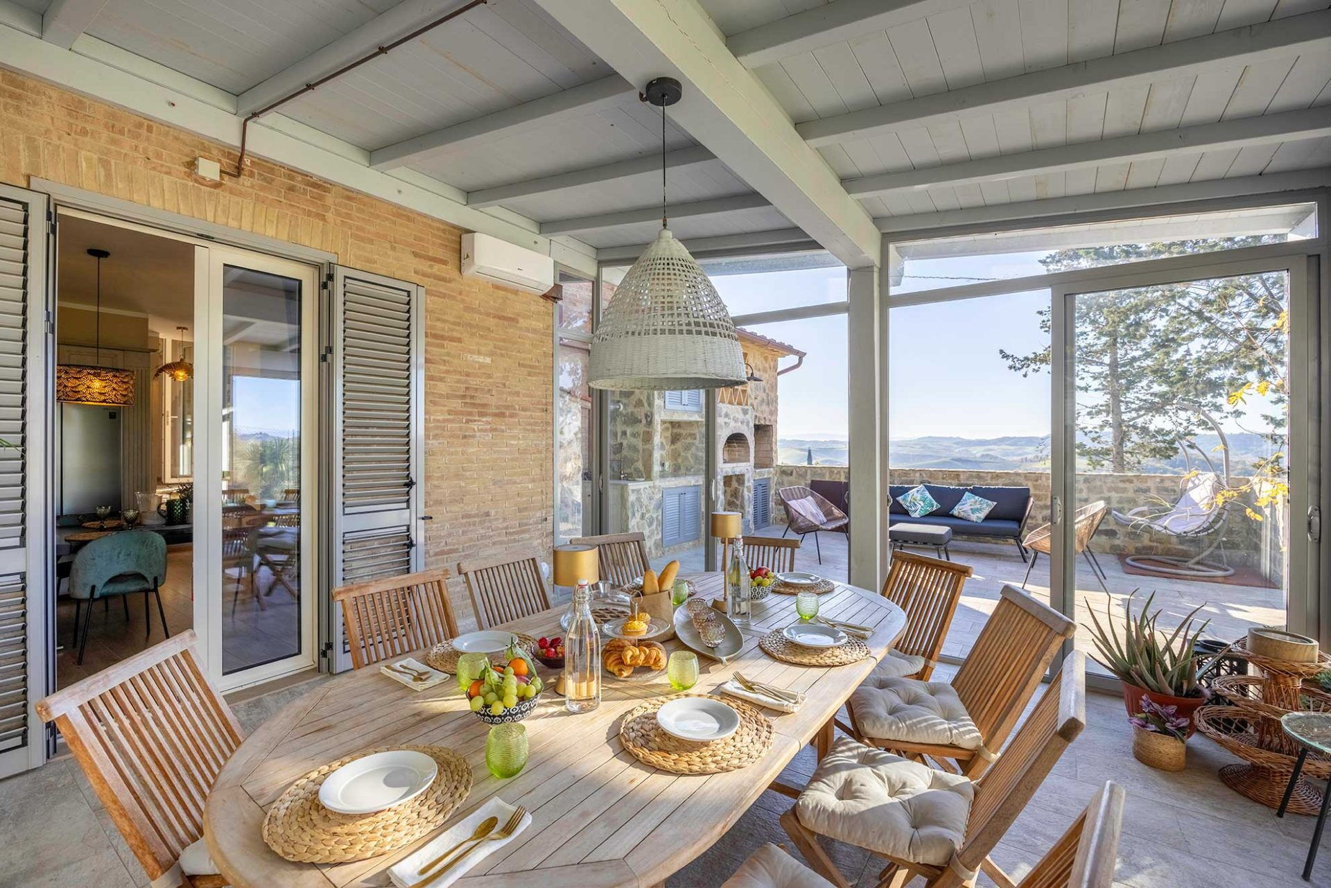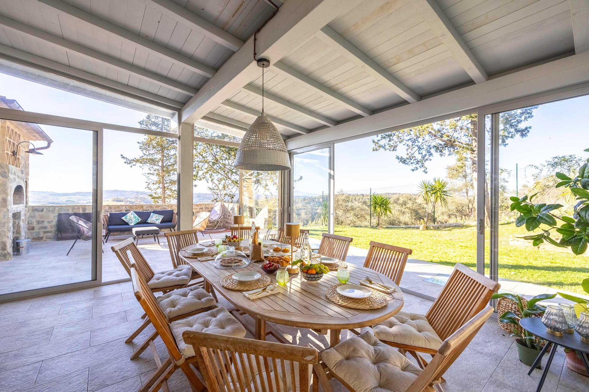 Im Aussenbereich können die Gäste große, ausgestattete Räume und das Schwimmbad nutzen, das exklusive für die Gäste reserviert ist. Unmittelbar vor der Küche wurde ein schöner Essbereich im Freien eingerichtet, der mit Tisch, Stühlen, Grill und Holzofen ausgestattet ist.