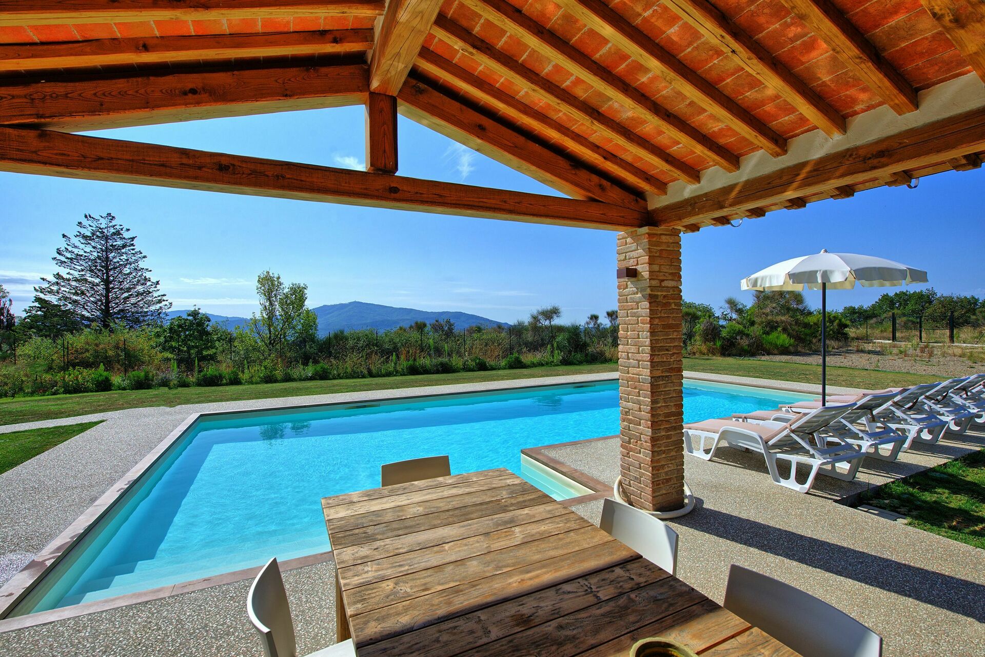 Die wunderschöne Villa mit privatem Schwimmbad in der Toskana befindet sich nahe dem Ort Castiglion Fiorentino, zwischen den historischen Städten Cortona und Arezzo. Der Besitz wurde im Jahr 2018 fertiggestellt und bietet ein sehr komfortables Ambiente und wunderschöne Aussenplätze.