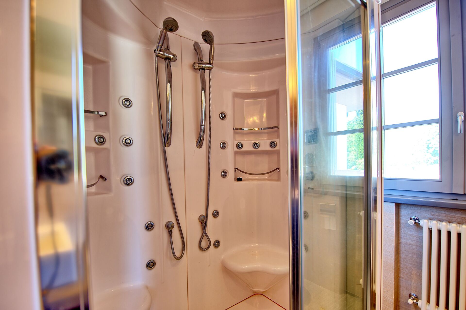 1.Stock: Wohnzimmer mit TV, Küche (Backofen, Gefrierschrank, Spülmaschine), großes Doppelzimmer und Doppelschlafcouch ( fuer 2 Kinder geeignet ) mit Zugang zur Terrasse und privatem Bad mit Hydromassage-Dusche / Türkischem Bad), 2 Doppelzimmer , Bad mit Whirlpool-Badewanne und Dusche, Doppelzimmer mit Ehebett, Bad mit Dusche.