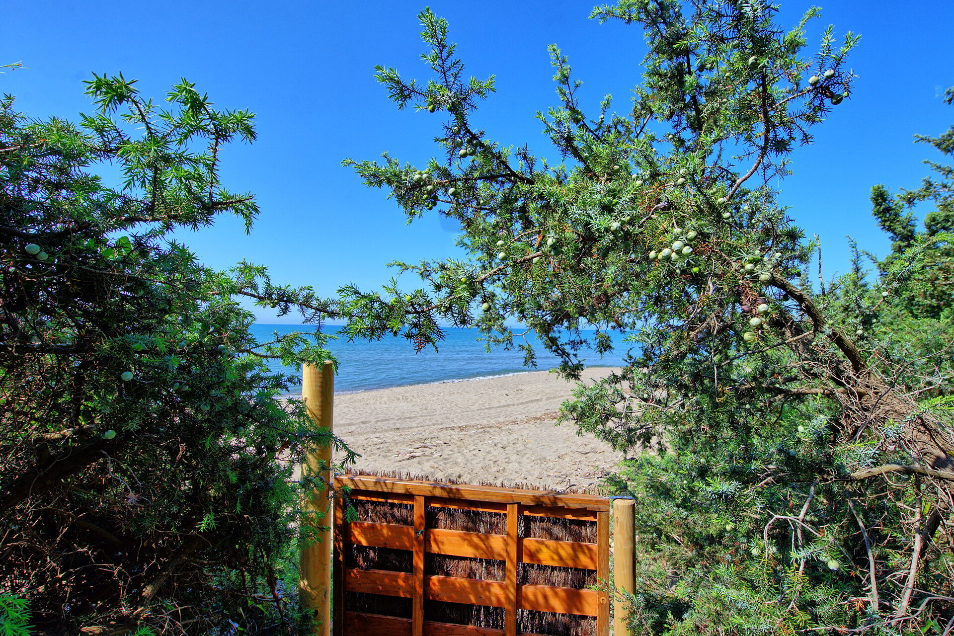 Die Lage des Hauses ist absolut außergewöhnlich, da es nur 20 Meter vom Strand von Capezzolo entfernt ist, zu dem man über einen exklusiven, den Gästen der Ferienanlage vorbehaltenen Zugang gelangt. Sobald man am Strand mit dem Pinienwald im Rücken und dem Vorgebirge von Capezzolo zur Linken angekommen ist, befindet man sich in einer magischen Umgebung, die den Gästen ein unvergessliches Erlebnis bescheren wird.